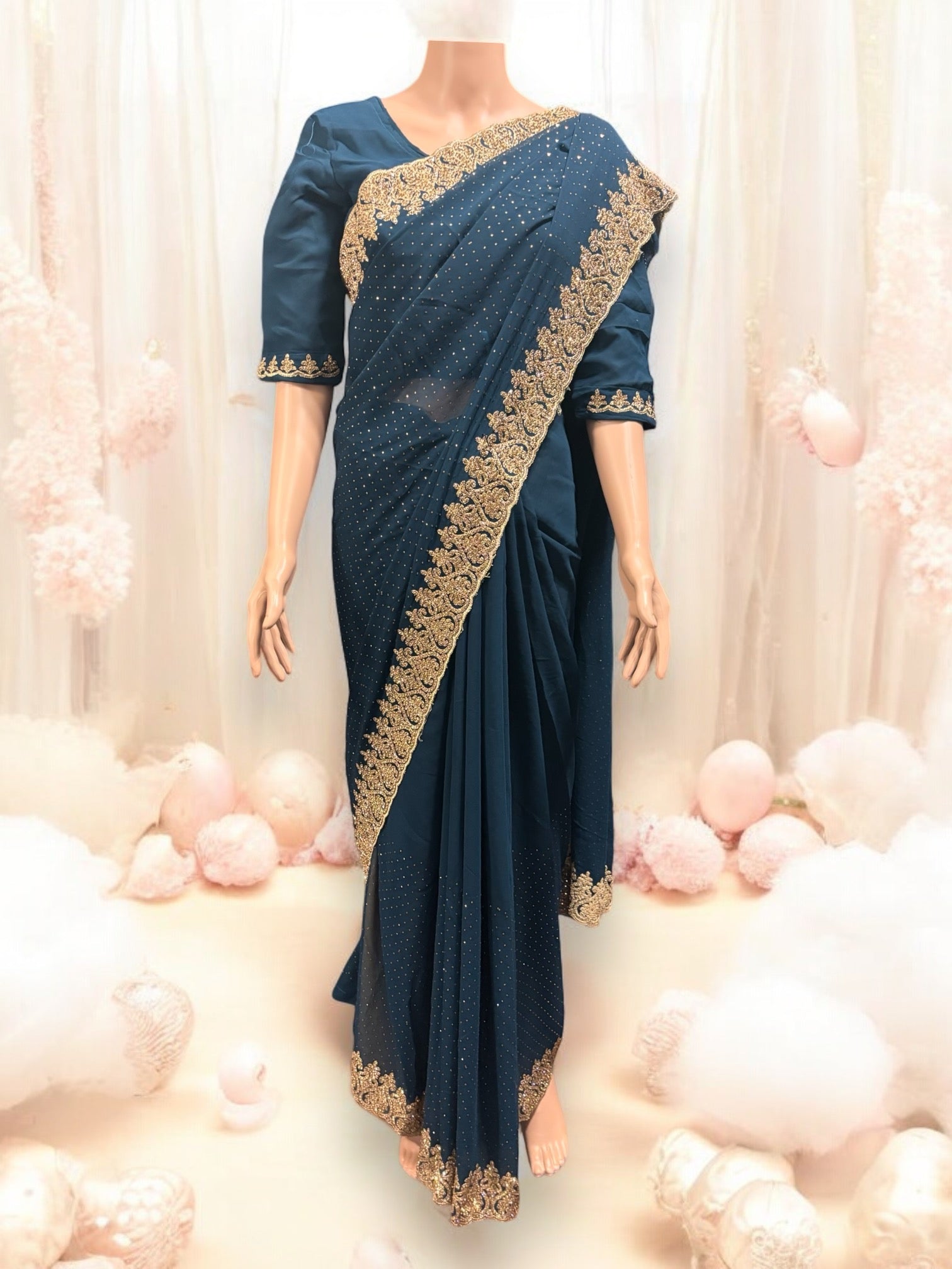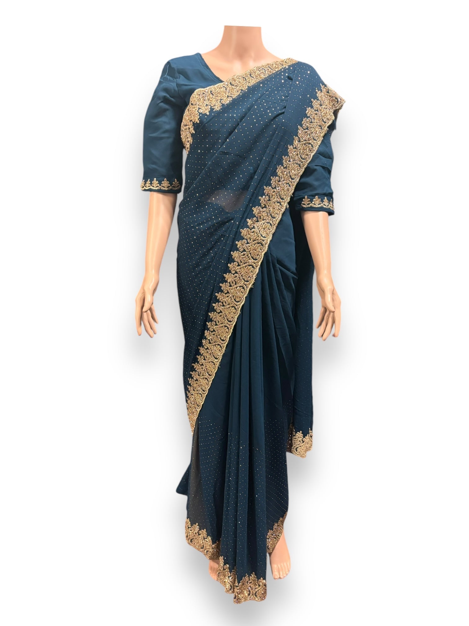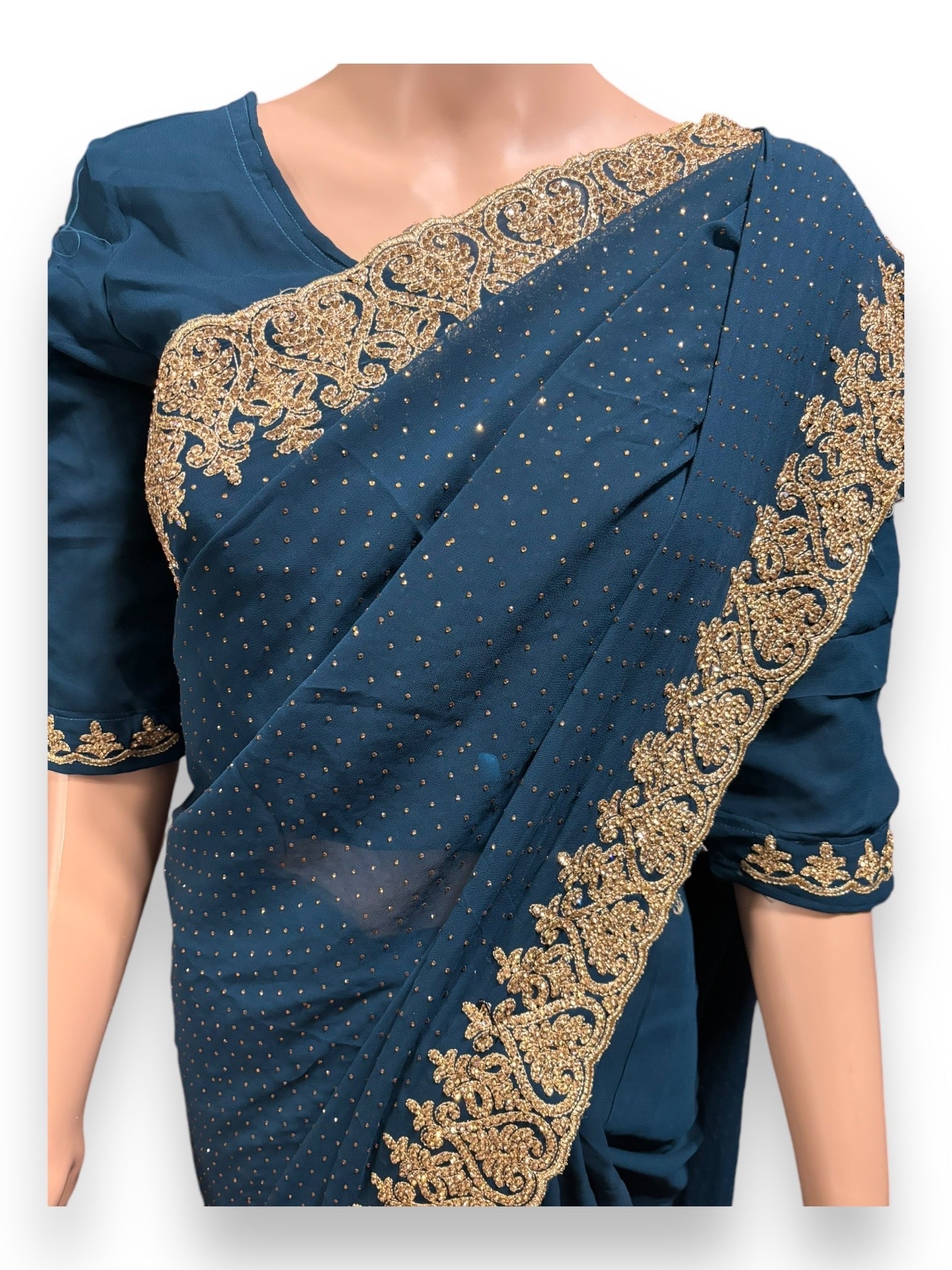 Blue Party Wear Stonework Saree with Ready Blouse - 022