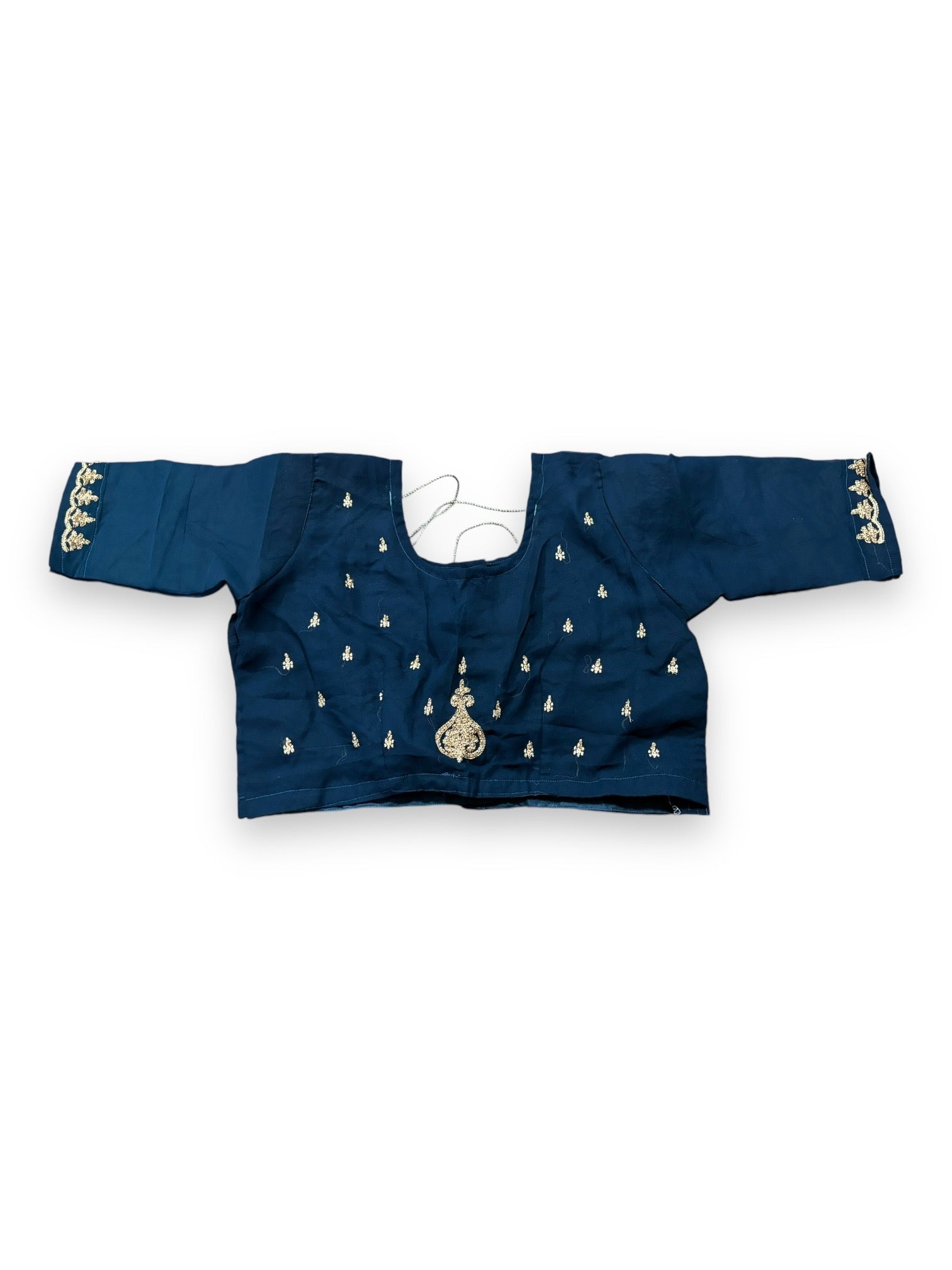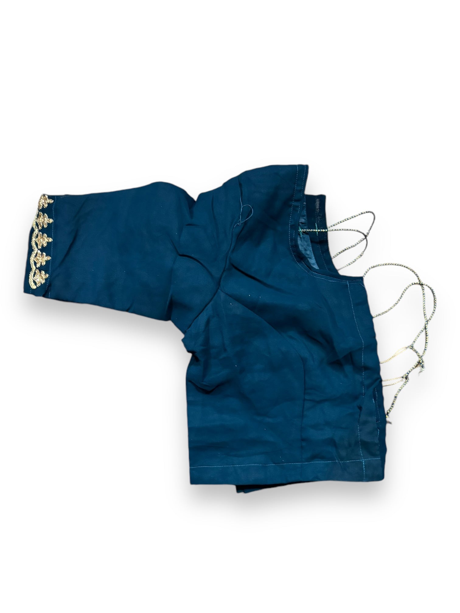 This saree comes with readymade blouse. Blouse size is 40. Chest measurement of the blouse is 40 inches.