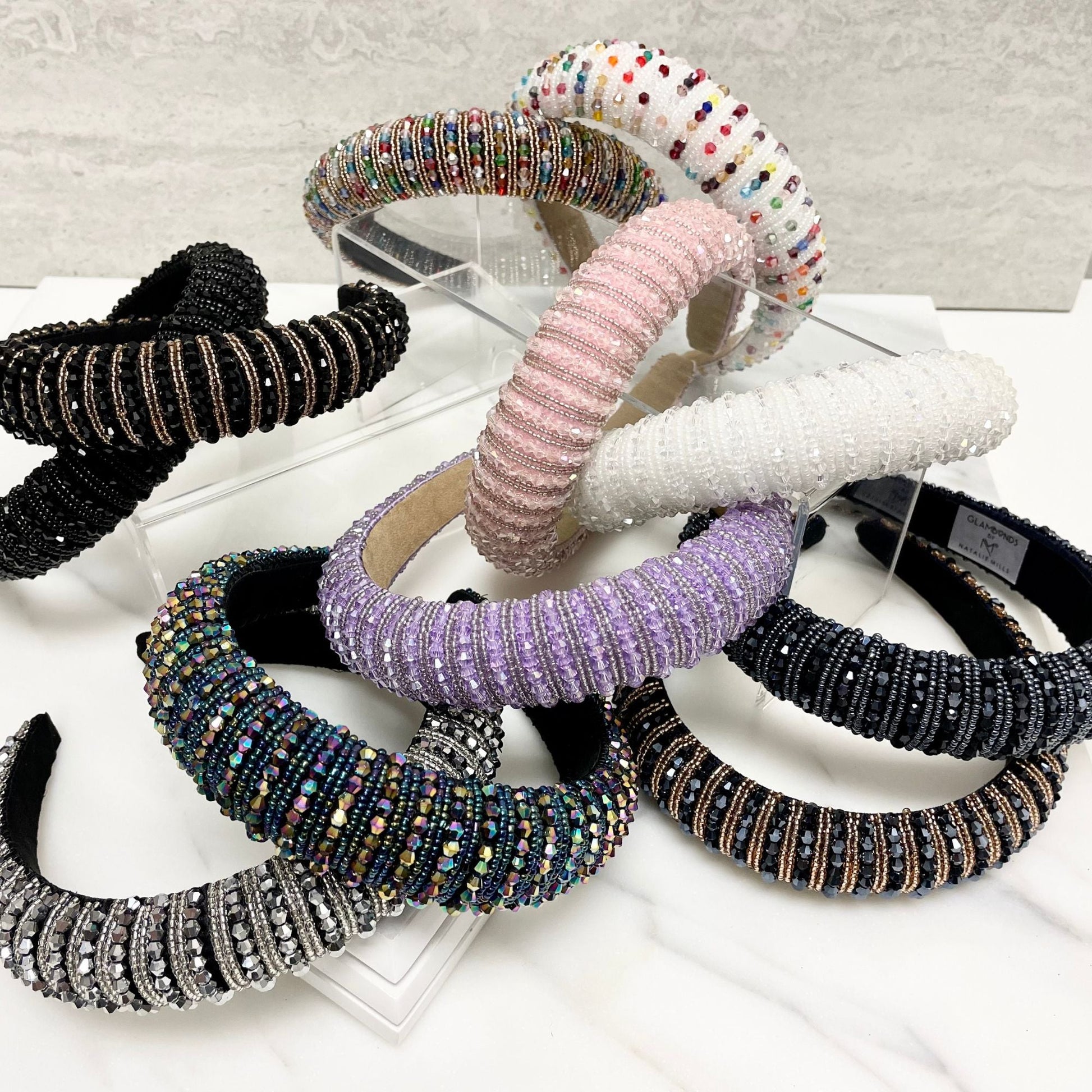 The NEW Brianna headband is set with gorgeous lilac crystals patterned in alternating stripes. This non-slip headband is the perfect accessory for a night out!