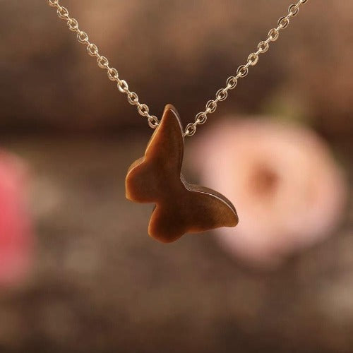 Are butterfly magical? This butterfly crystal necklace features a gold chain necklace 18 k gold plated with a healing stone shaped in butterfly.