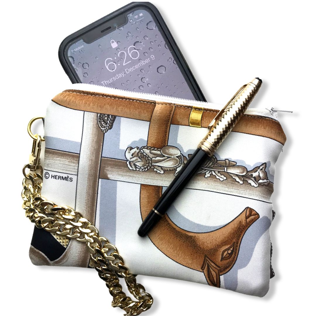 Cannes et Pommeaux Vintage Silk Scarf Wristlet Bag