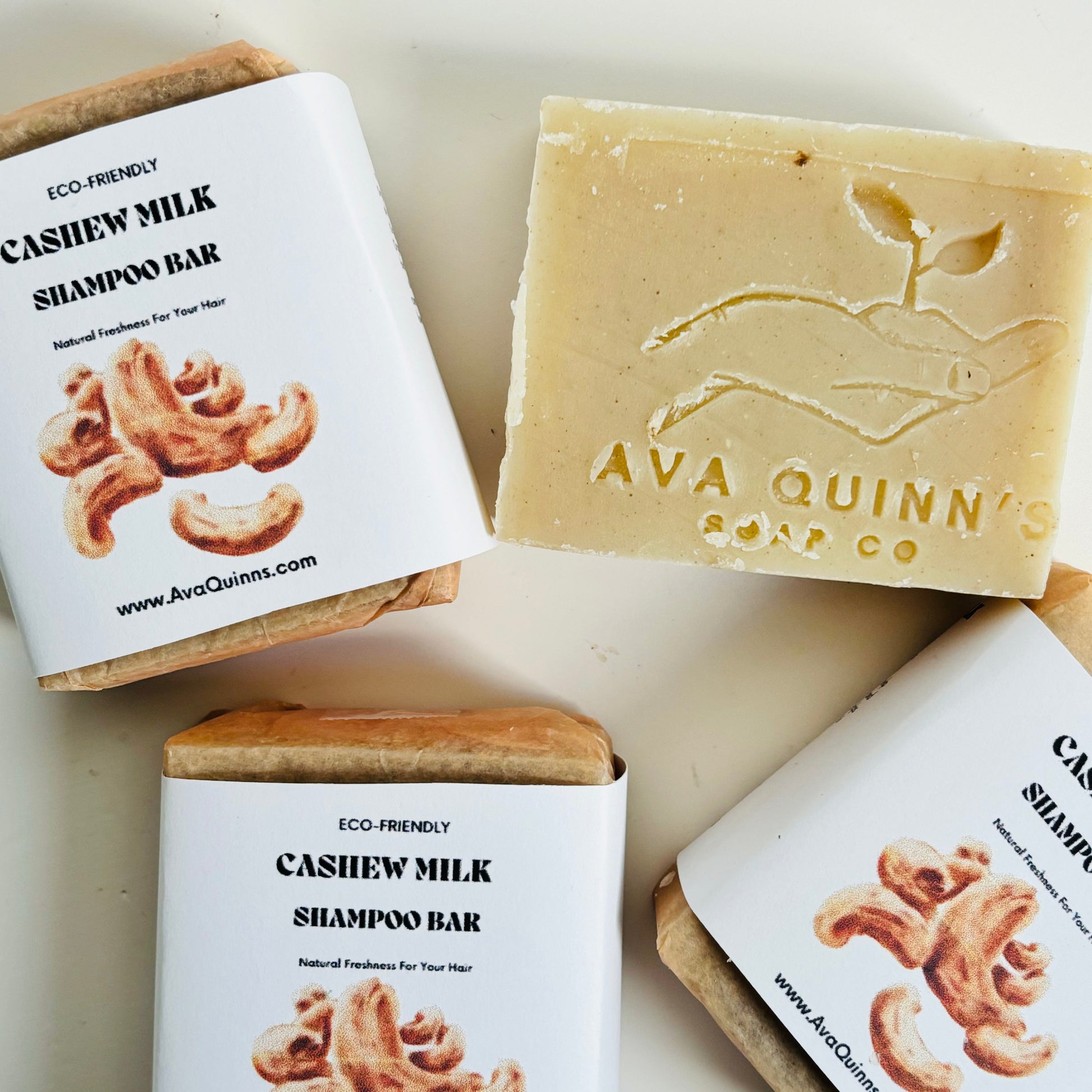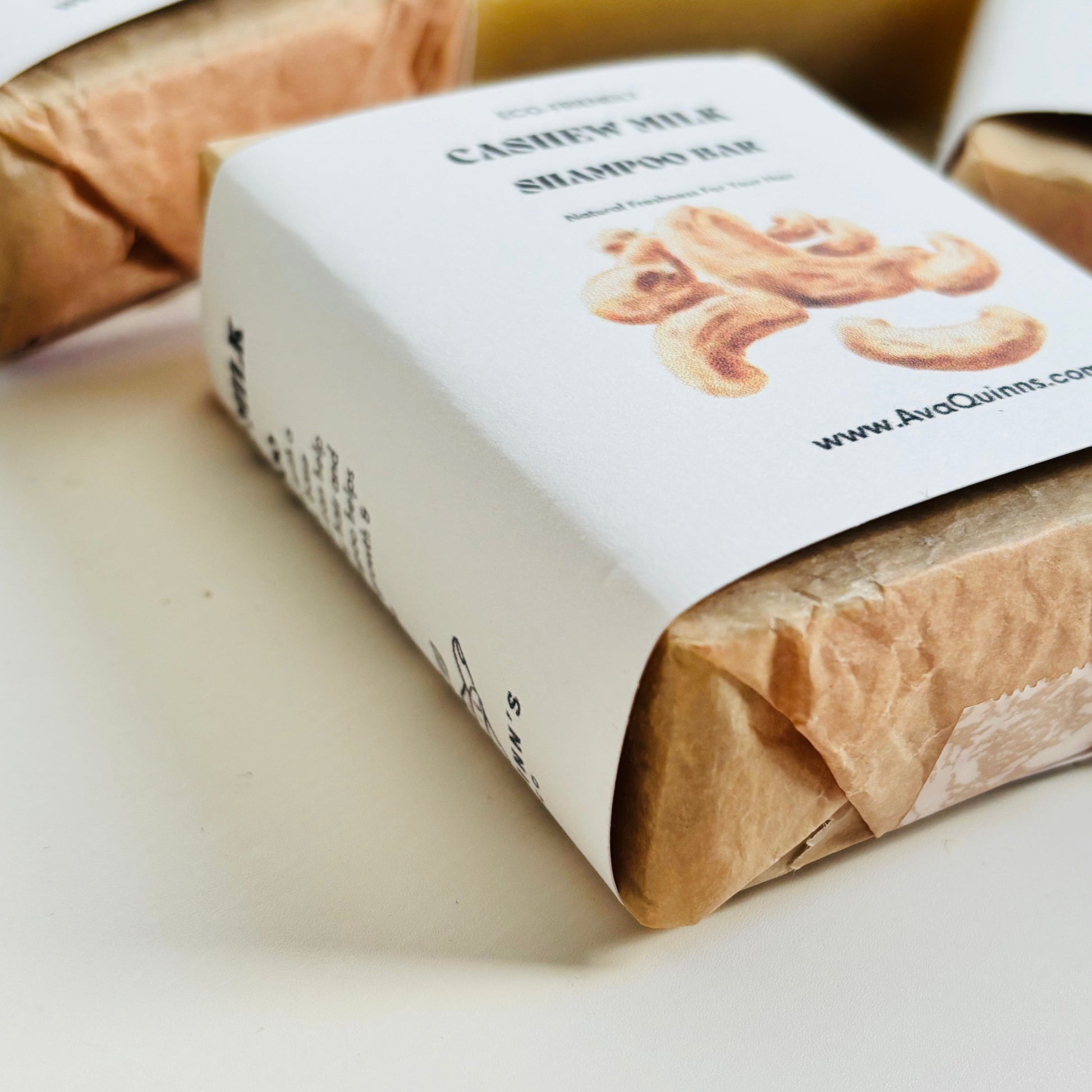 Our cashew milk shampoo bar is created with neem oil, pumpkin seed and essential oils. The cashew milk solid shampoo promotes thickness, growth and boost volume to dull hair.