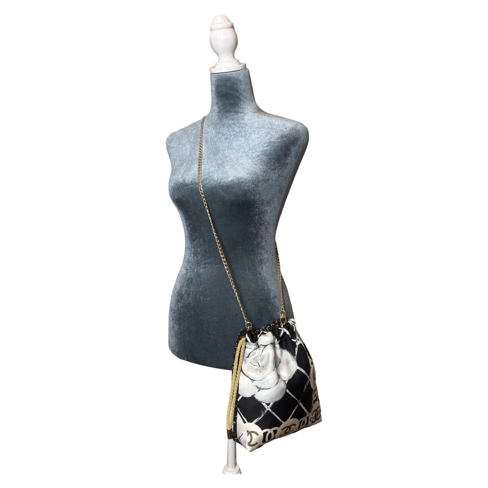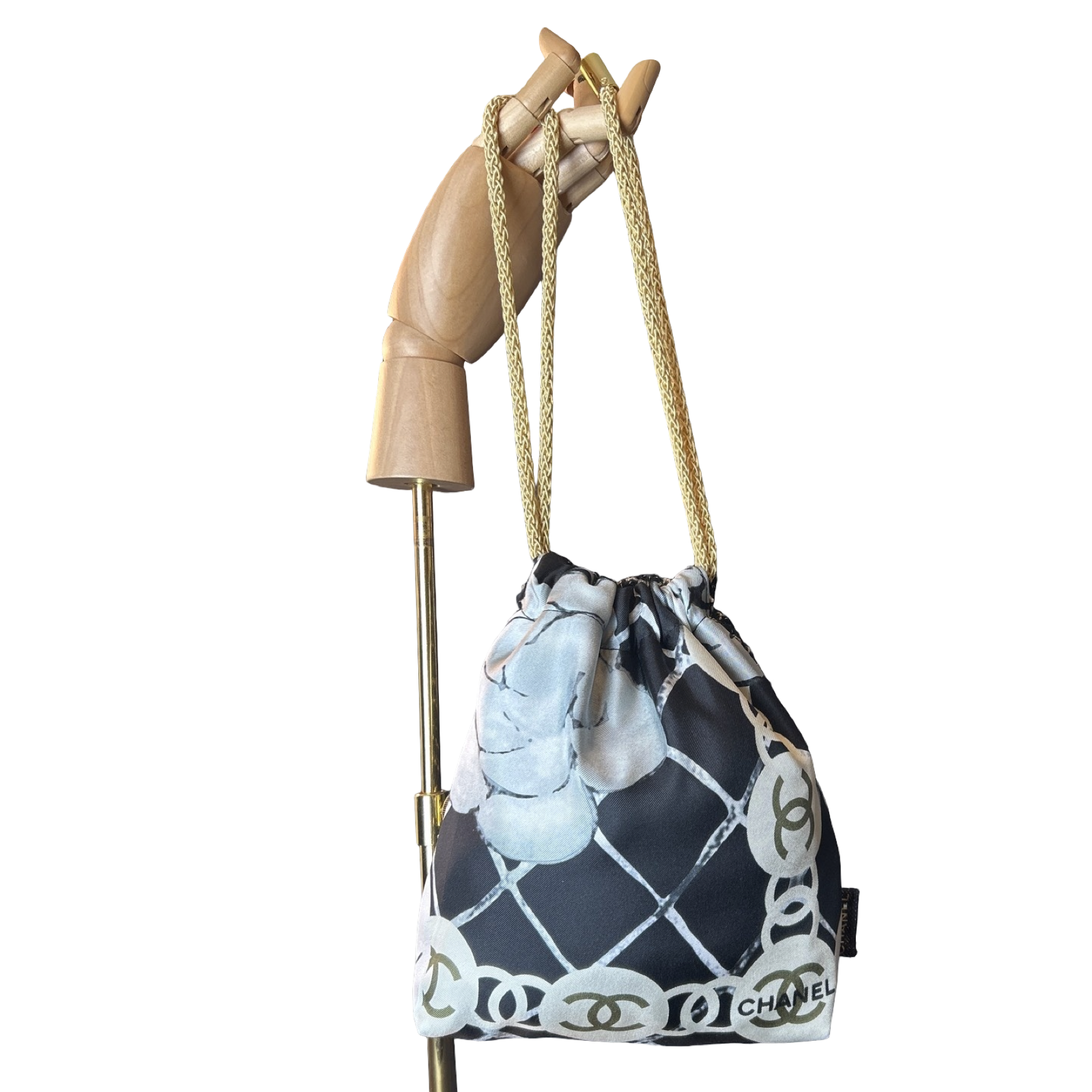 CC Logo Camellia Noir Vintage Scarf Drawstring Crossbody Bag