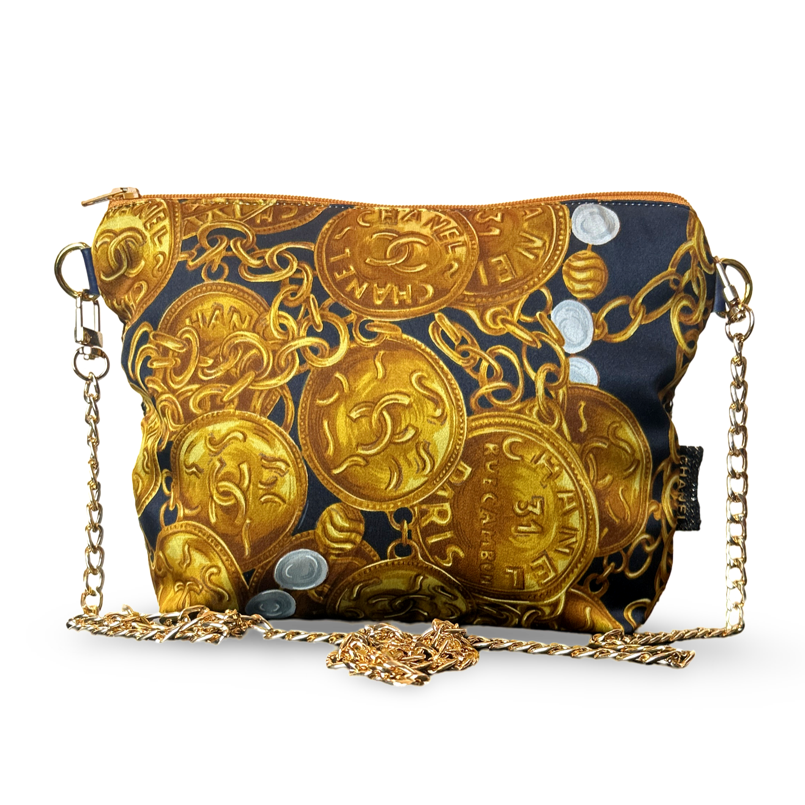 Reimagined from the world’s finest collection of vintage luxury scarves, our crossbody bag is the ultimate accessory for your on-the-go lifestyle. Limited editions, perfectly sized to stash all your essentials in a zippered bag with a gold-tone removable crossbody chain.