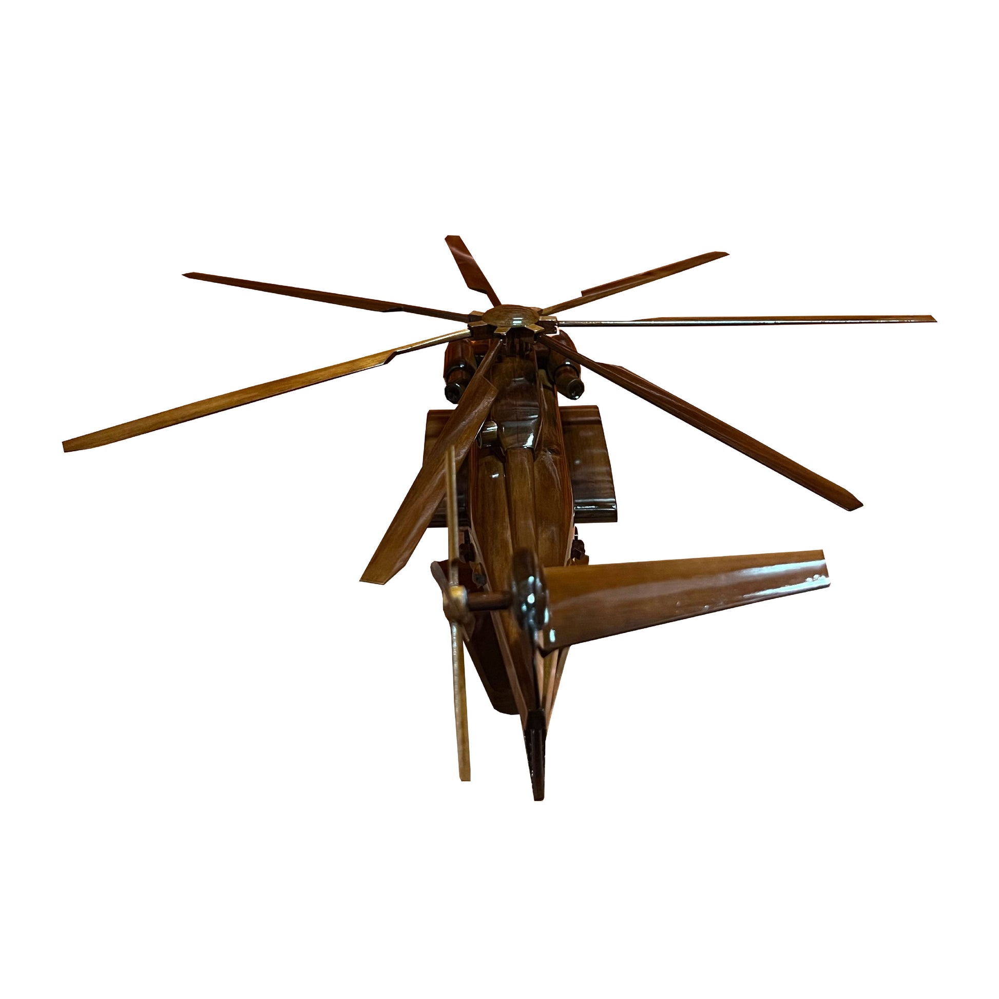 This CH53 Sea Stallion helicopter is beautifully handcrafted out of reclaimed Mahogany Wood. Each piece is crafted with intense detail and finished with three coats of polyurethane coating that gives it a high gloss finish. This fine work of art takes approximately 18 hours of labor to create. If you are a collector or simply want a fine art piece this mahogany model is sure to enhance your home or office. The CH53 Sea Stallion is the most common name for the Sikorsky S-65 family of heavy-lift transport helicopters.