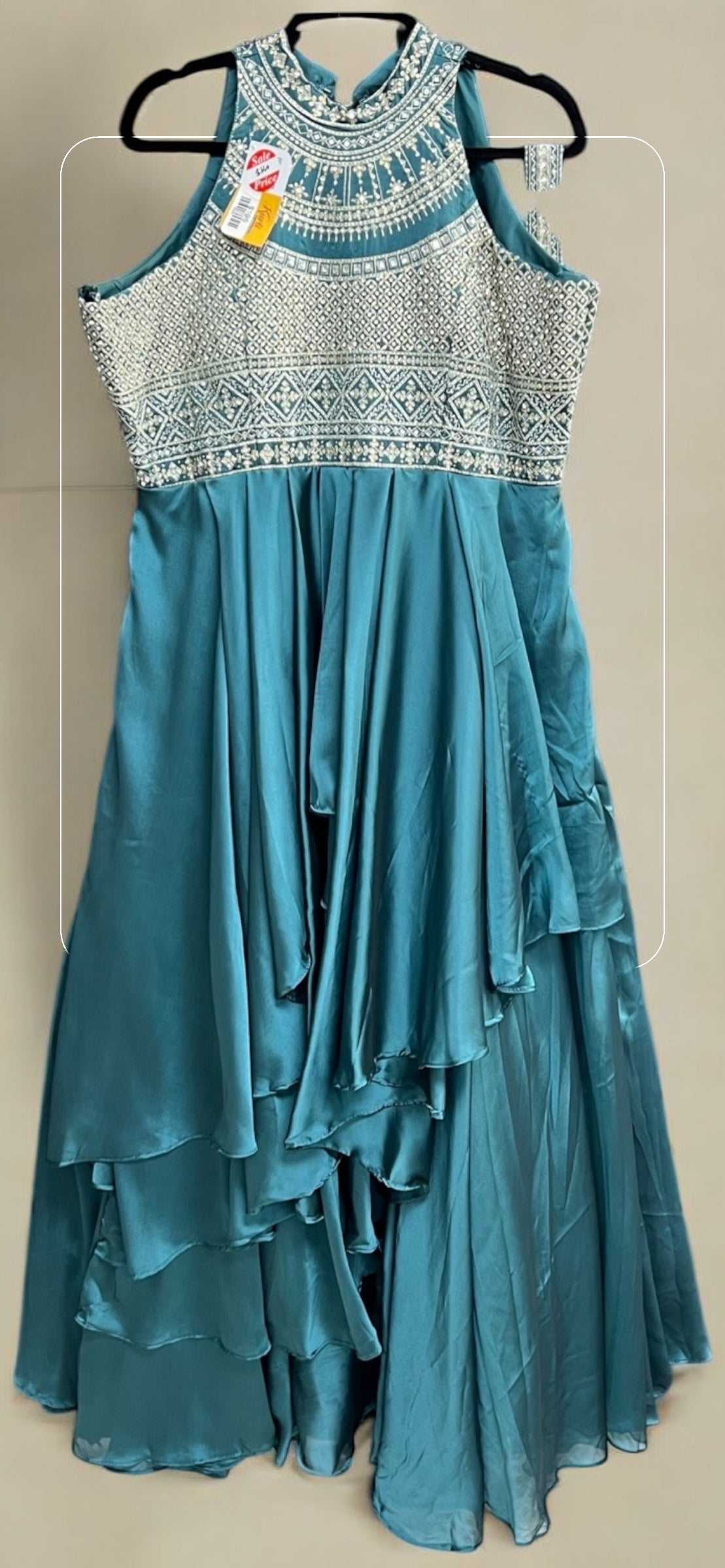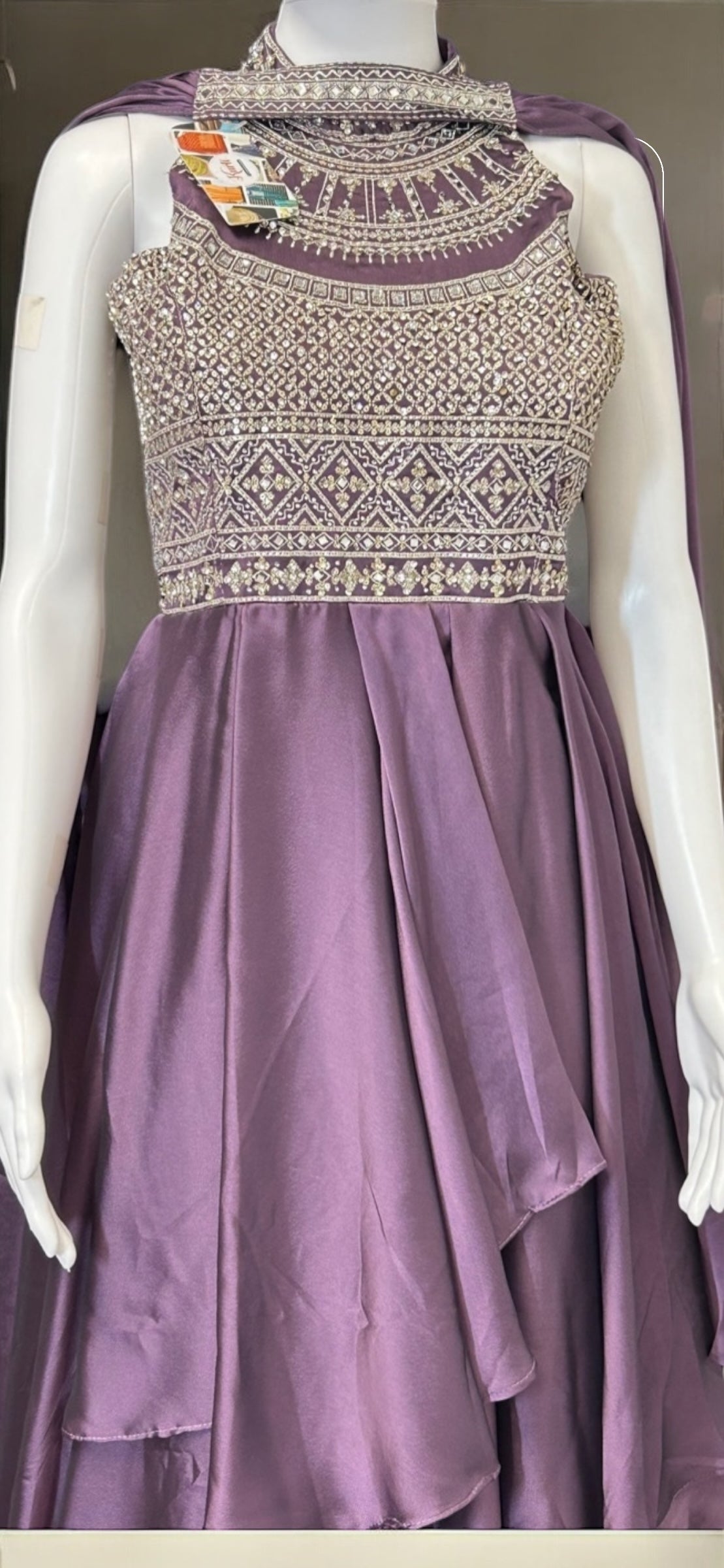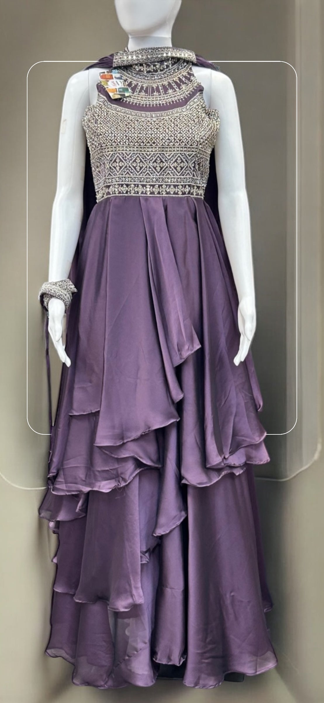 Introducing the stunning Chiffon silk Indo western gown/long dress. With its unique fusion style, this gown seamlessly blends traditional Indian design with modern Western flair. Enjoy the best of both worlds and make a stylish statement with this elegant dress.