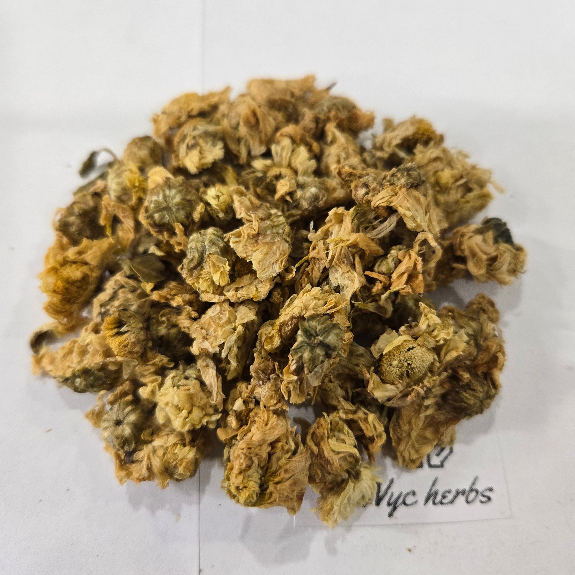Chrysanthemum flower (Chrysanthemum morifolium), known as Ju Hua in Traditional Chinese Medicine, is a cooling herbal remedy celebrated for its ability to clear heat, calm the liver, and brighten the eyes. Traditionally brewed as a soothing floral tea, it helps ease headaches, eye strain, dizziness, and seasonal allergies while gently supporting detoxification and circulation.