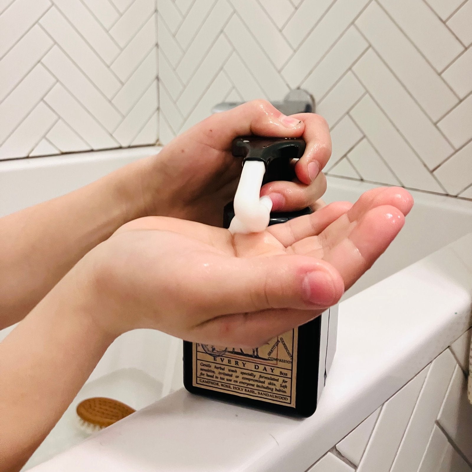 We see this as being something one would have in the bath/shower for head to toe daily wash or at the sink for hands that need extra care. Gentle enough for every where (tip to toe) and every day (and any age, including babies.)