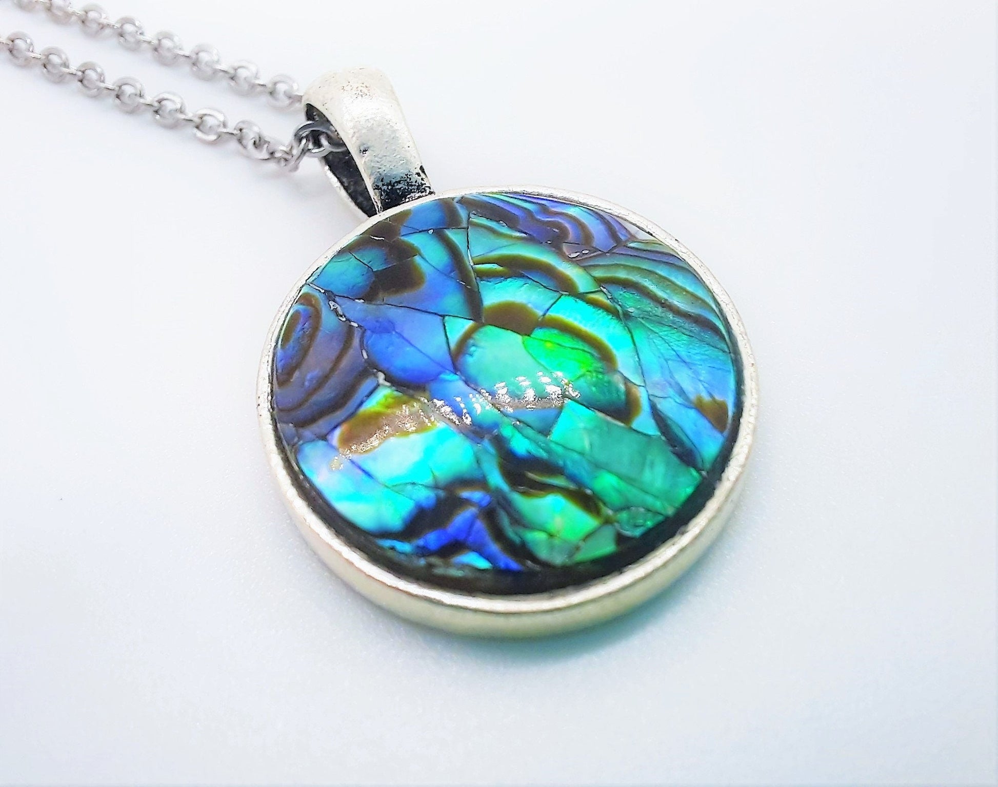Cracked Abalone / Paua Seashell Pendant Necklace