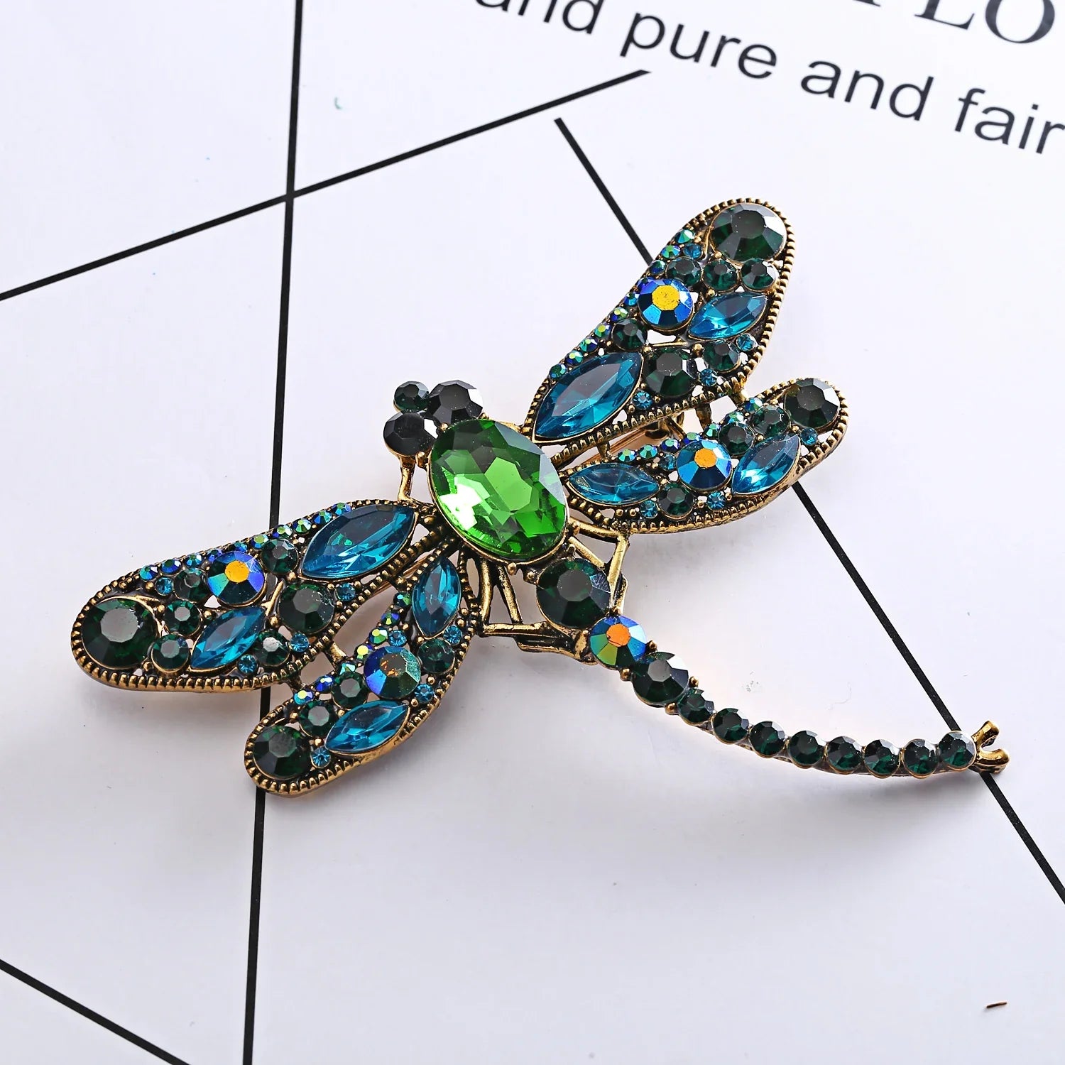Crystal Dragonfly Brooch Pin for Women - Large Insect Jewelry Accessory