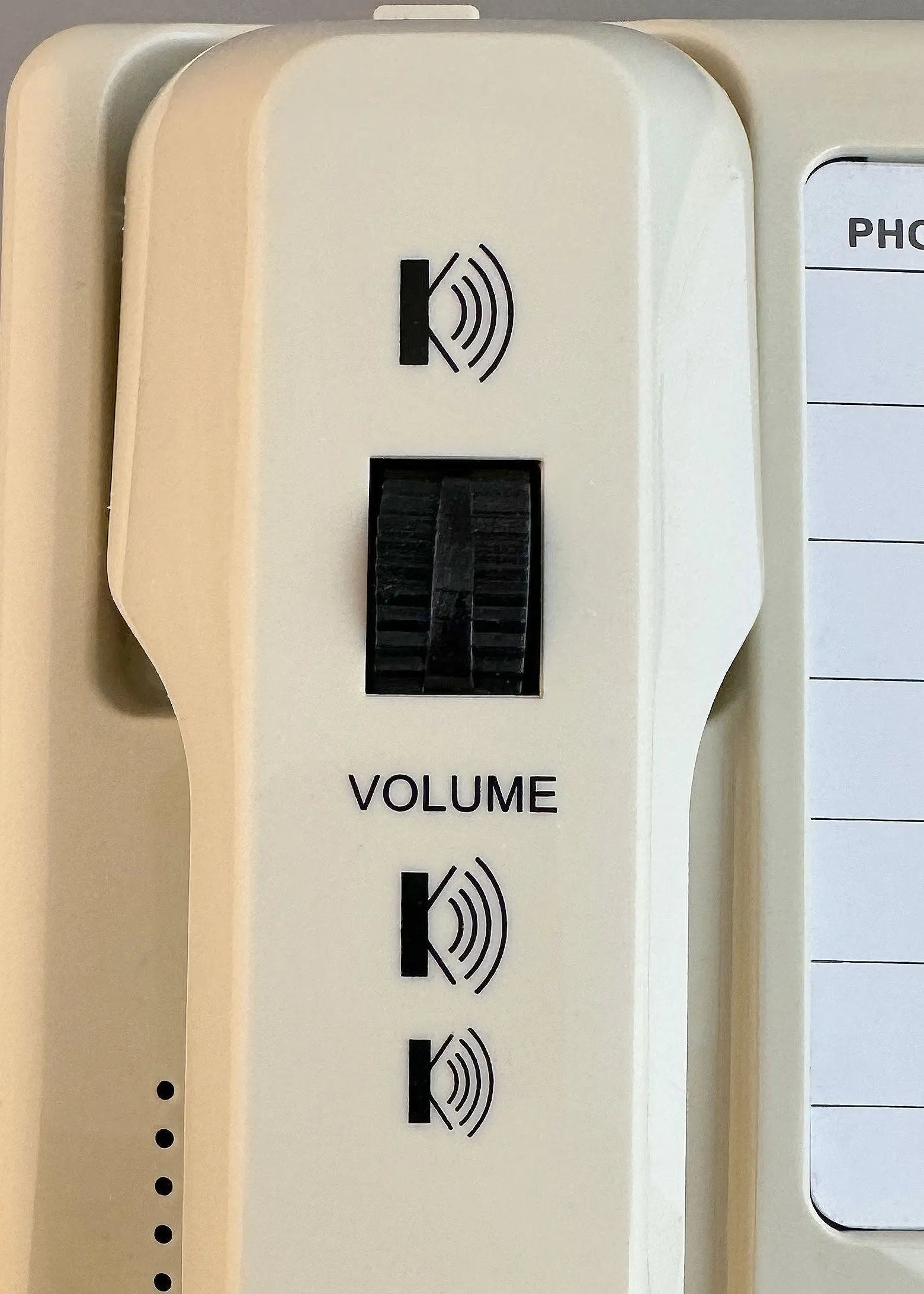 - Full-range thumbwheel volume control; 100% hearing aid compatible