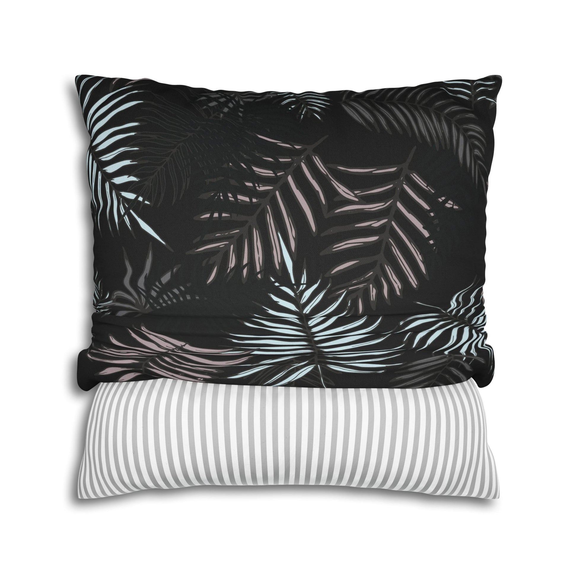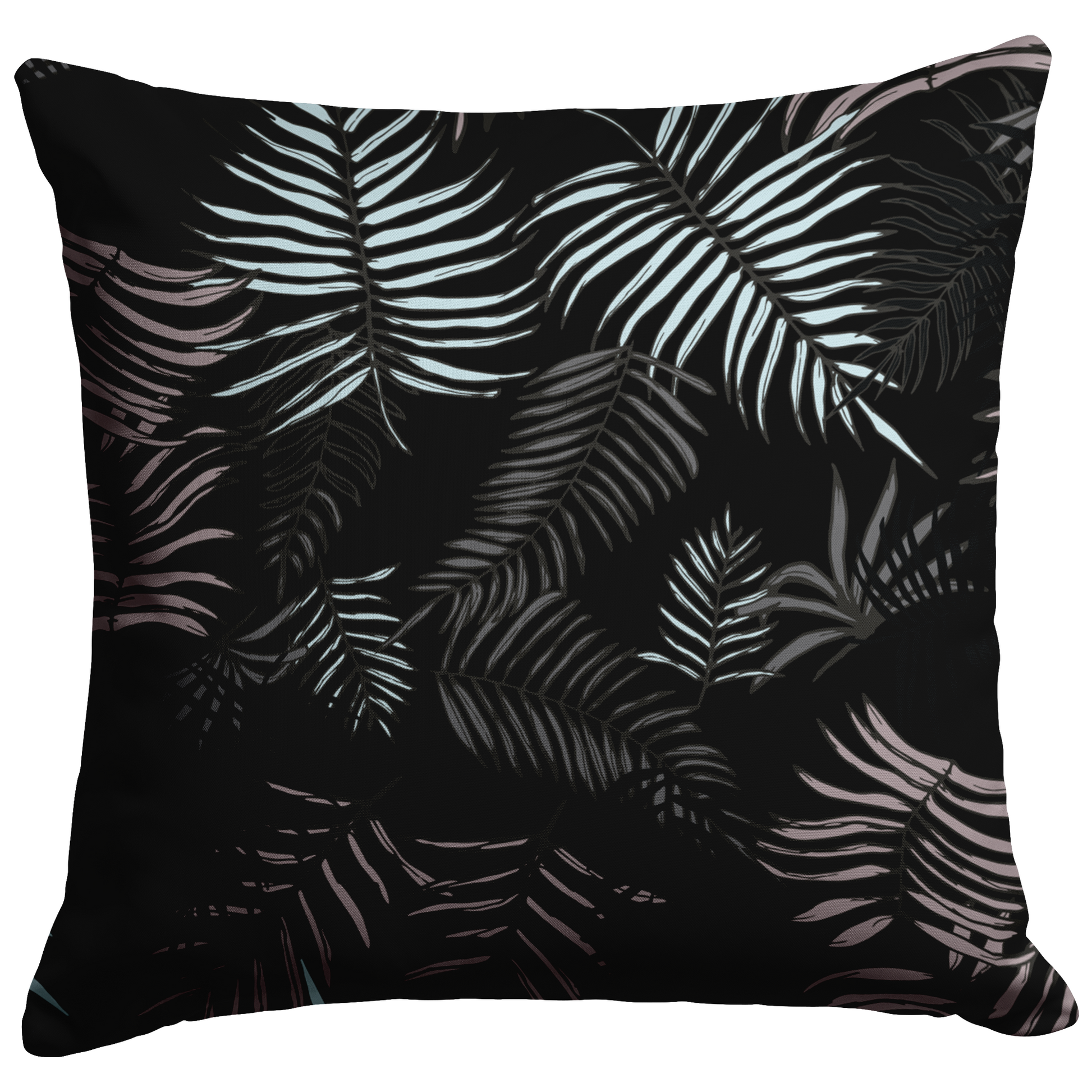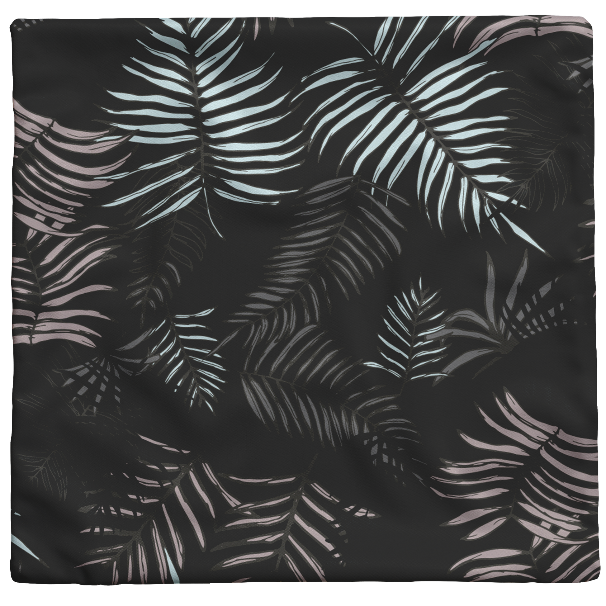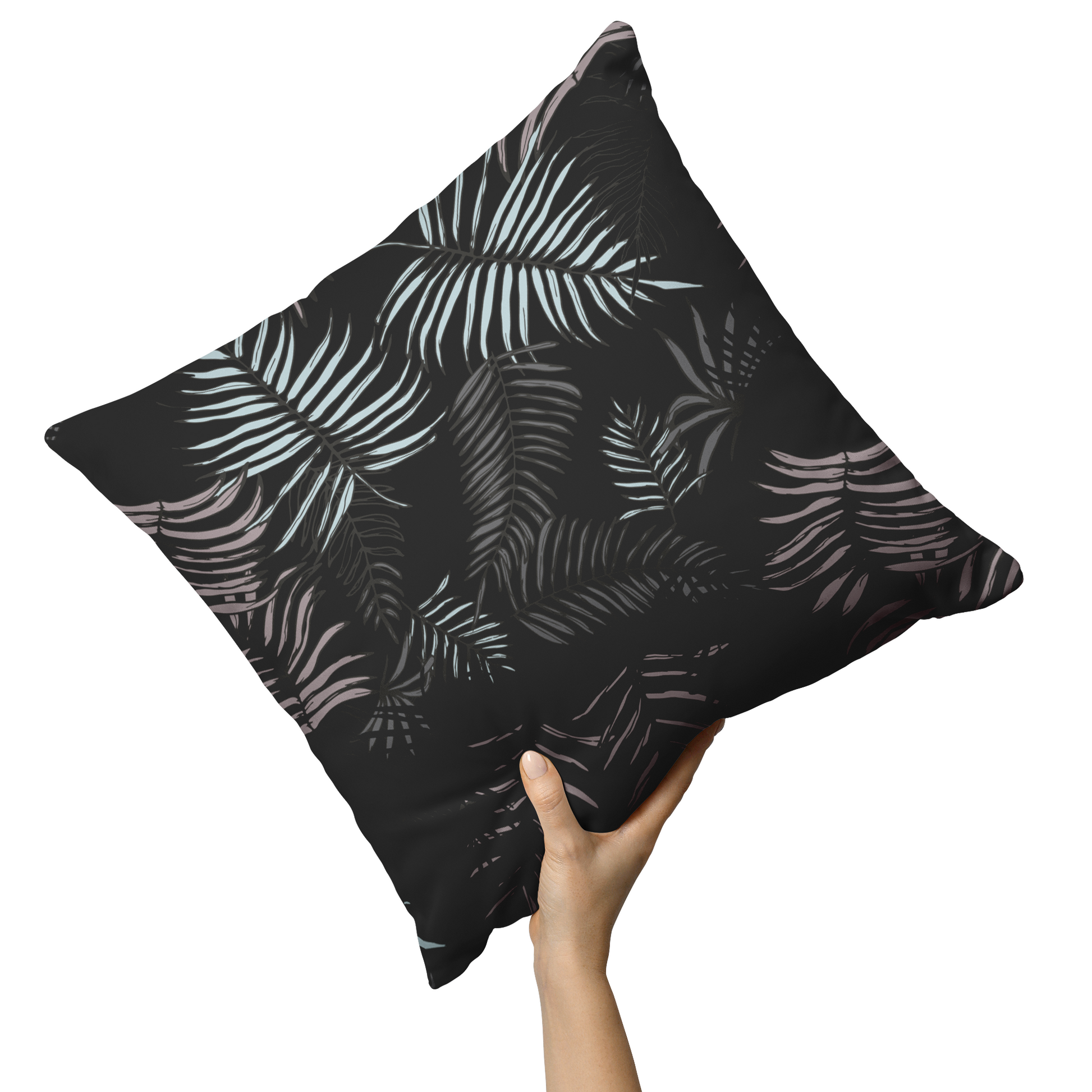 This square polyester pillow features a mesmerizing print of silvery fronds of tropical plants set against a deep black background. The intricate design brings a touch of nature’s elegance into your home, creating a perfect blend of sophistication and whimsy.