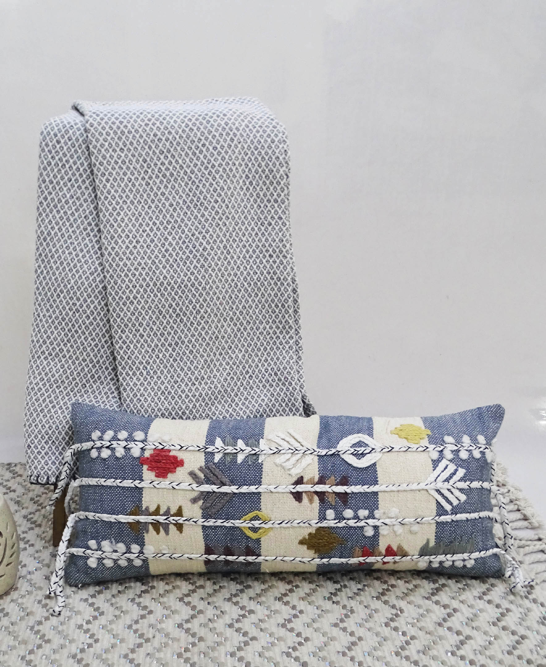 Add a touch of elegance and color to your living space with our exquisite 12"X30" Embroidery Throw Pillow with braids. This large decorative pillow is perfect for adding a stylish flair to your home decor. The front of the pillow features a beautiful combination of 90% cotton and 10% polyester, providing a soft and comfortable feel. The intricate embroidery and braided detailing add a unique and eye-catching element to the design, making it a true statement piece.