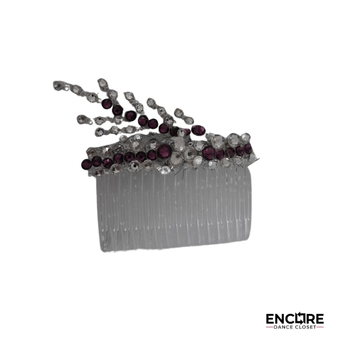 Daring and sophisticated, this deep plum leotard features bold geometric strap detailing accented with sparkling rhinestones. Mesh insets at the waist add dimension and movement, while the open strappy back makes a dramatic statement on stage. A stunning choice for contemporary, jazz, or lyrical solos that call for strength and elegance. Bust 34", Hips 35"