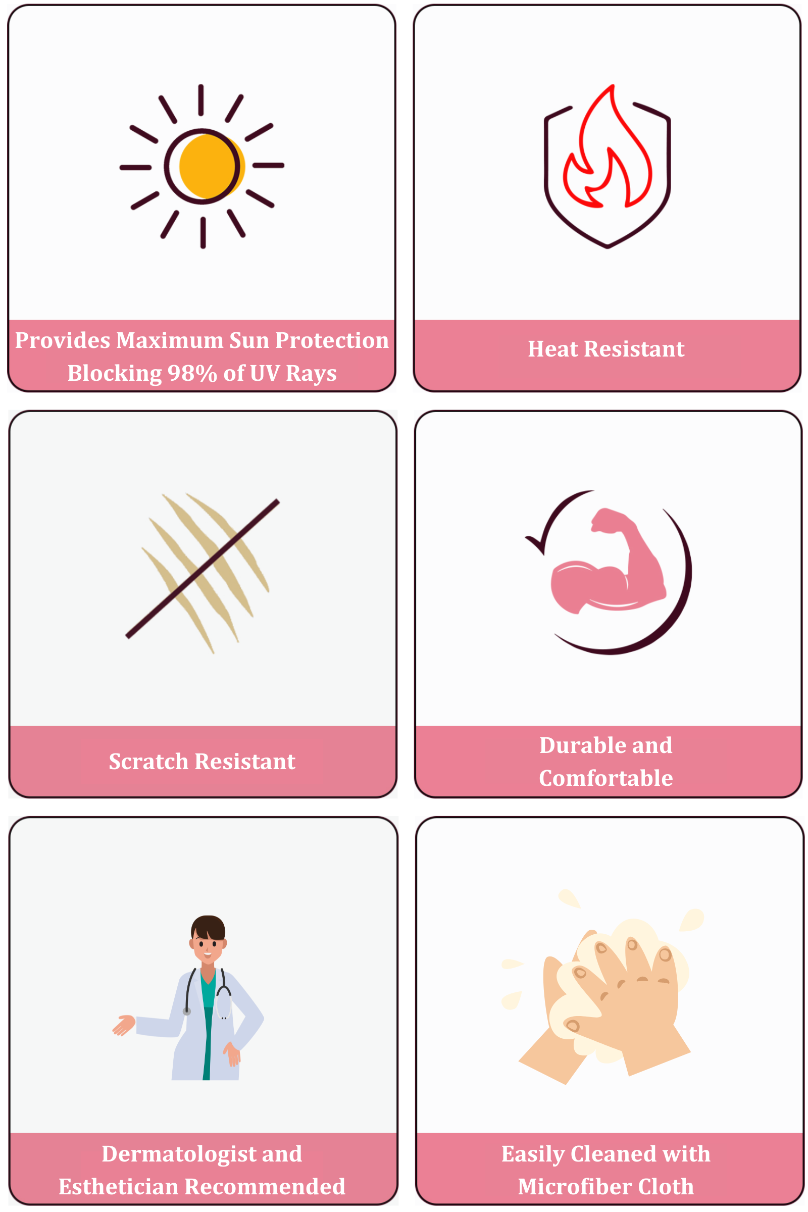 ◦Provides maximum sun protection, blocking 98% + UVA/UVB rays