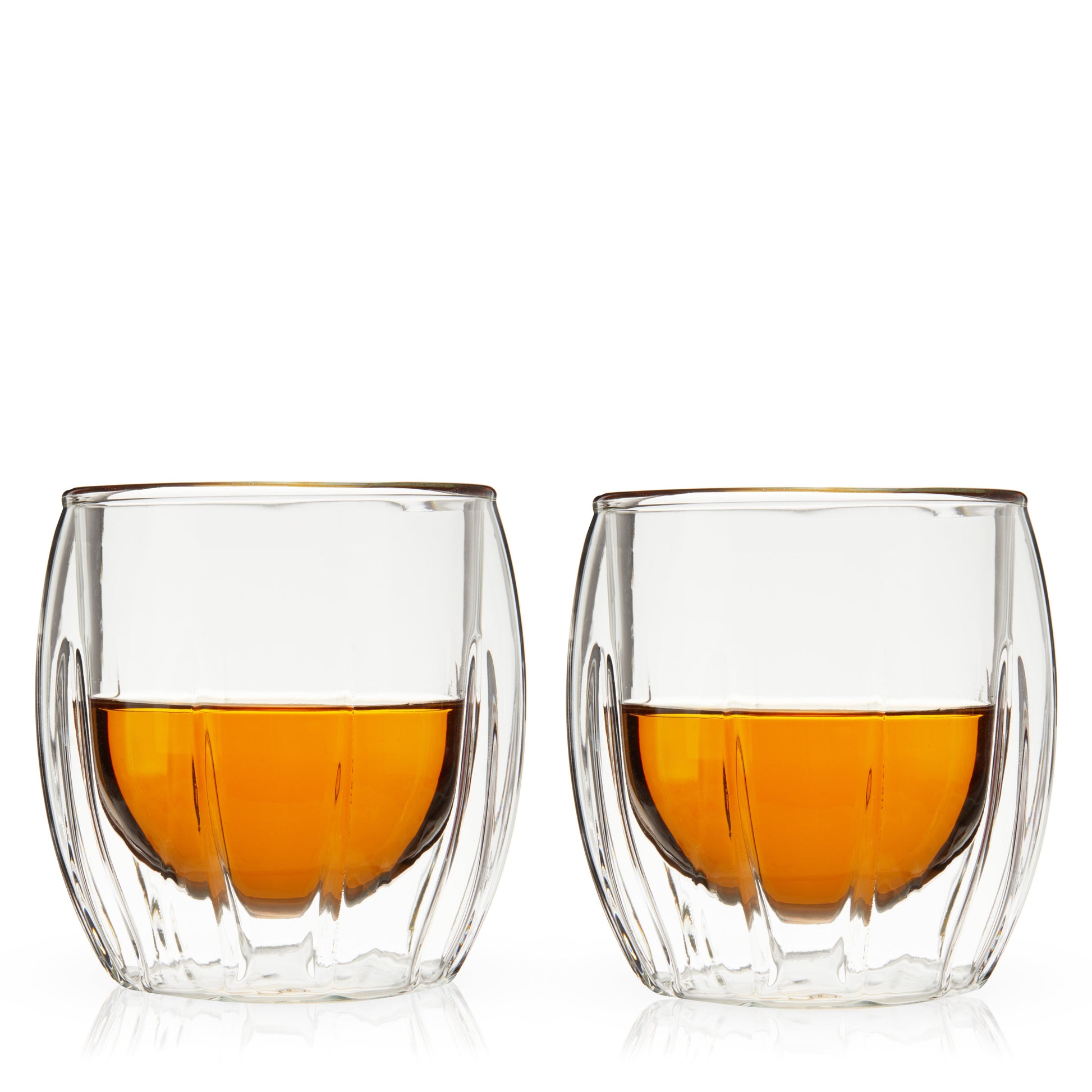 Take time to savor your liquor. The double-walled design of these tumblers maintains your gin or whiskey’s temperature and prevents condensation for a smooth sipping experience.