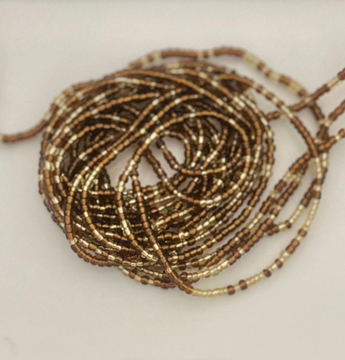 Minimalist in style, rich in energy—this strand pairs deep brown hues with radiant gold accents for a look that’s timeless and deeply rooted. Brown evokes grounding, protection, and connection to the earth, while gold brings a soft shimmer of wealth, warmth, and self-worth. Together, they create a simple yet powerful adornment for intentional living.