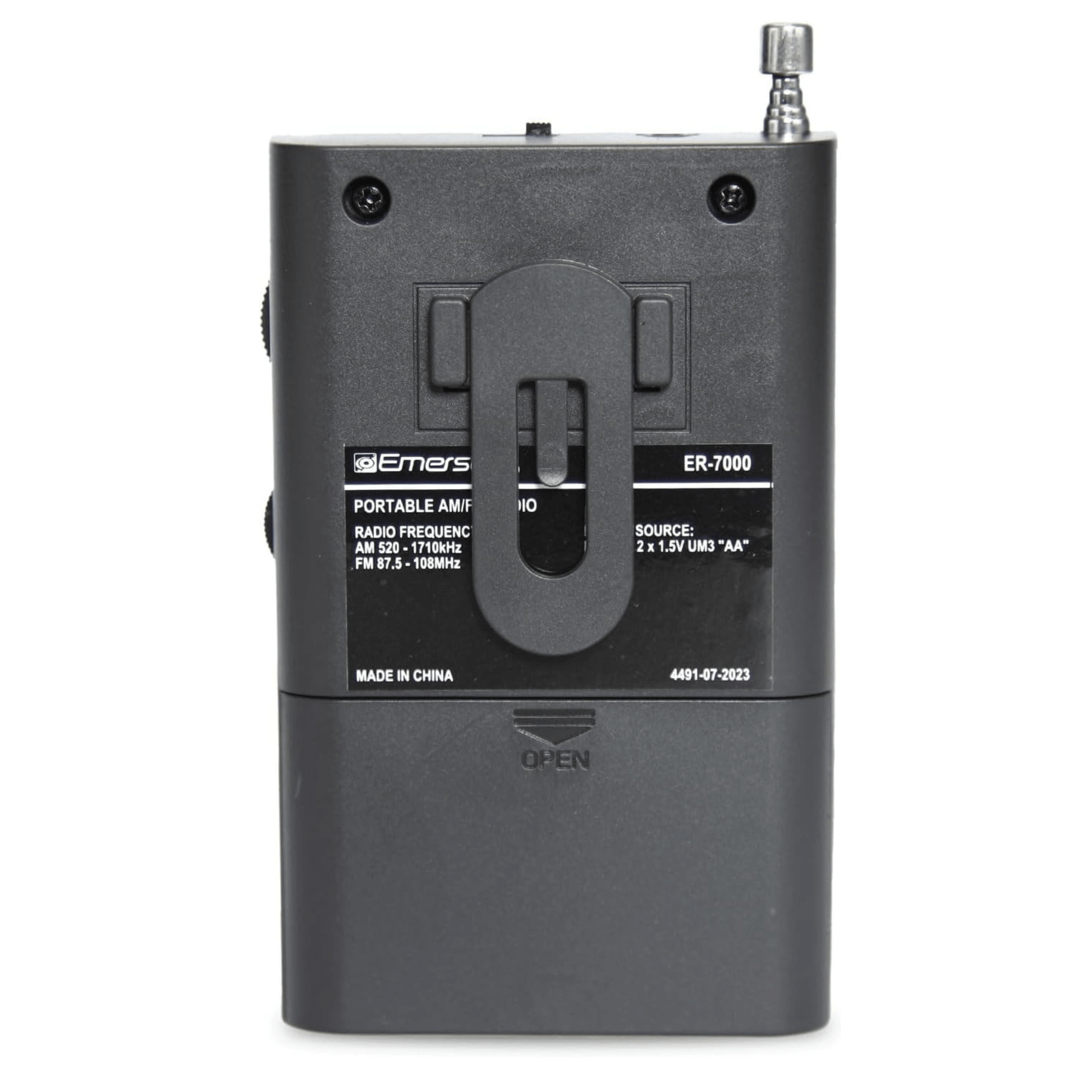 Emerson Portable AMFM Radio with Built-In Speaker and Easy Removable Belt Clip