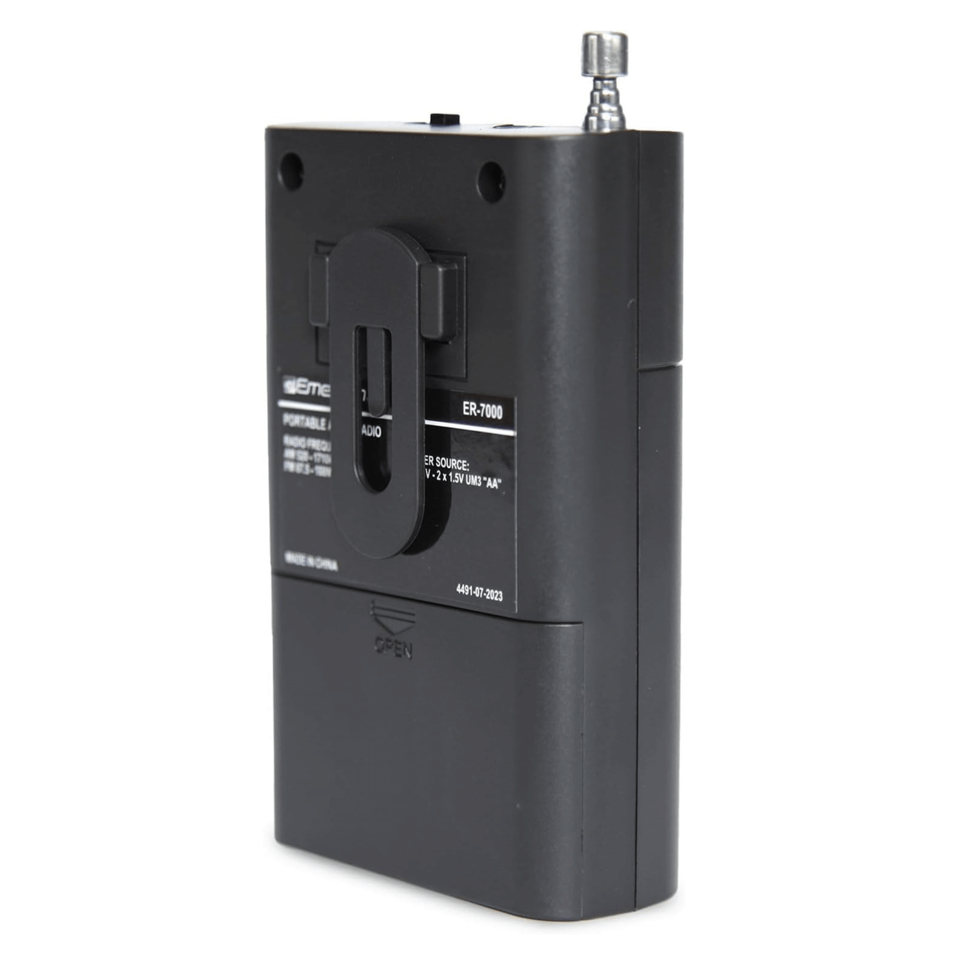 The ER-7000 is the ultimate portable AM/FM radio! You can listen to your favorite stations anytime with a headphone port, built-in speaker, and volume control. The removable belt clip makes it easy to take this radio on the go, and the power of two AA batteries (sold separately) means you can enjoy hours of listening. Get yours today and never miss a beat!