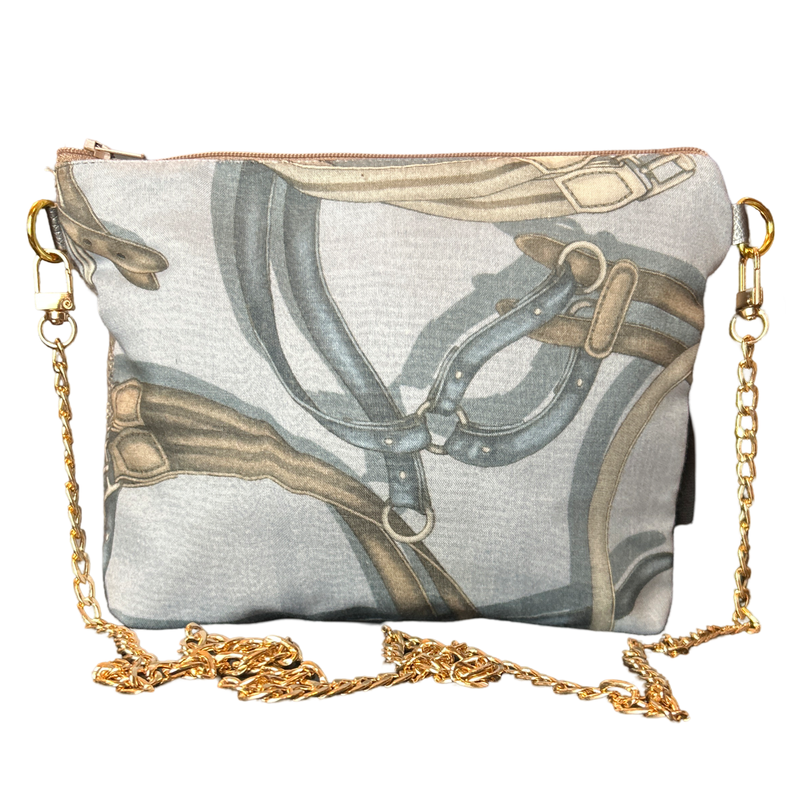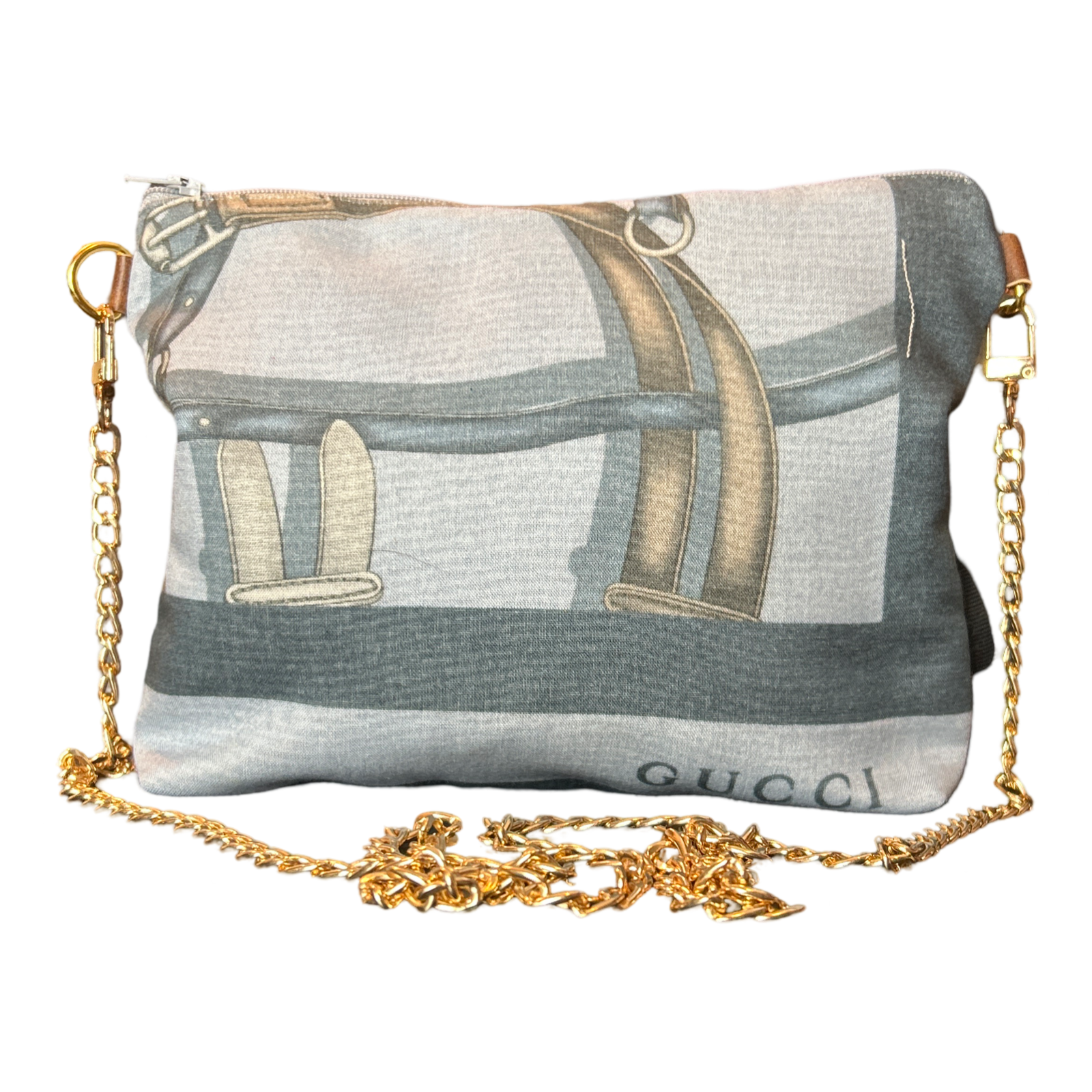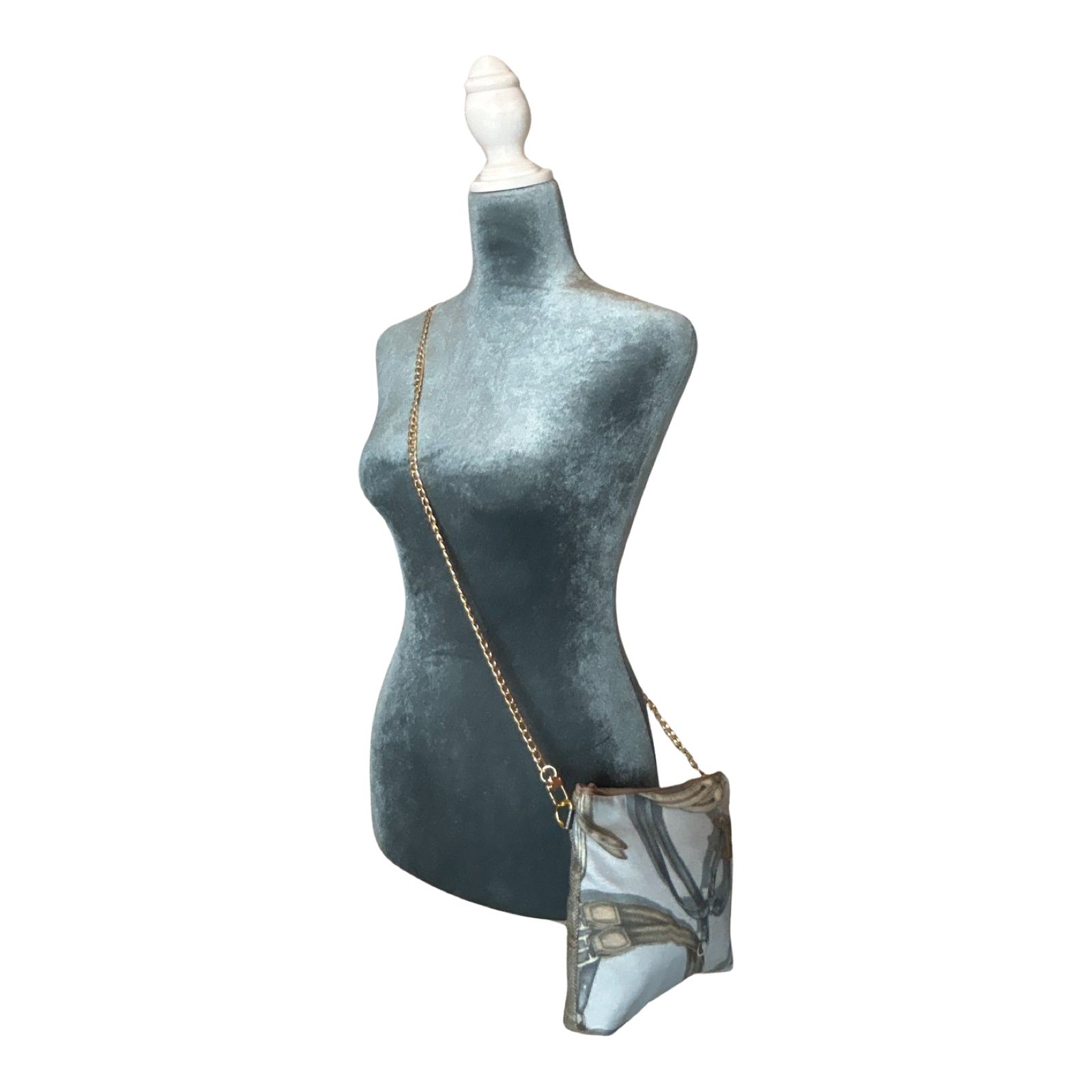 Equestrian Gray Vintage Silk Scarf Crossbody Bag
