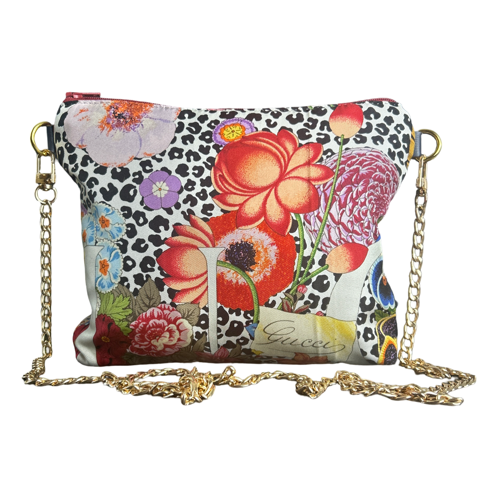 Reimagined from the world’s finest collection of vintage luxury scarves, our crossbody bag is the ultimate accessory for your on-the-go lifestyle. Limited editions, perfectly sized to stash all your essentials in a zippered bag with a gold-tone removable crossbody chain.