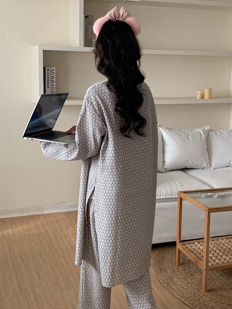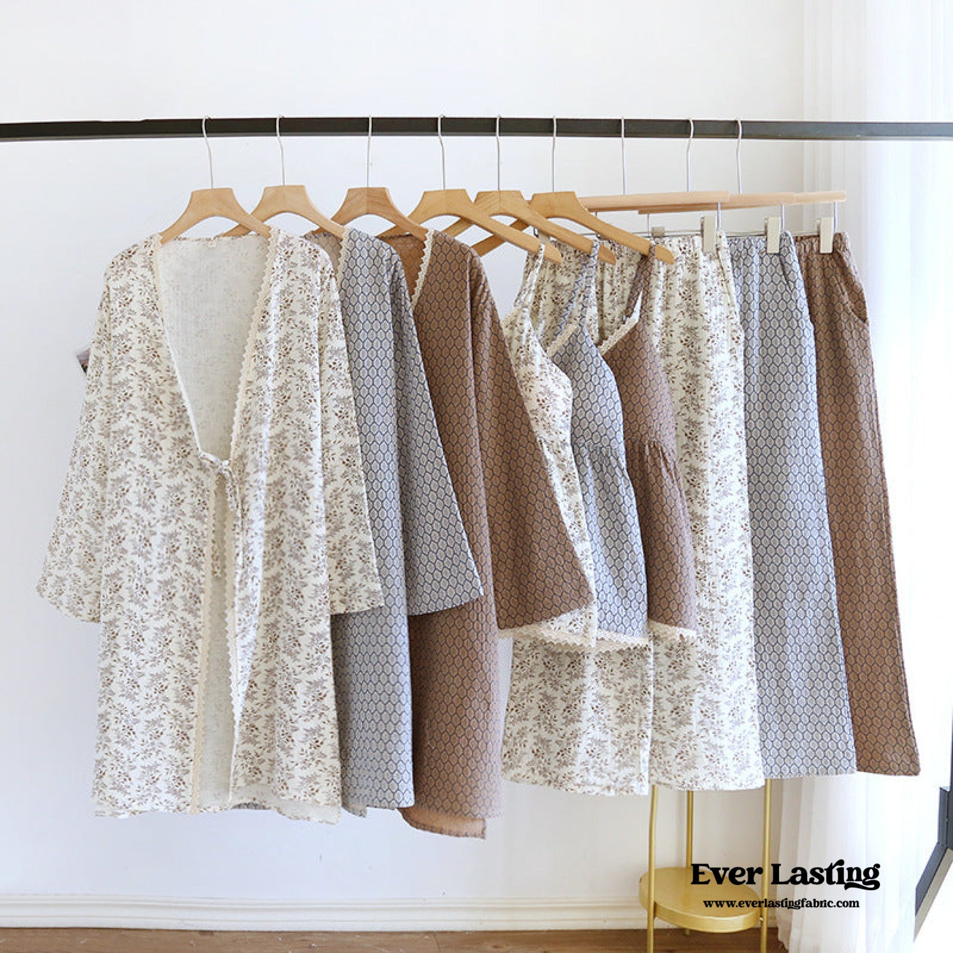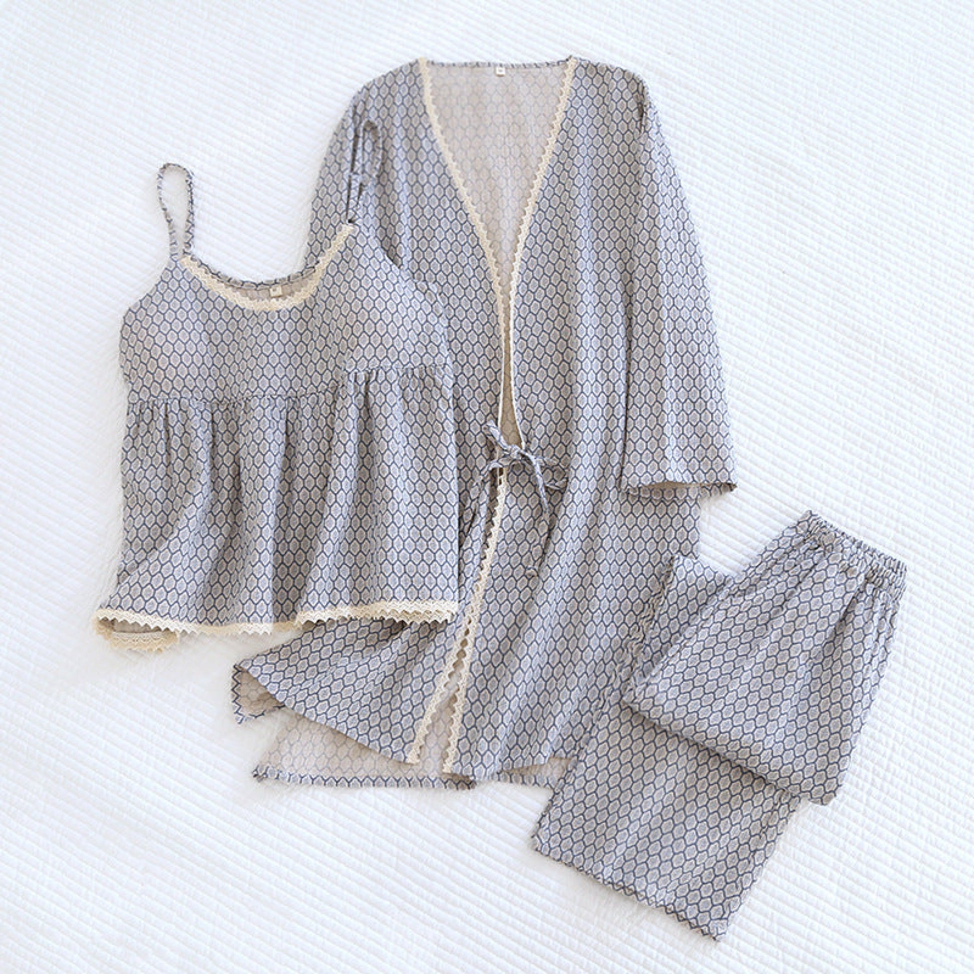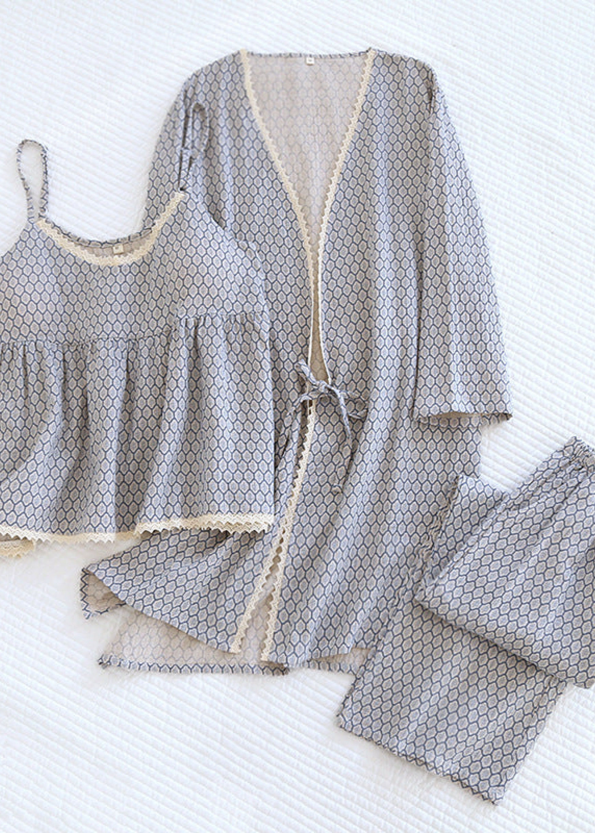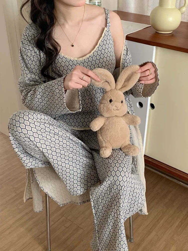 Unwind in comfort and style with our Floral V Tank and Long Pants with Cardigan Cotton Pajama Set. This meticulously crafted ensemble features a floral V-neck tank top and long pants, both made from soft, breathable cotton fabric, ensuring cozy coverage and freedom of movement throughout the night. With delicate floral patterns adorning the tank top and a coordinating cardigan providing extra warmth and versatility, this set is perfect for relaxing evenings or leisurely mornings, promising to make every moment of relaxation feel extra special.