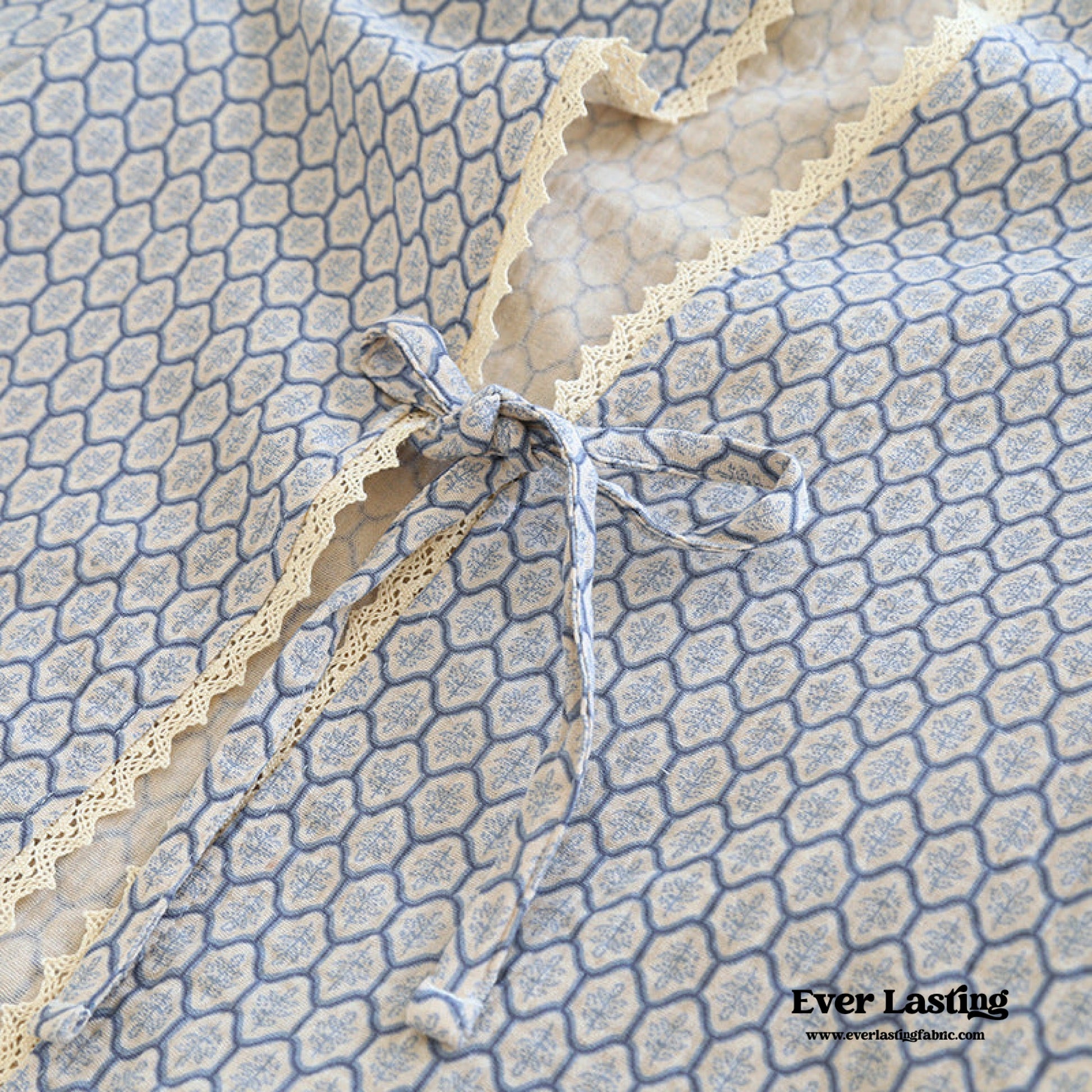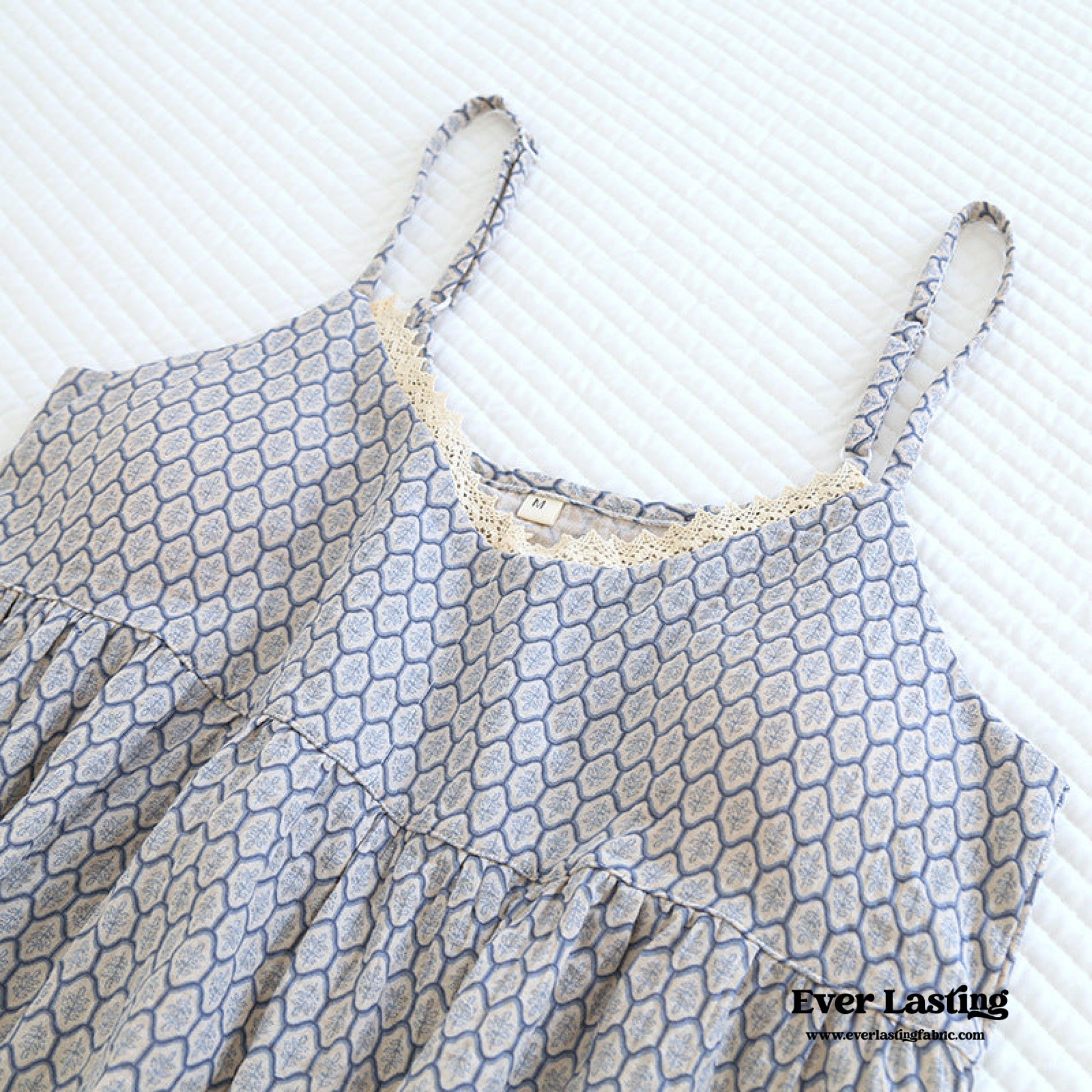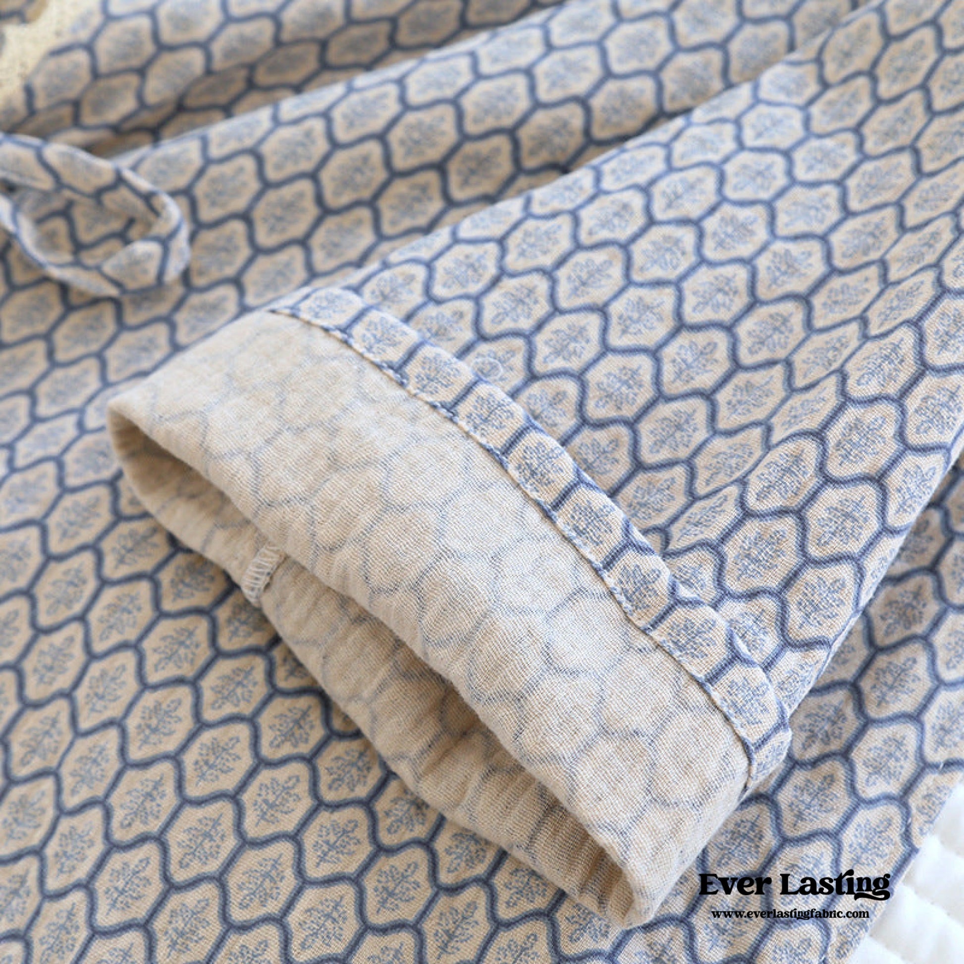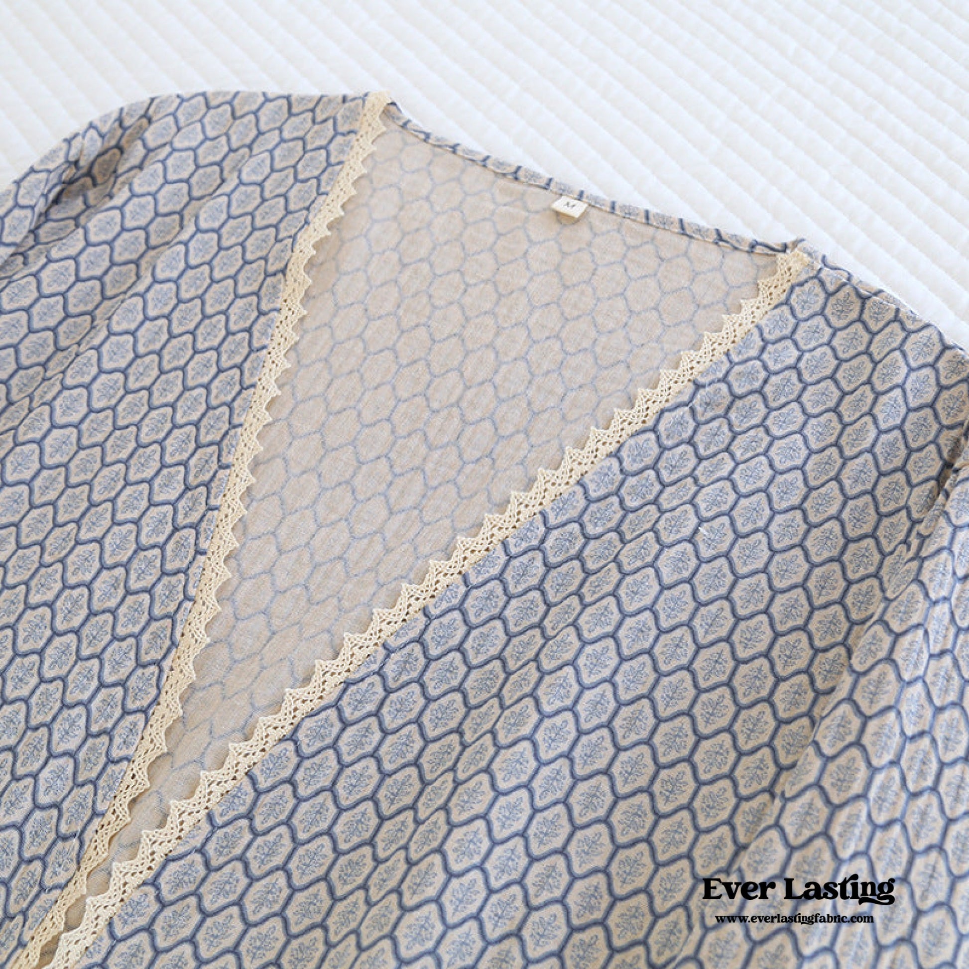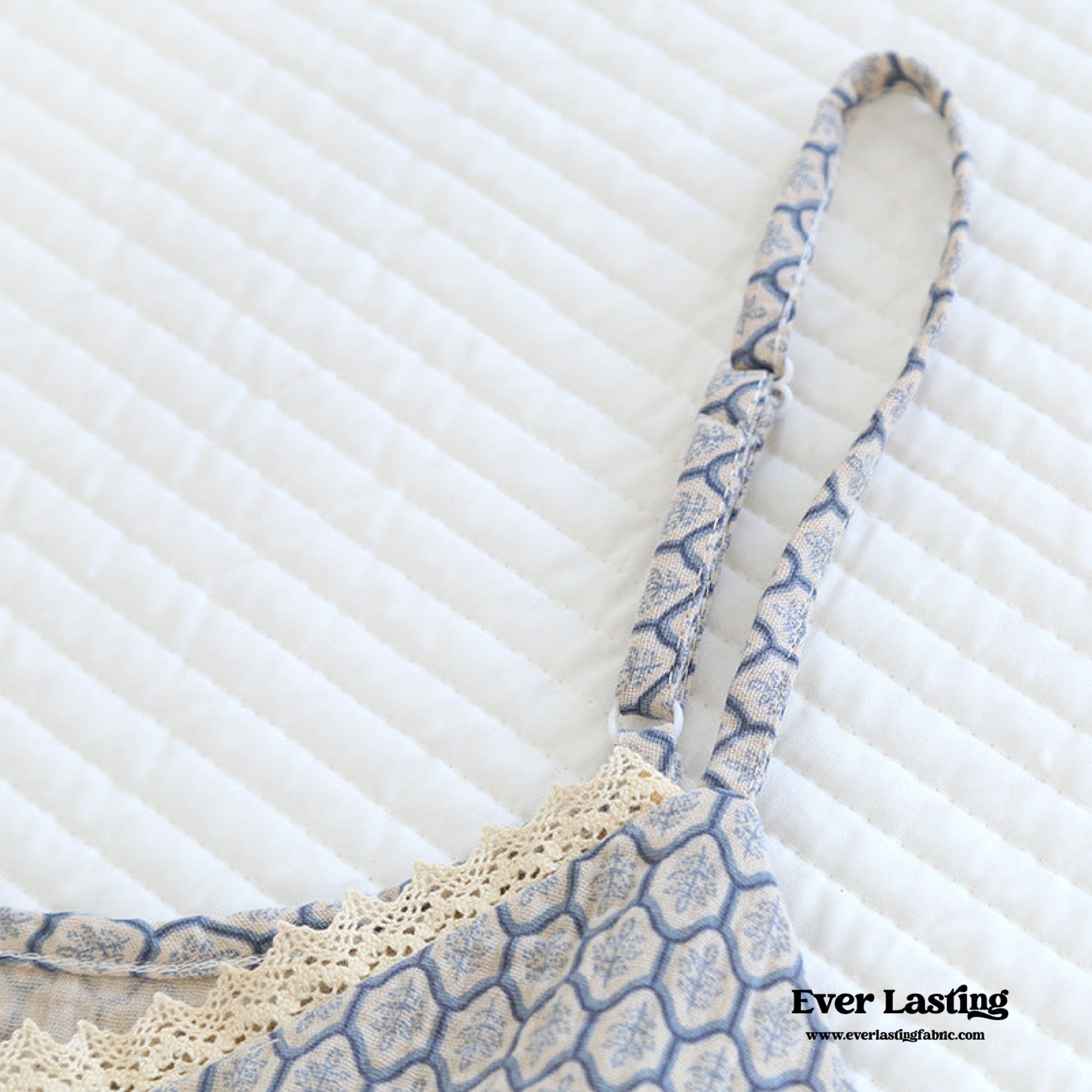 Floral V Tank and Long Pants with Cardigan Cotton Pajama Set / Blue