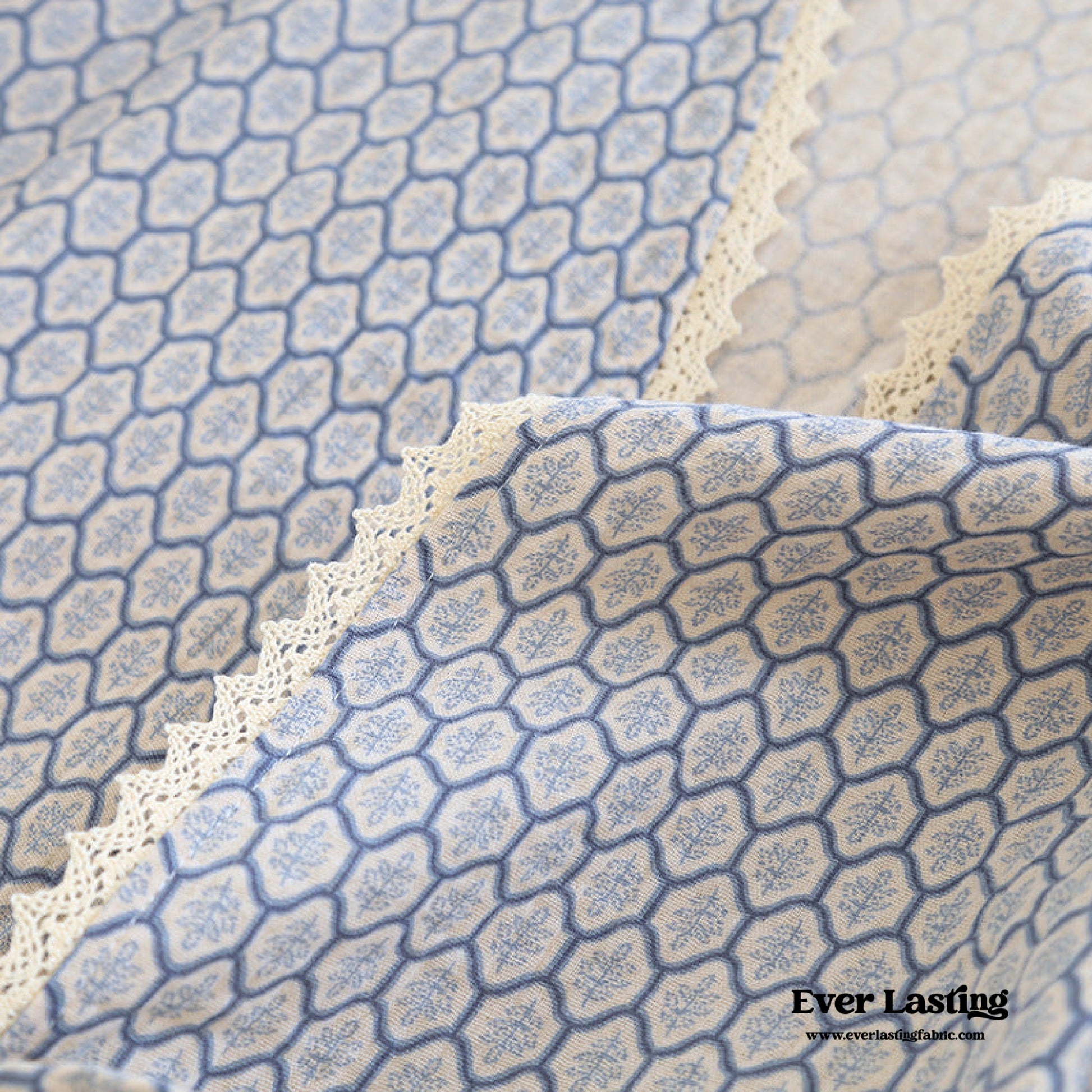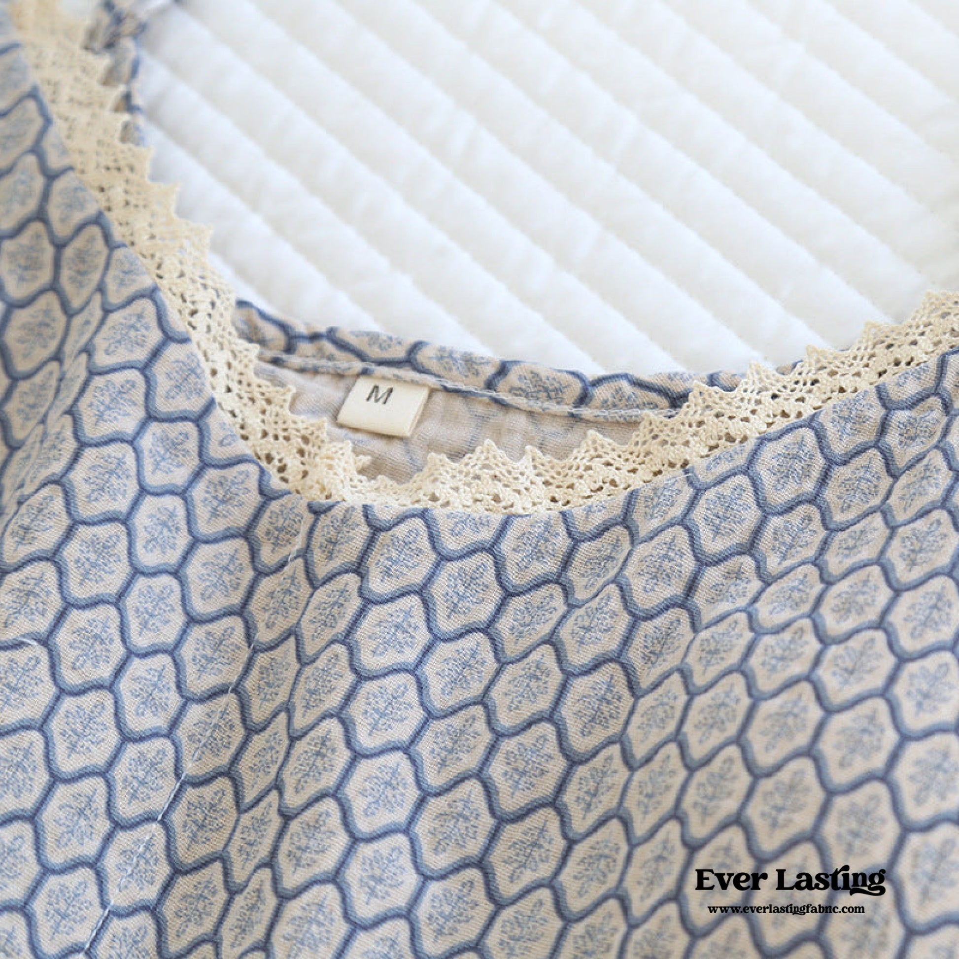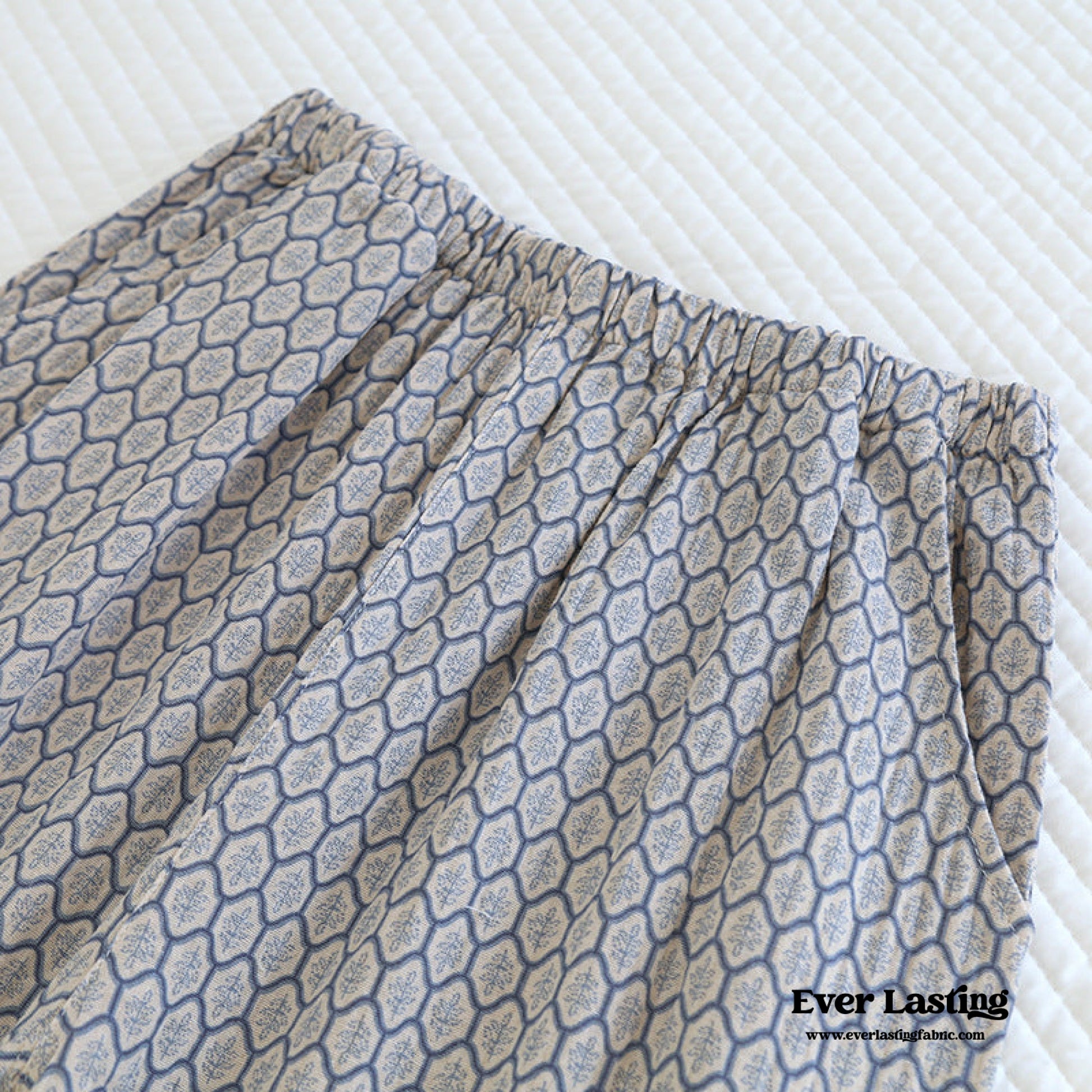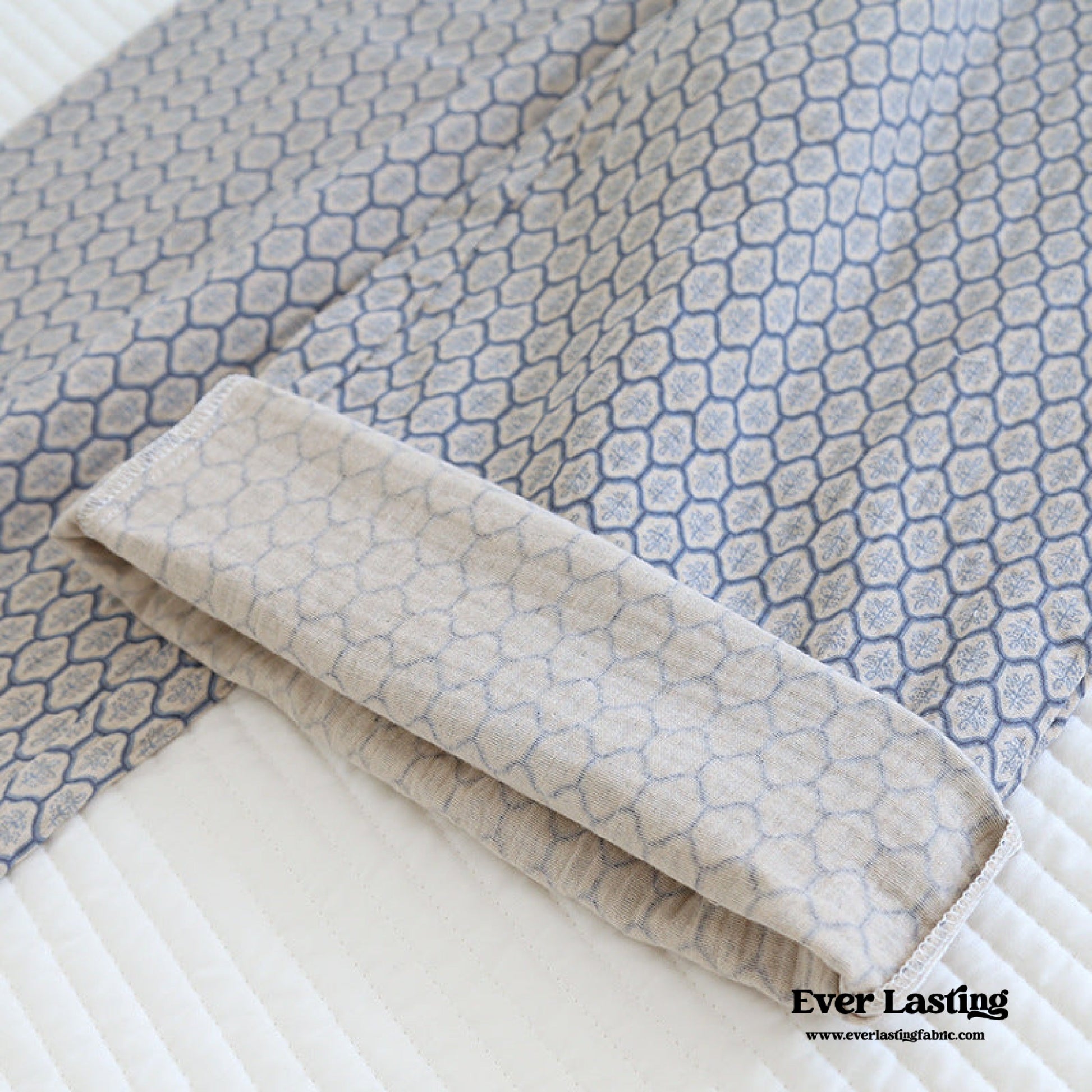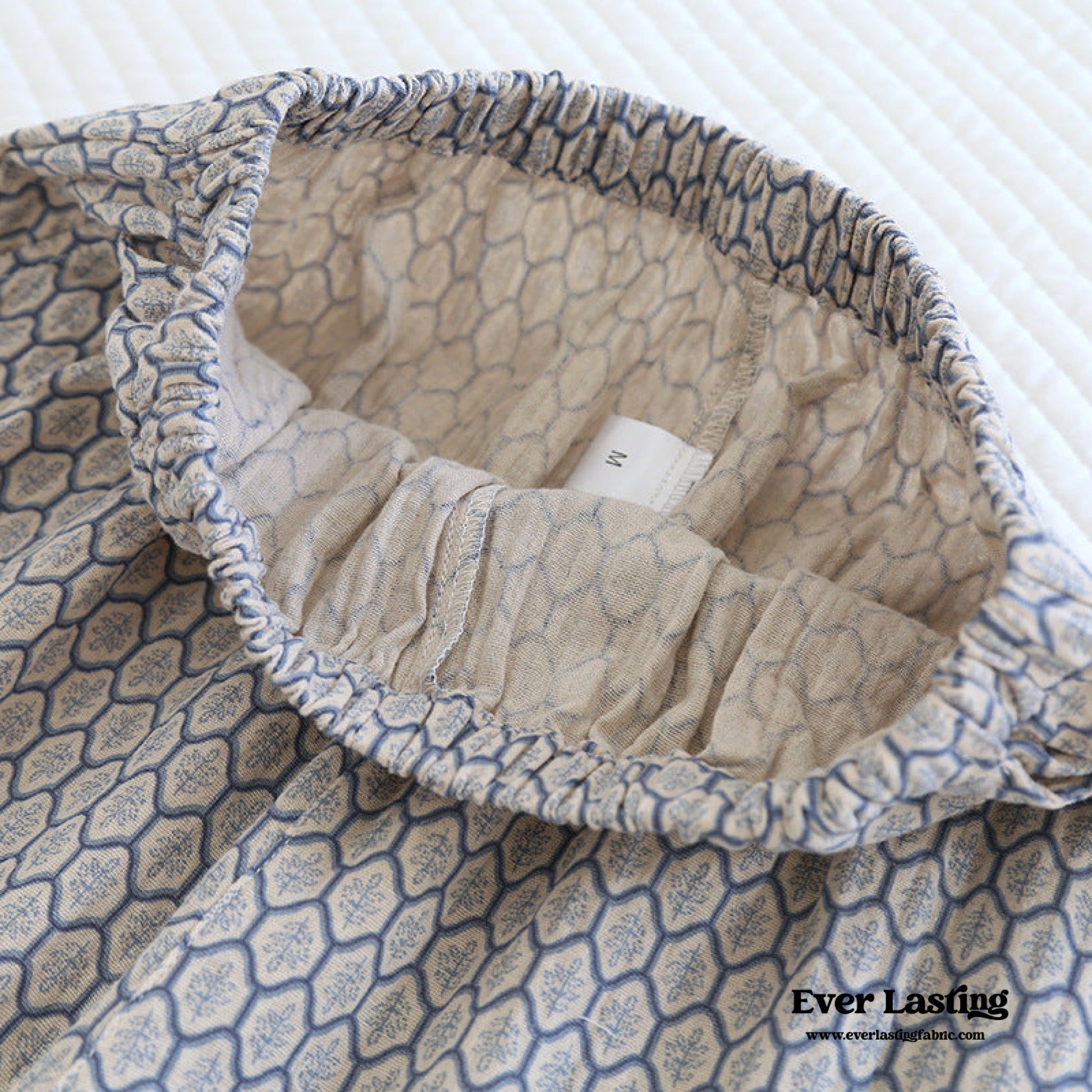 Floral V Tank and Long Pants with Cardigan Cotton Pajama Set / Blue