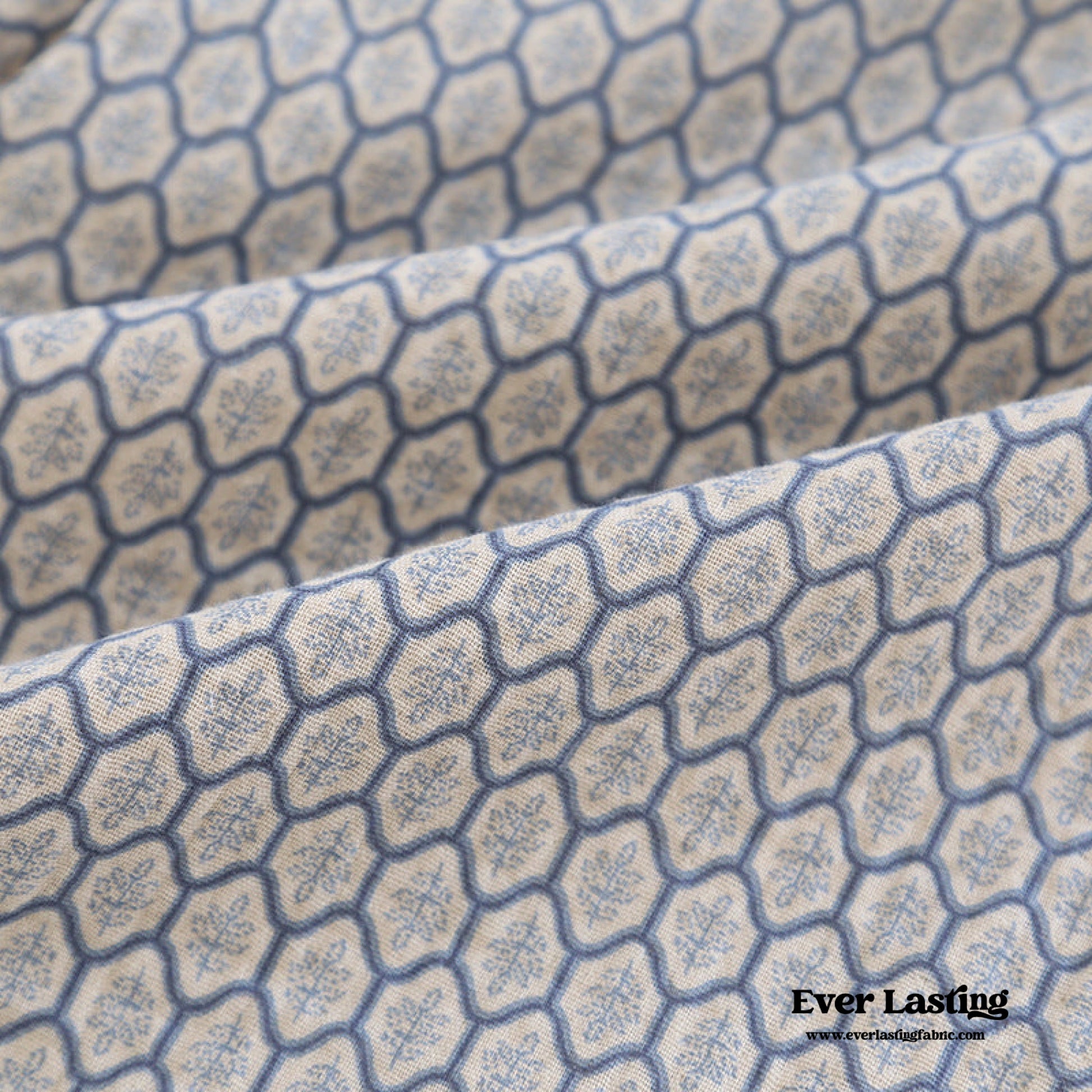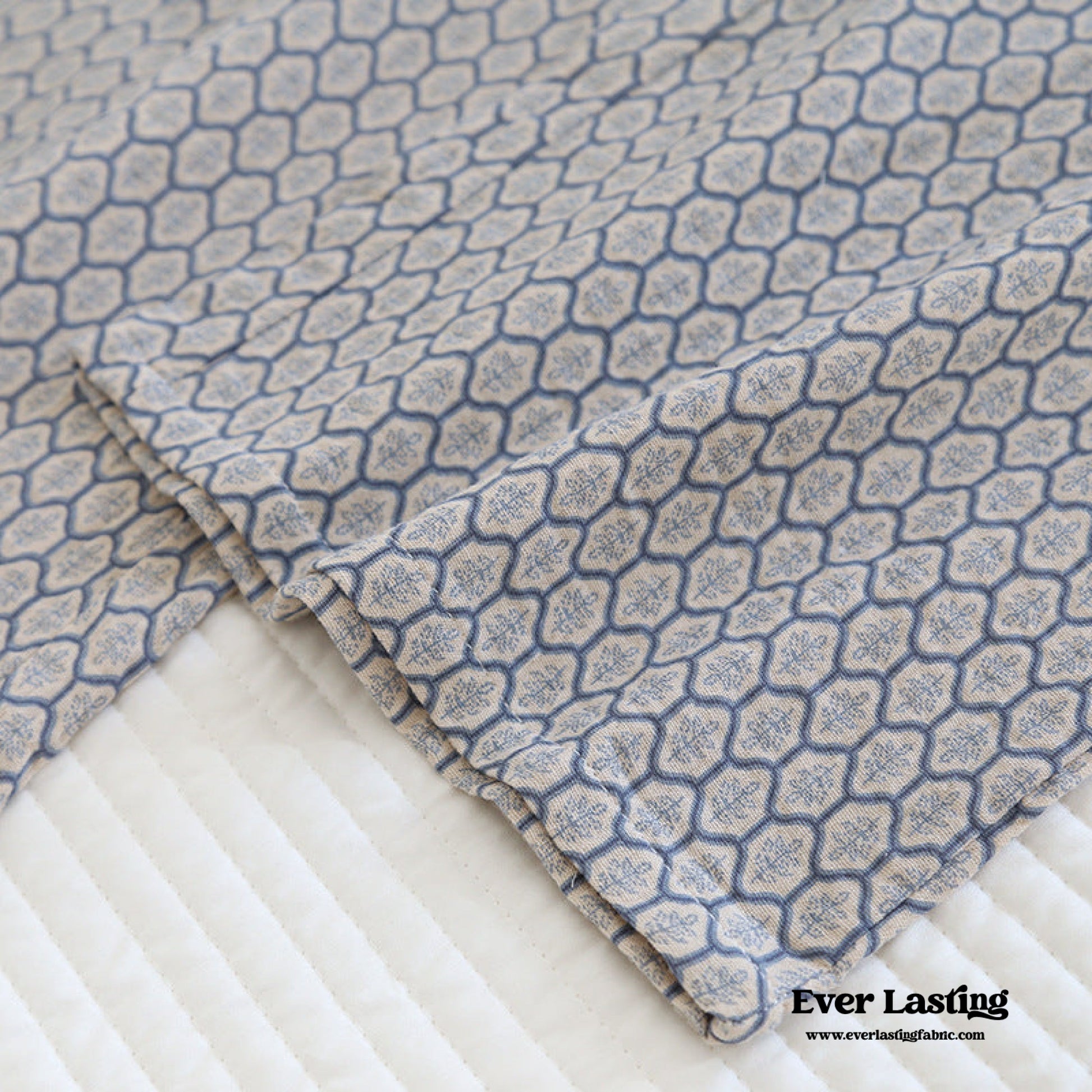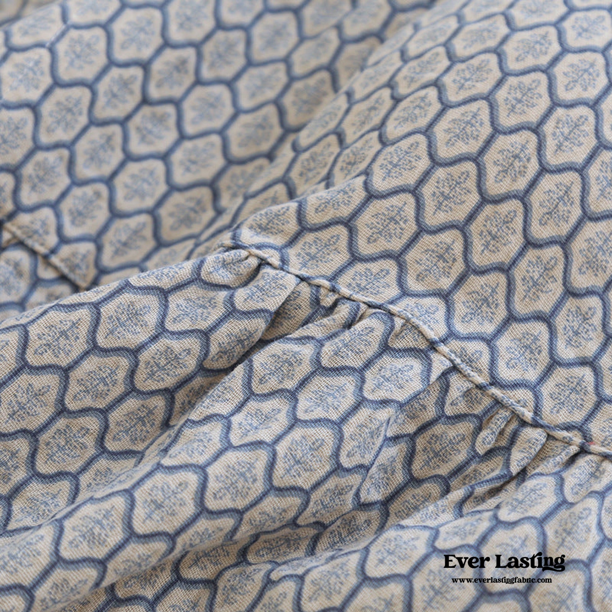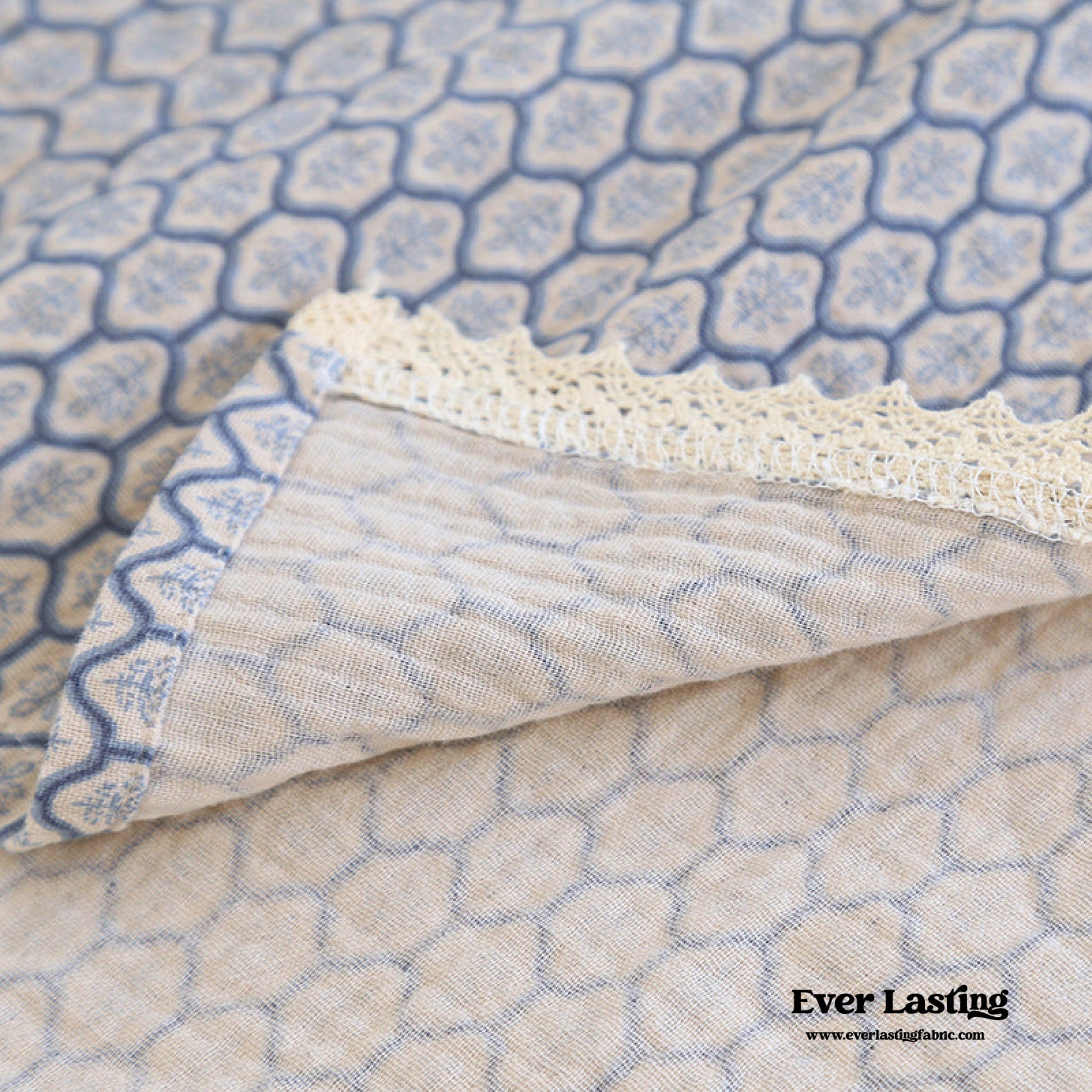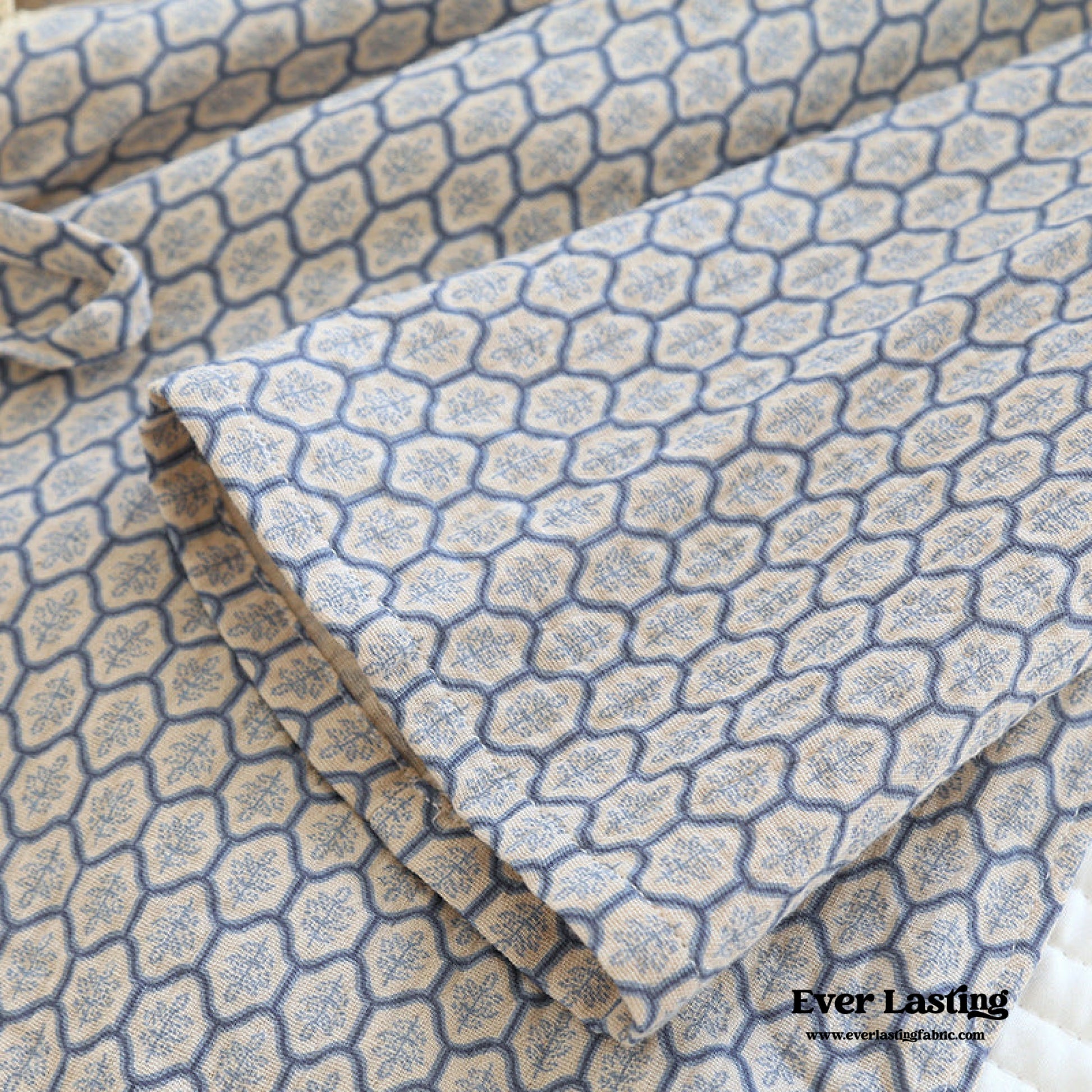 Floral V Tank and Long Pants with Cardigan Cotton Pajama Set / Blue