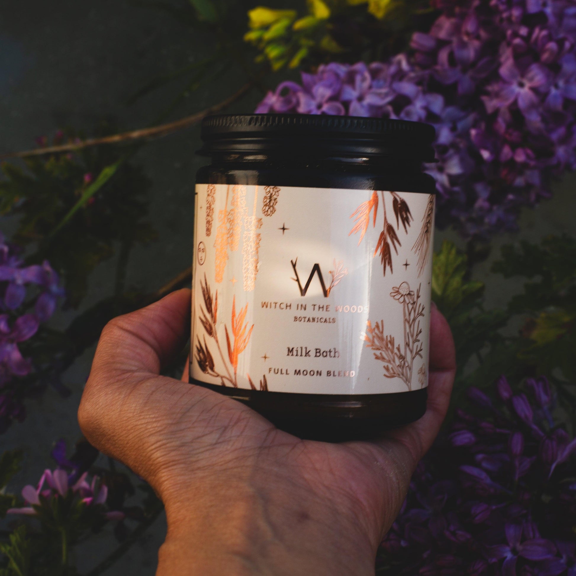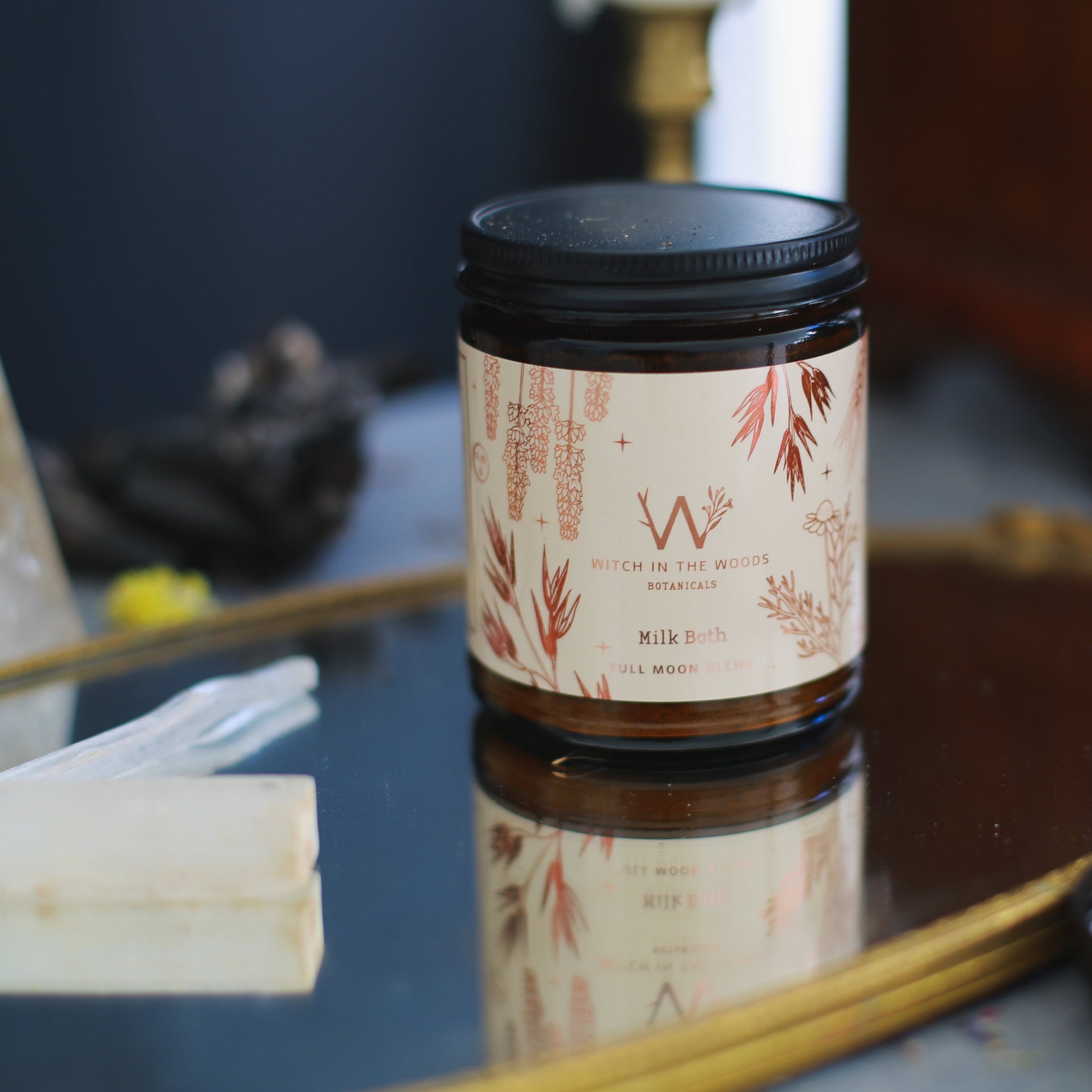 Enter into the magickal realm of the Moon with Witch in the Woods Full Moon Milk Bath. Attune to the cycles of the Moon with this enchanting potion, a soothing blend of plant milks, salts, clays, and herbs that will transport you to a place of deep relaxation and self-connection. Behold, for these ingredients are ruled by the Moon, imbued with its essence and magickal properties! As you bathe, let it gently detoxify and nourish your skin, leaving your skin feeling and looking soft and radiant. Let it be known that bathing with the Moon is a sacred ritual that helps us feel more connected and aligned with the natural cycles. Let it be your guide on your journey of beauty, wellness, and self-discovery.