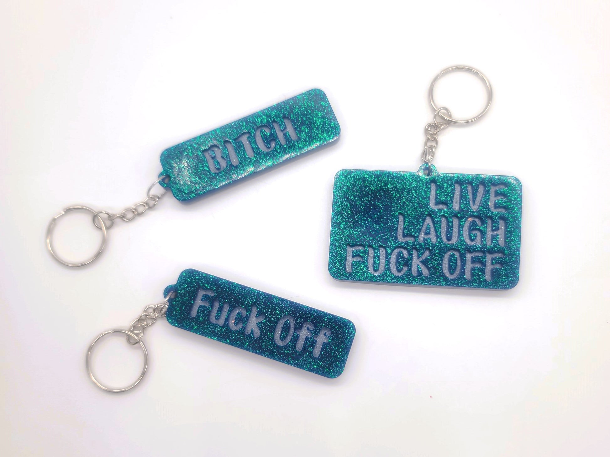 The key chains are approximately 2" wide 1.5" high 1/8" deep. The metal ring measures approximately 1" in diameter.