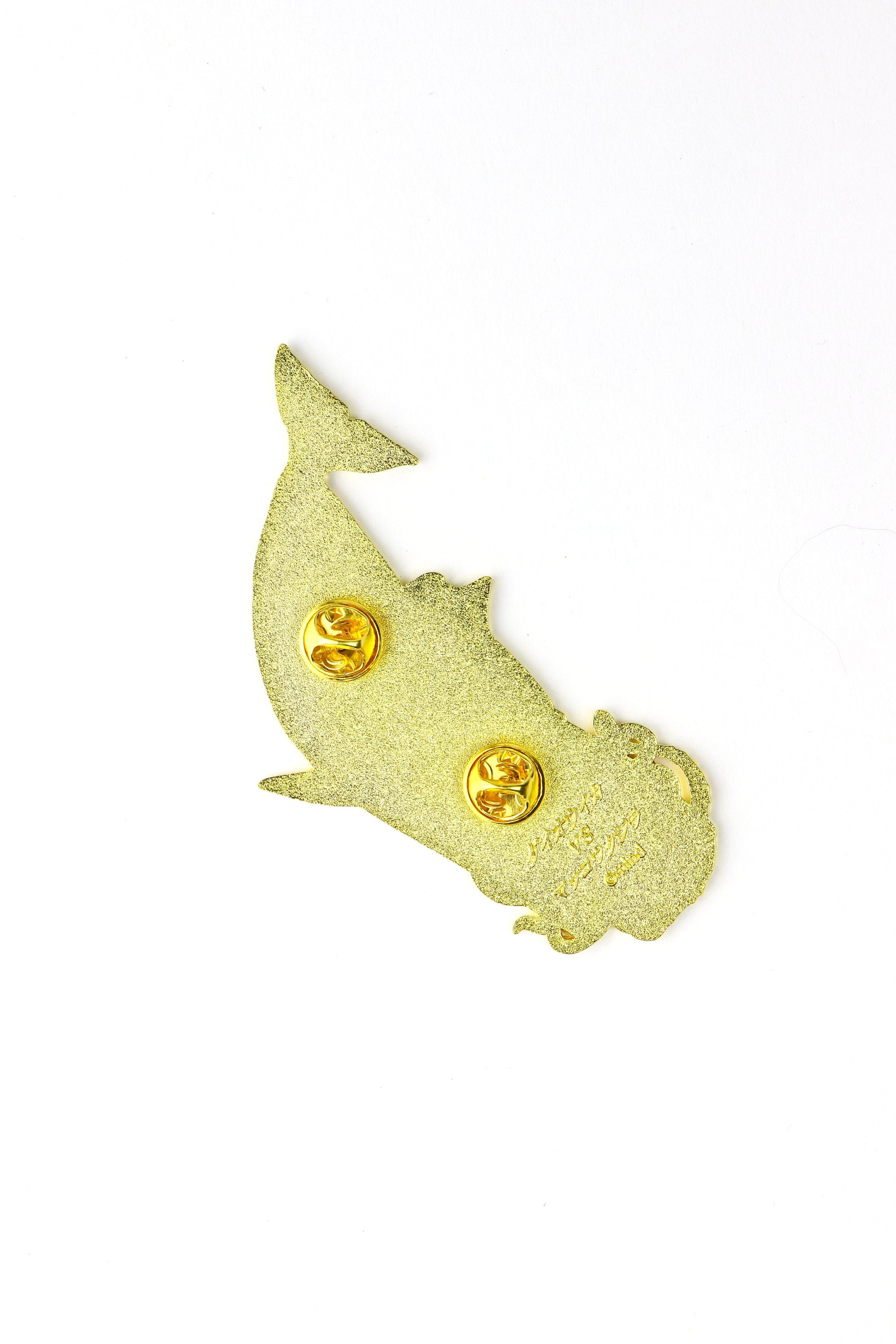 Perfect for fans of marine legends, deep-sea apex predators, and anyone who prefers their lapel art with a little chaos baked in.