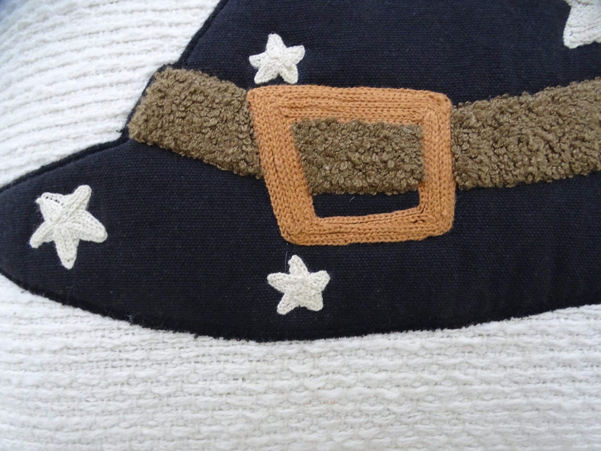 20 inches X 20 inches handwoven pillow with printed and embroidered
