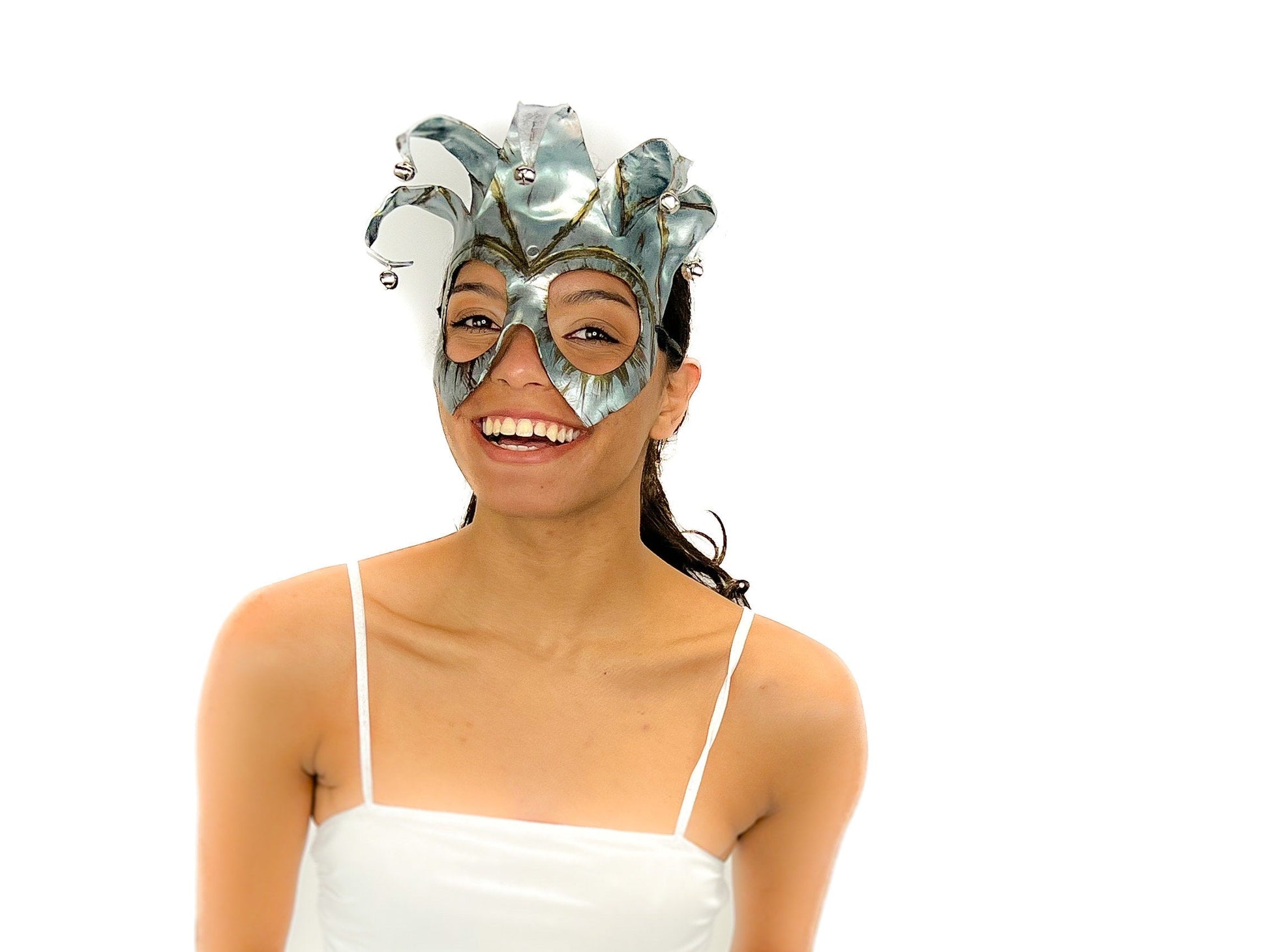 Handmade Genuine Leather Five Point Jester Mask in Patina Silver
