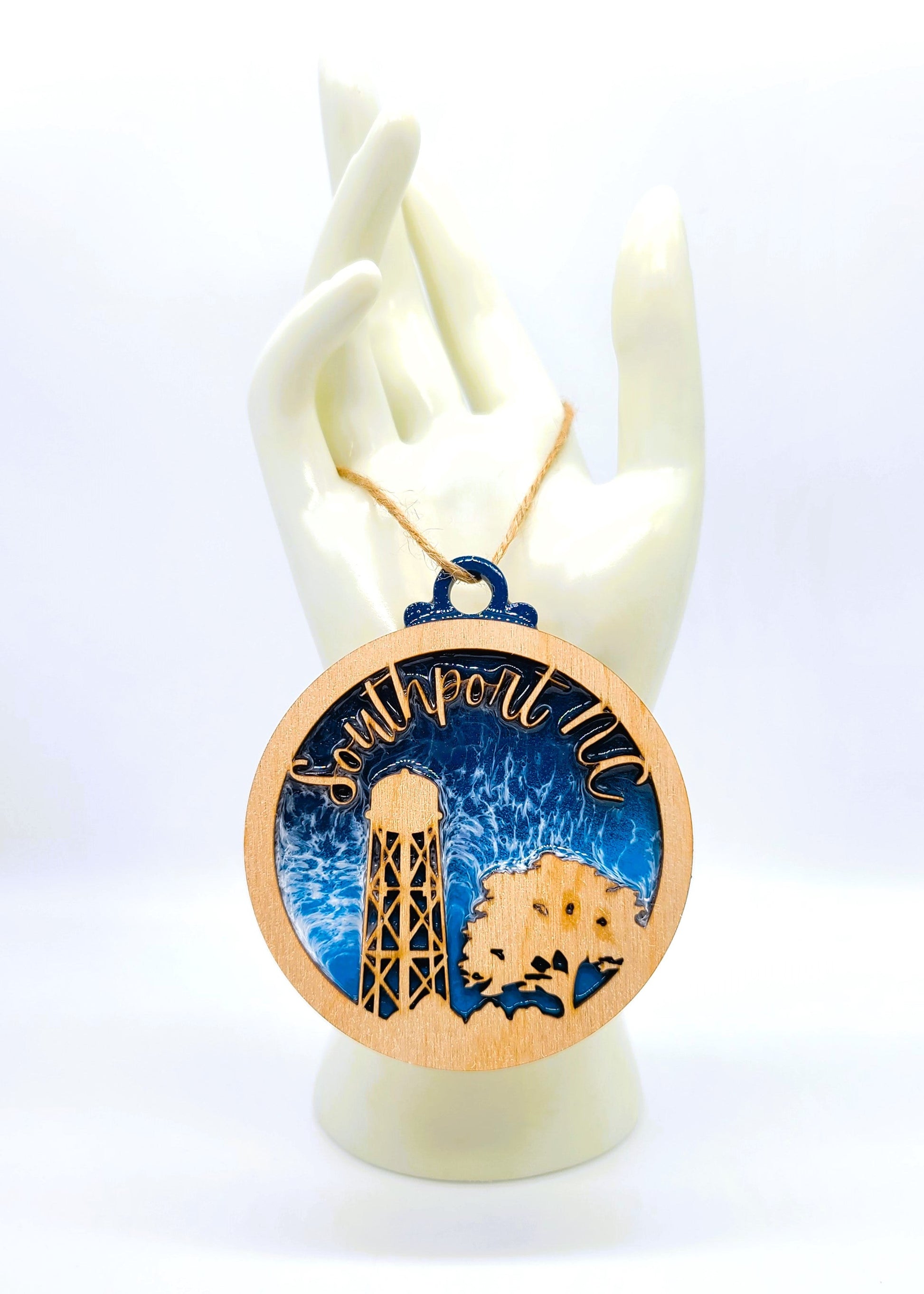 Handmade Resin & Wood "Southport, NC" Christmas Ornament