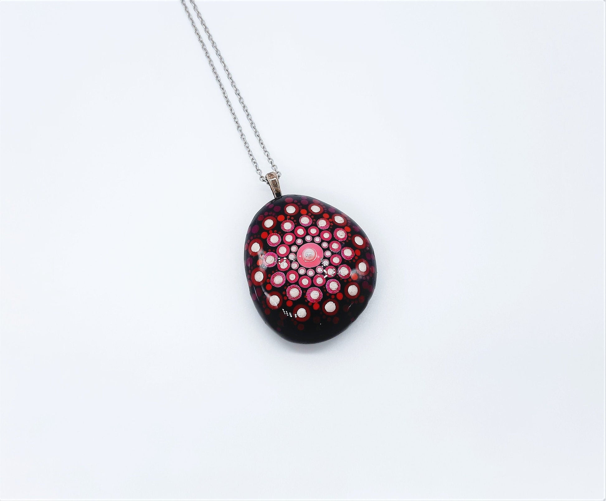 Handpainted Pink / Red Mandala Necklace