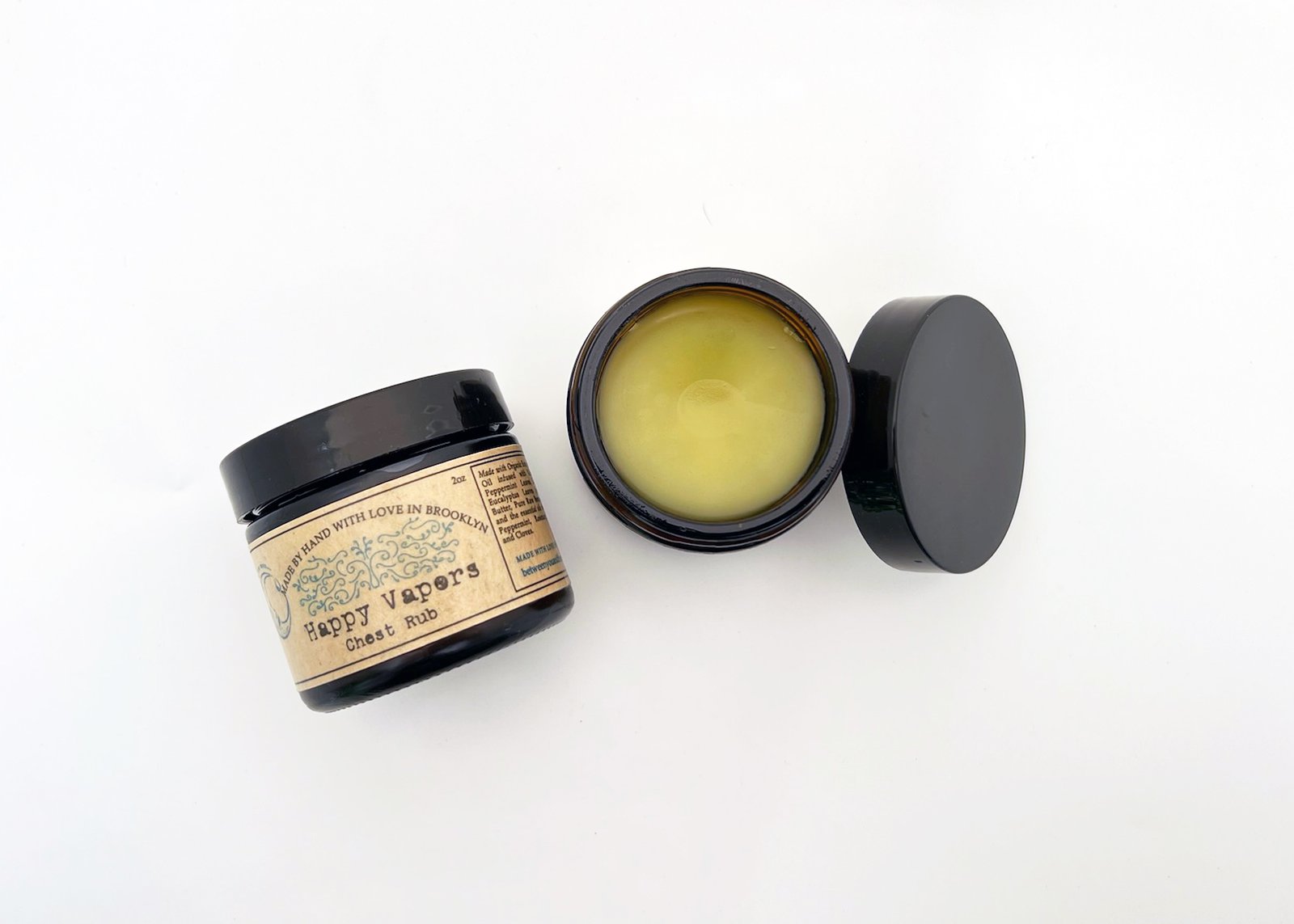 Use our Happy Vapors Essential Oil in a vaporizer to clear the lungs of mucus. A few drops can be used on the chest for adults to aid in decongestion.
