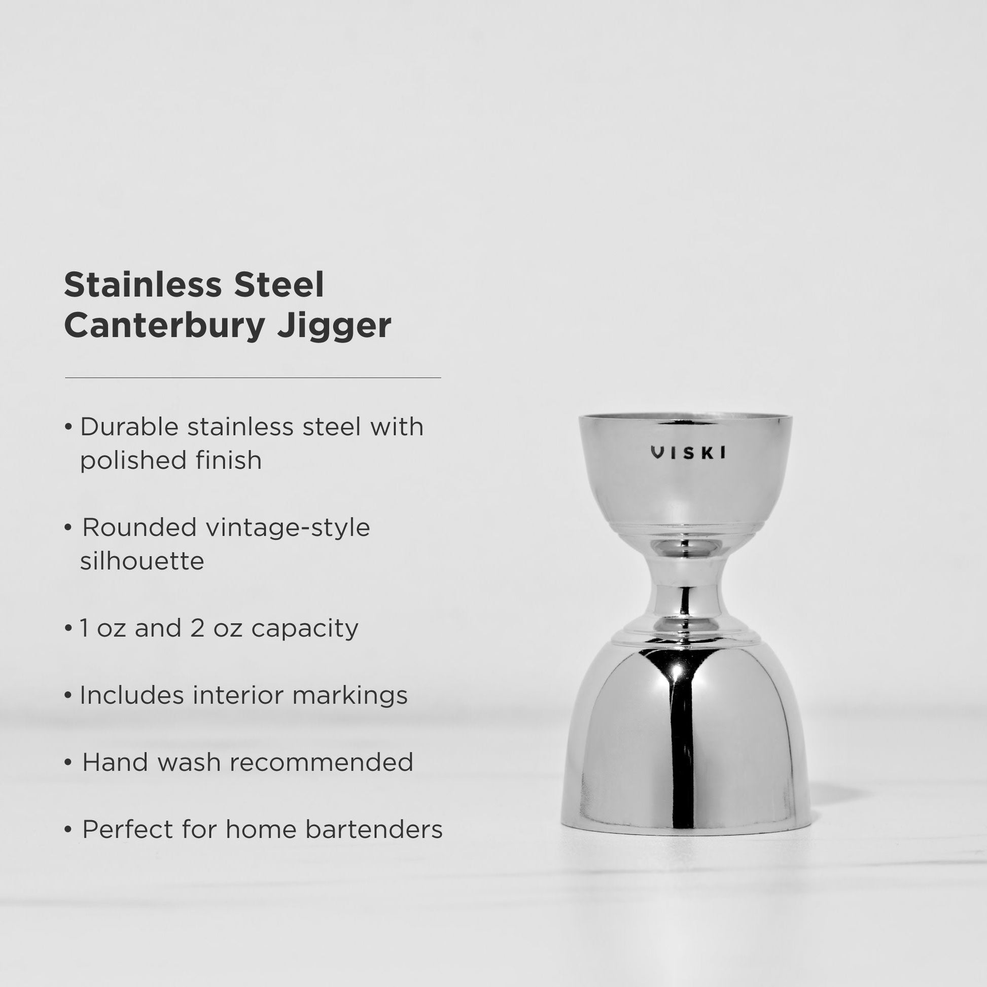 Create cocktails and other refreshments with this rounded stainless steel double jigger, a throwback to post-Prohibition barware that sets an unparalleled standard for bar carts and bartenders alike. A slender hourglass frame makes mixing spirits a breeze, while inner rings mark the perfect pour.