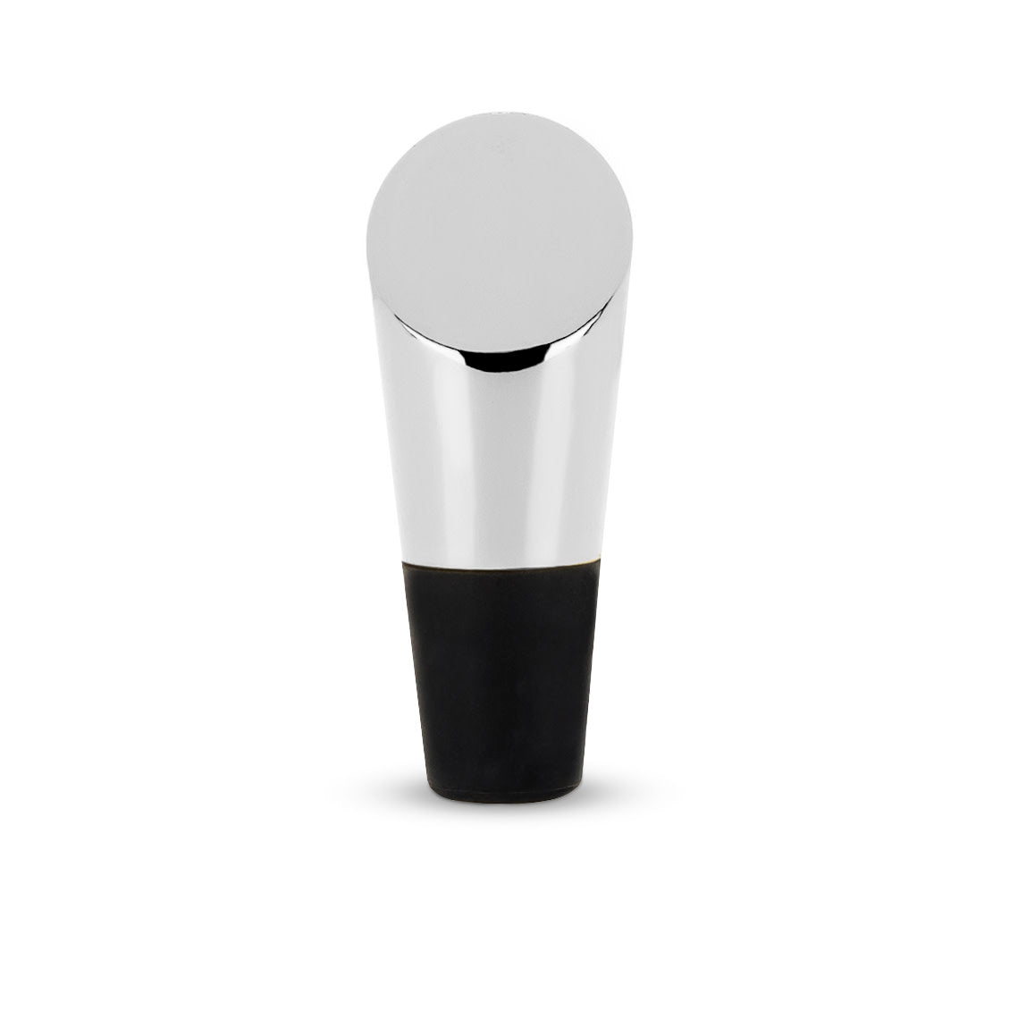 Eye-catching stainless steel with a smooth silicone sleeve puts our heavyweight bottle stopper in center stage. Simple in design, the slanted crown and polished metal suggest an opulence that transcends the average wine accessory.