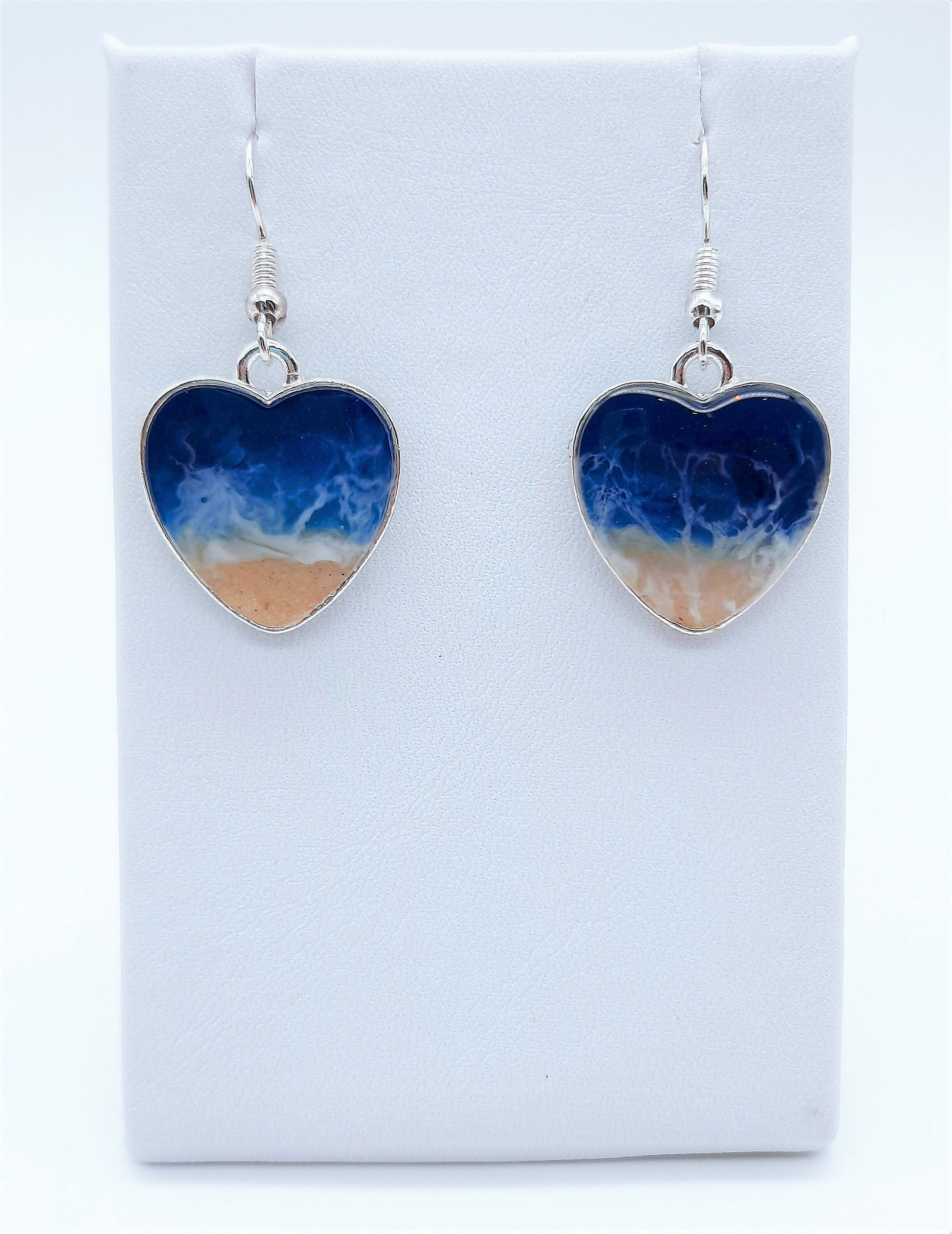 EACH EARRING IS ONE OF A KIND! THESE ARE NOT PHOTOGRAPHS! Resin beach scene earrings with REAL SAND! Slight mica powder sparkle to them. 3D and trippy! Made with hypoallergenic stainless steel and an ear wire closure.