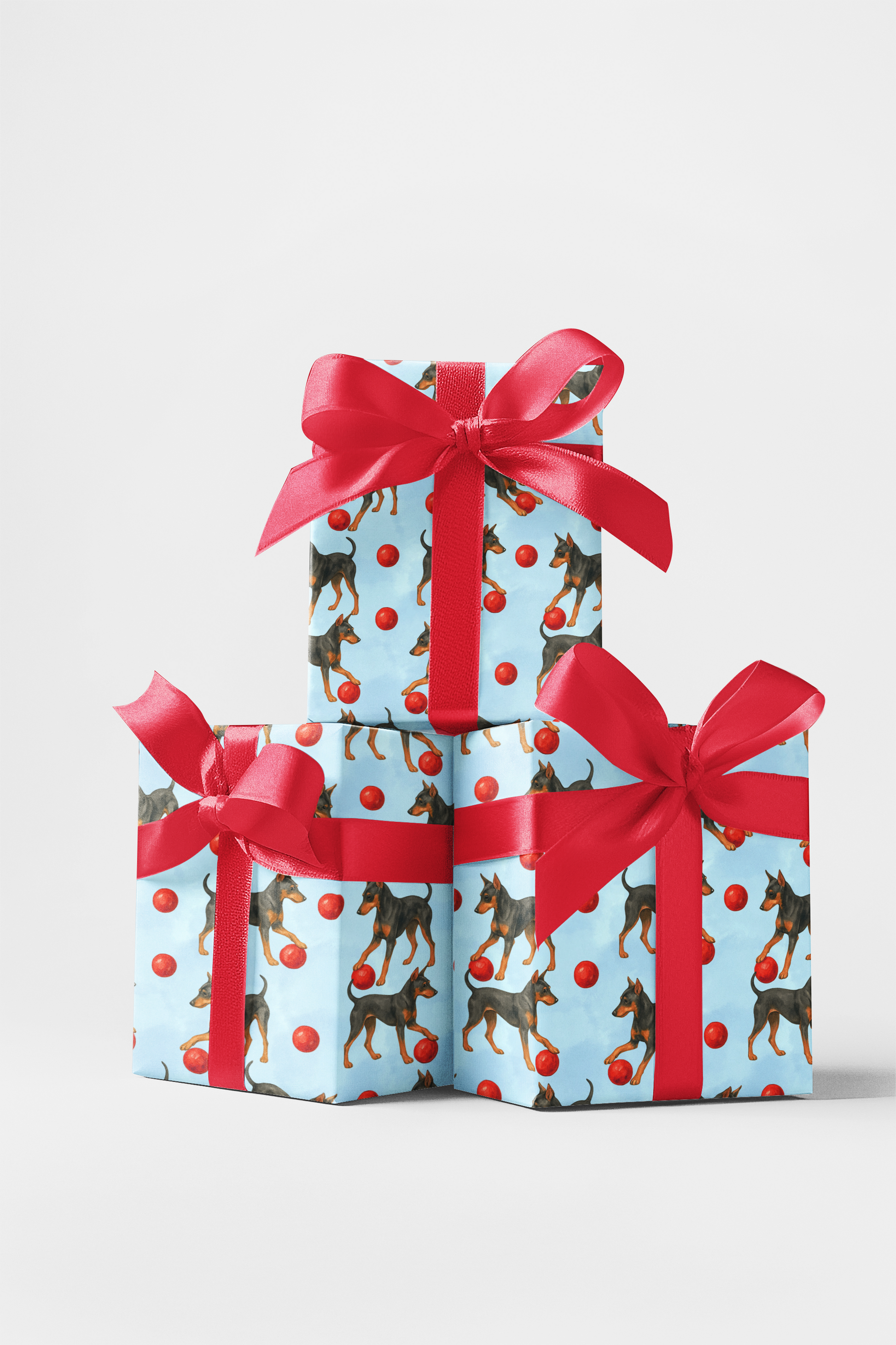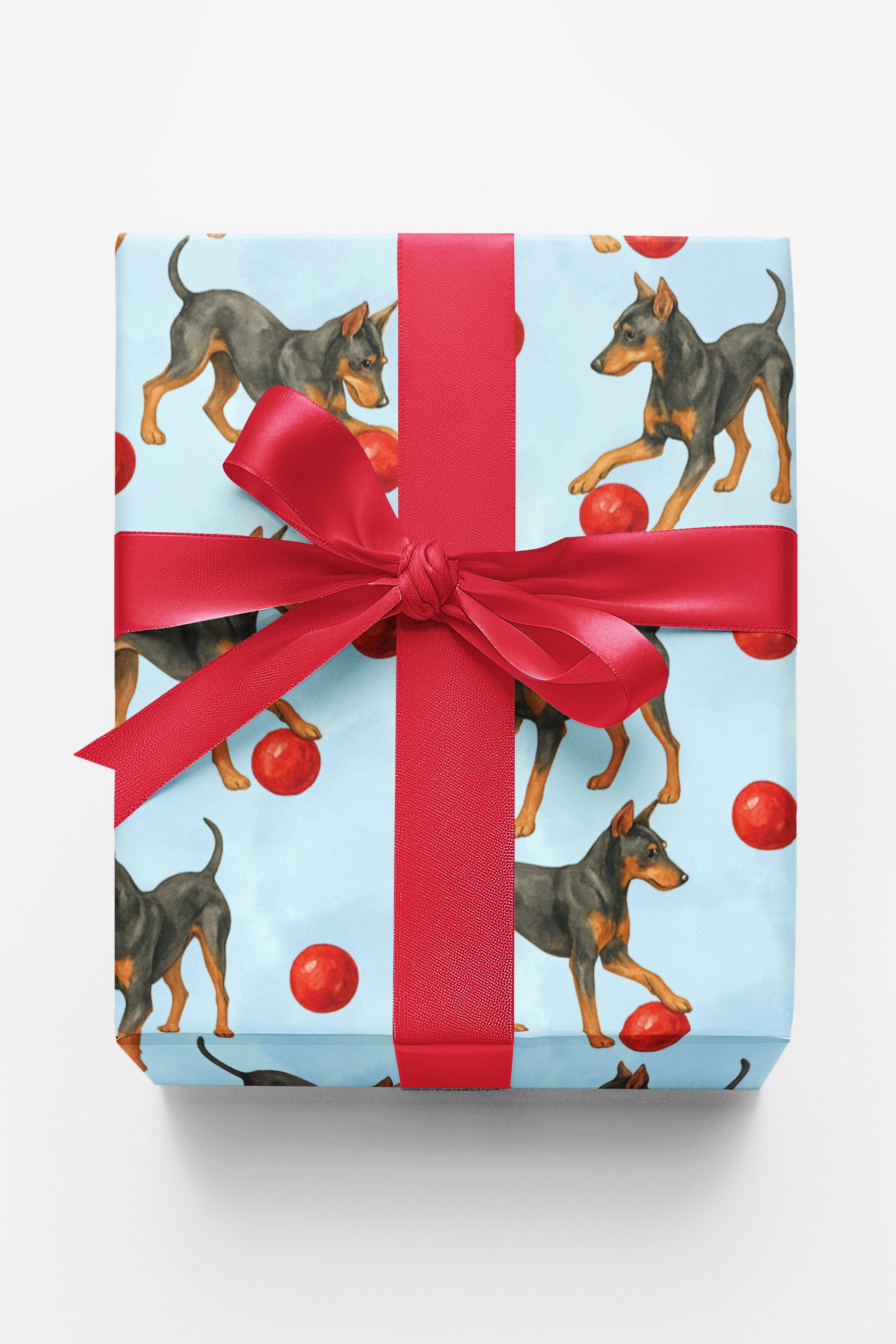 Sharp-eyed and spirited, the German Pinscher brings a bold charm to the holiday season. This wrapping paper reflects their confident stance and loyal heart—wrapped in festive reds, deep greens, and golden glows. Whether guarding the gifts or lounging beside the fire, they remind us that true companionship is both joyful and unwavering. With every fold, this wrap carries the spark of courage and warmth only a Pinscher can bring to Christmas.