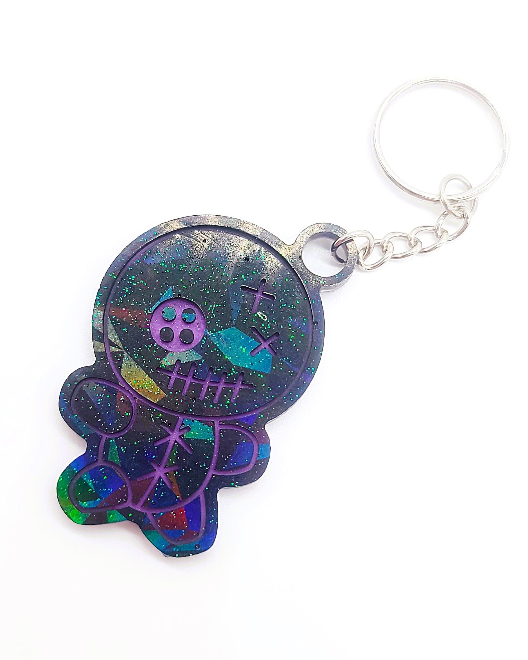 Made with color-shift holographic mica powder. The front side of the key chain is holographic as well.