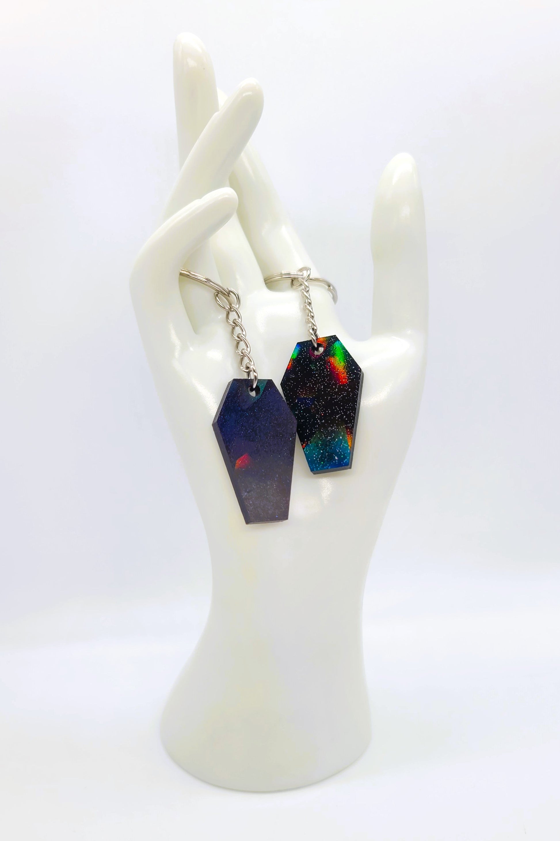 Holographic Coffin Shaped Key Chain - Eco-Friendly Resin