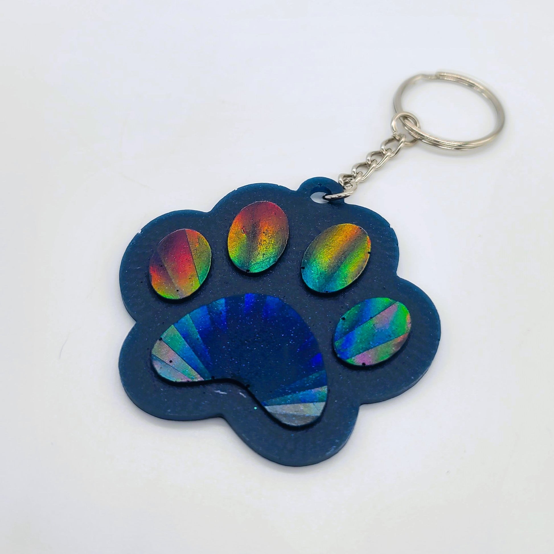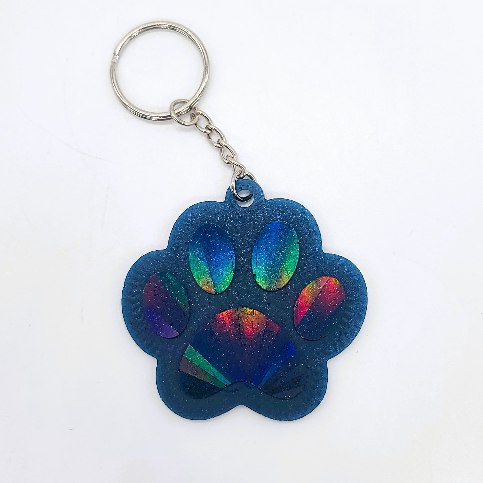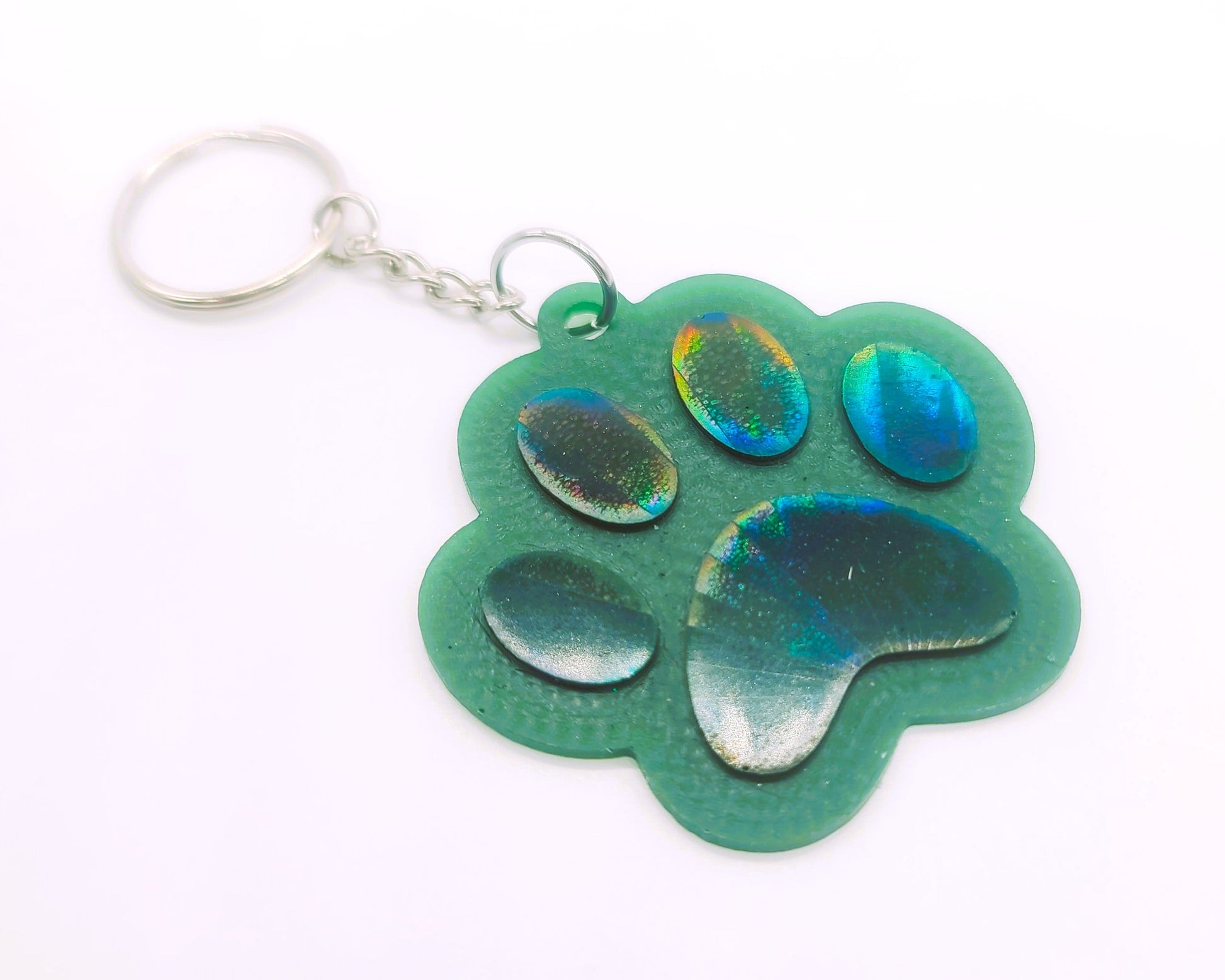 Holographic Dog Paw Heart Key Chain - Made with Eco-Friendly Resin.