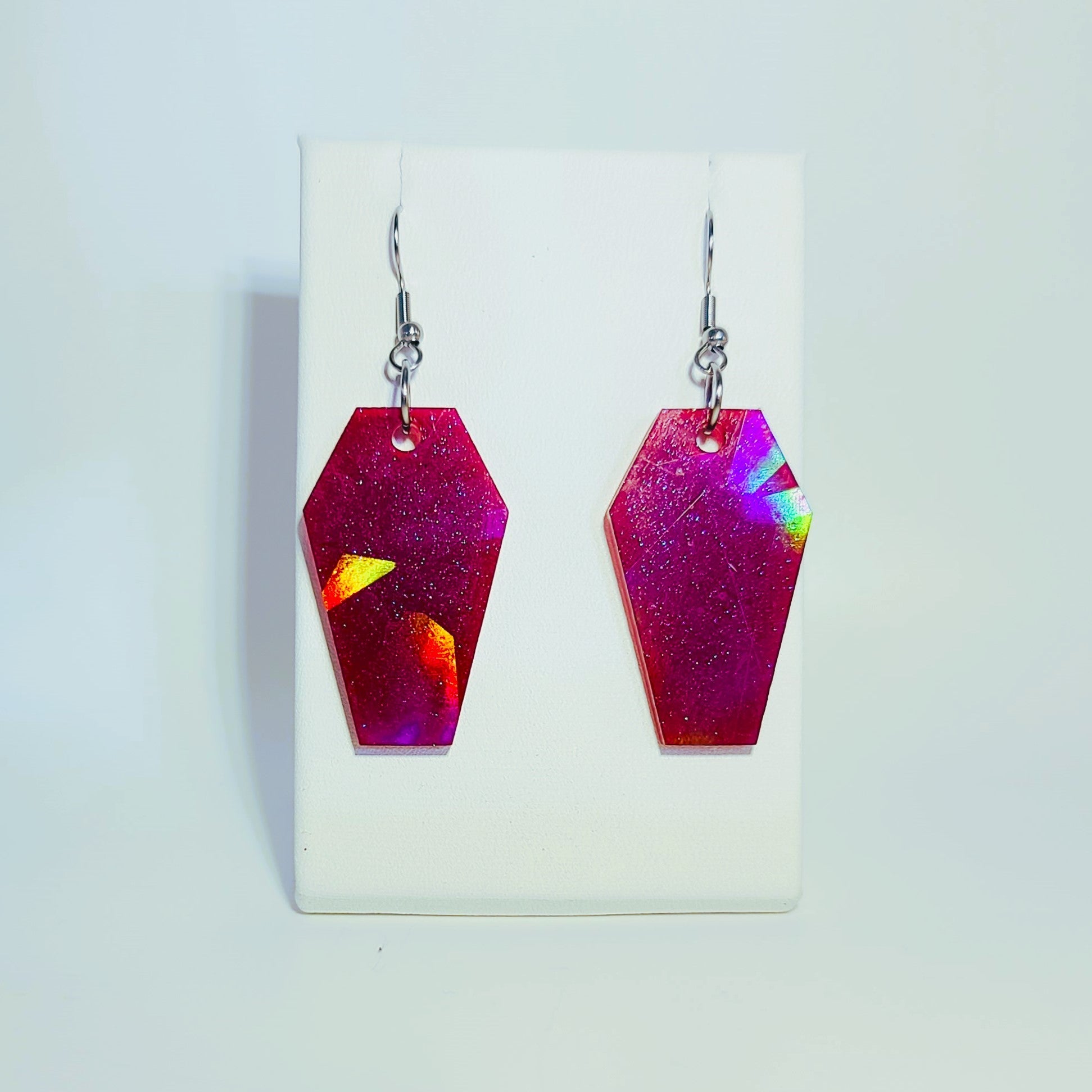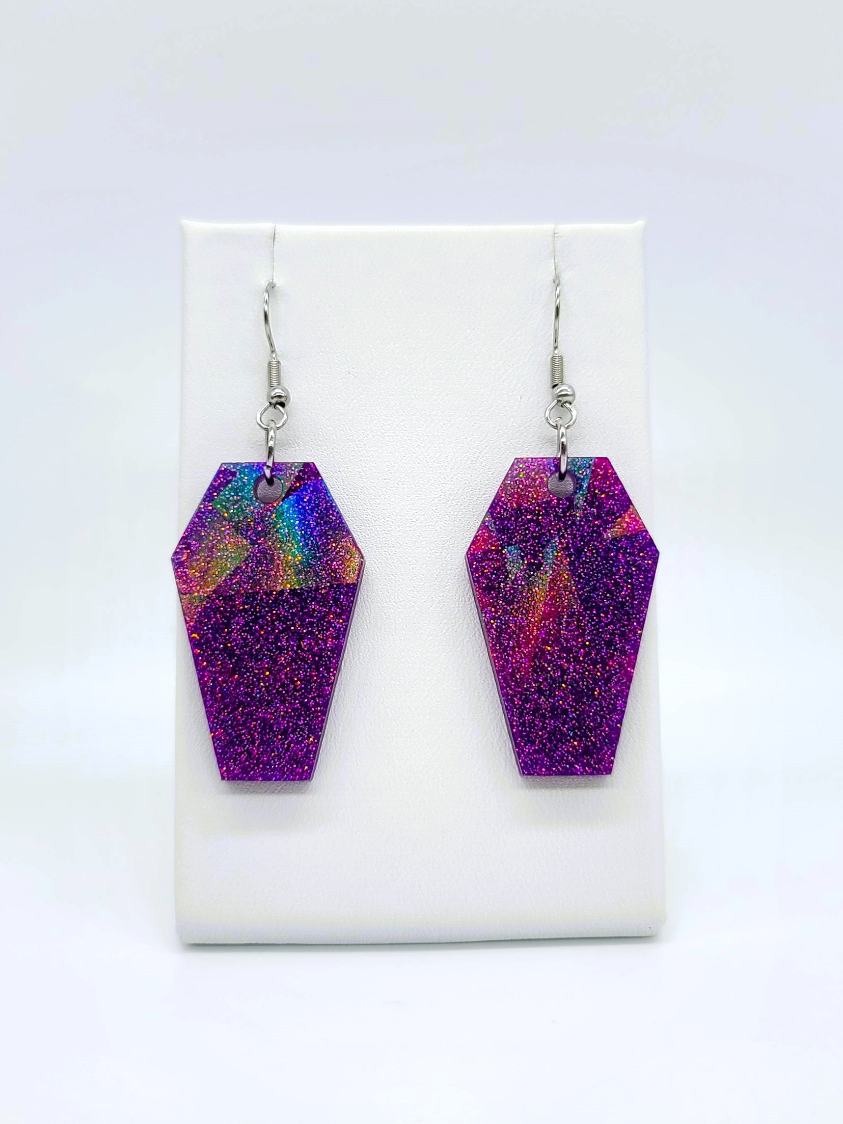 Holographic Halloween Coffin Earrings - Eco-Friendly Resin