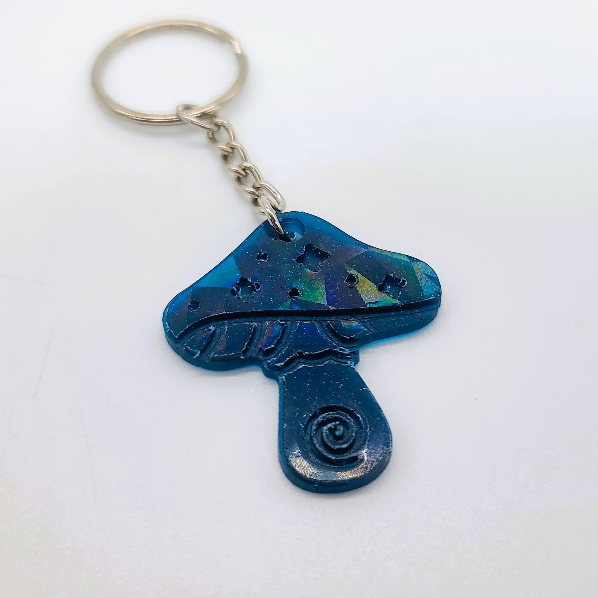 Holographic Mushroom Shaped Key Chain - Made with Eco-Friendly Resin.