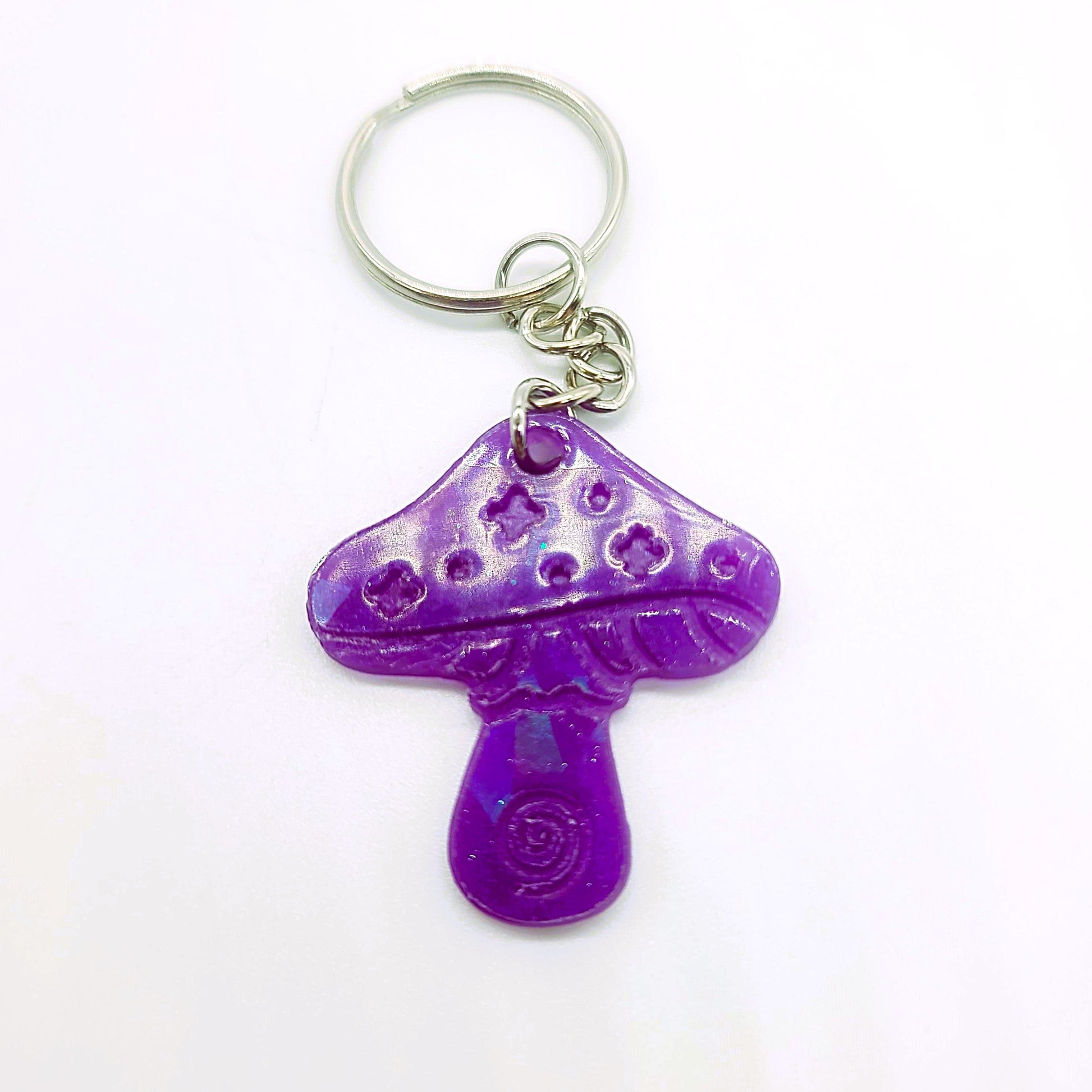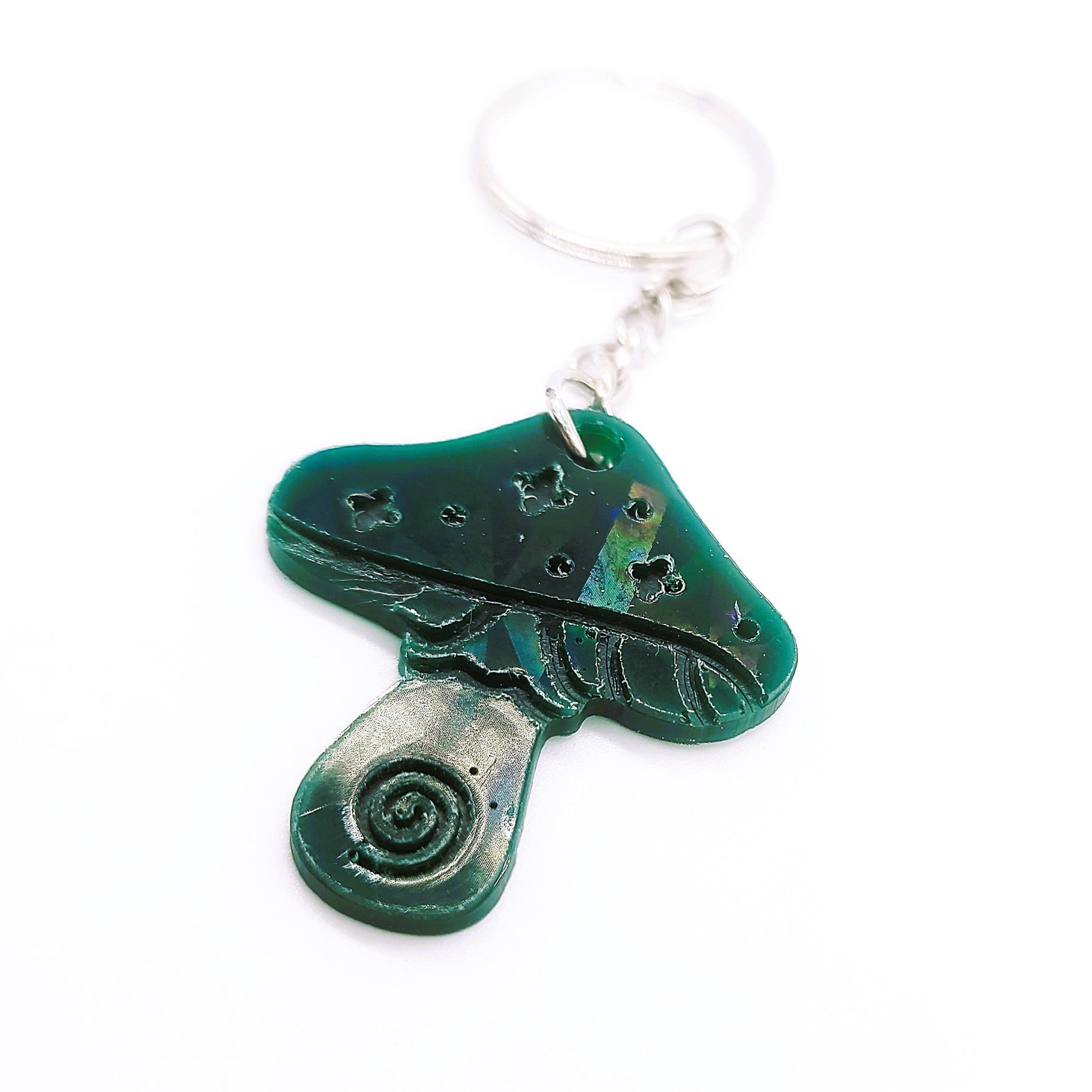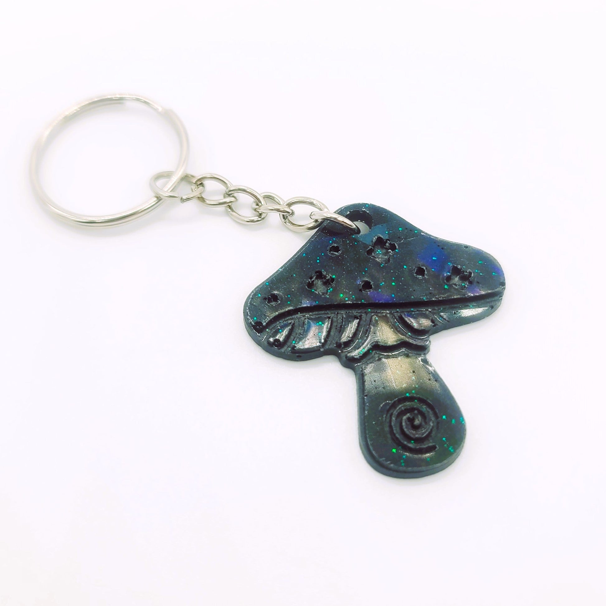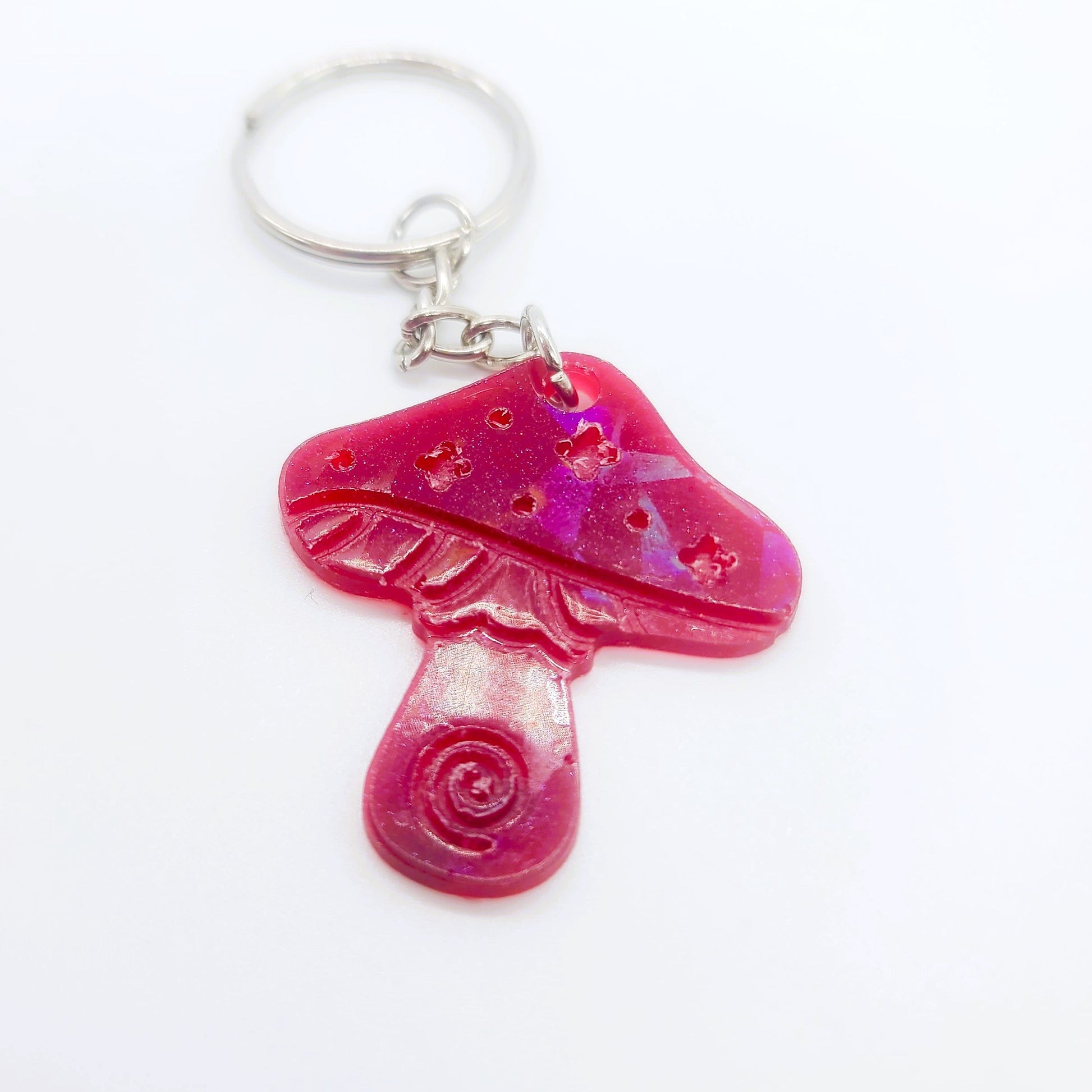 Holographic Mushroom Shaped Key Chain - Eco-Friendly Resin