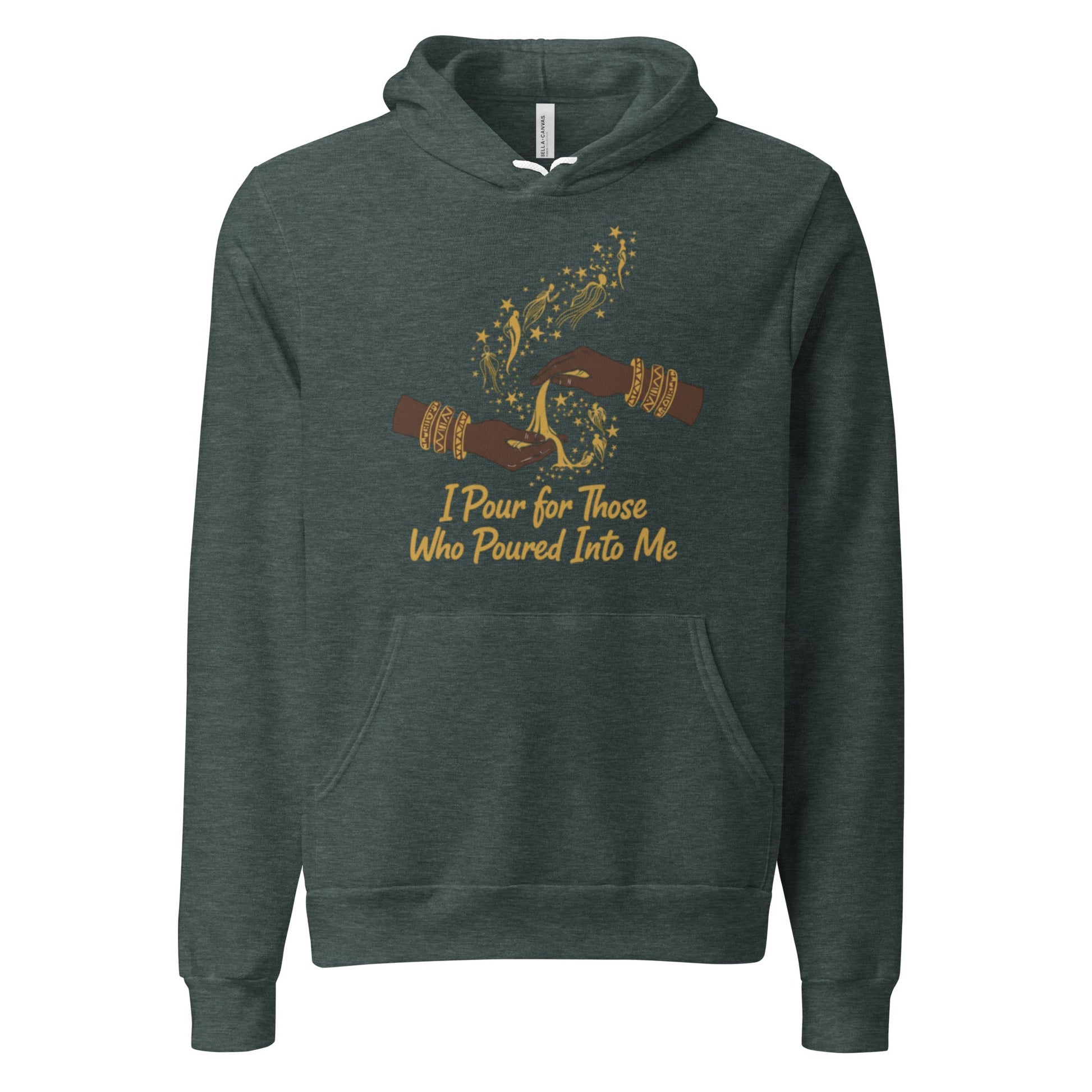 This design features hands pouring liquid onto the earth, symbolizing the act of libation and the cyclical flow of blessings between the living and the dead. The phrase “I Pour for Those Who Poured Into Me” captures the reciprocity of ancestral reverence: we honor those who gave us life, who fought for our freedom, who made our existence possible.