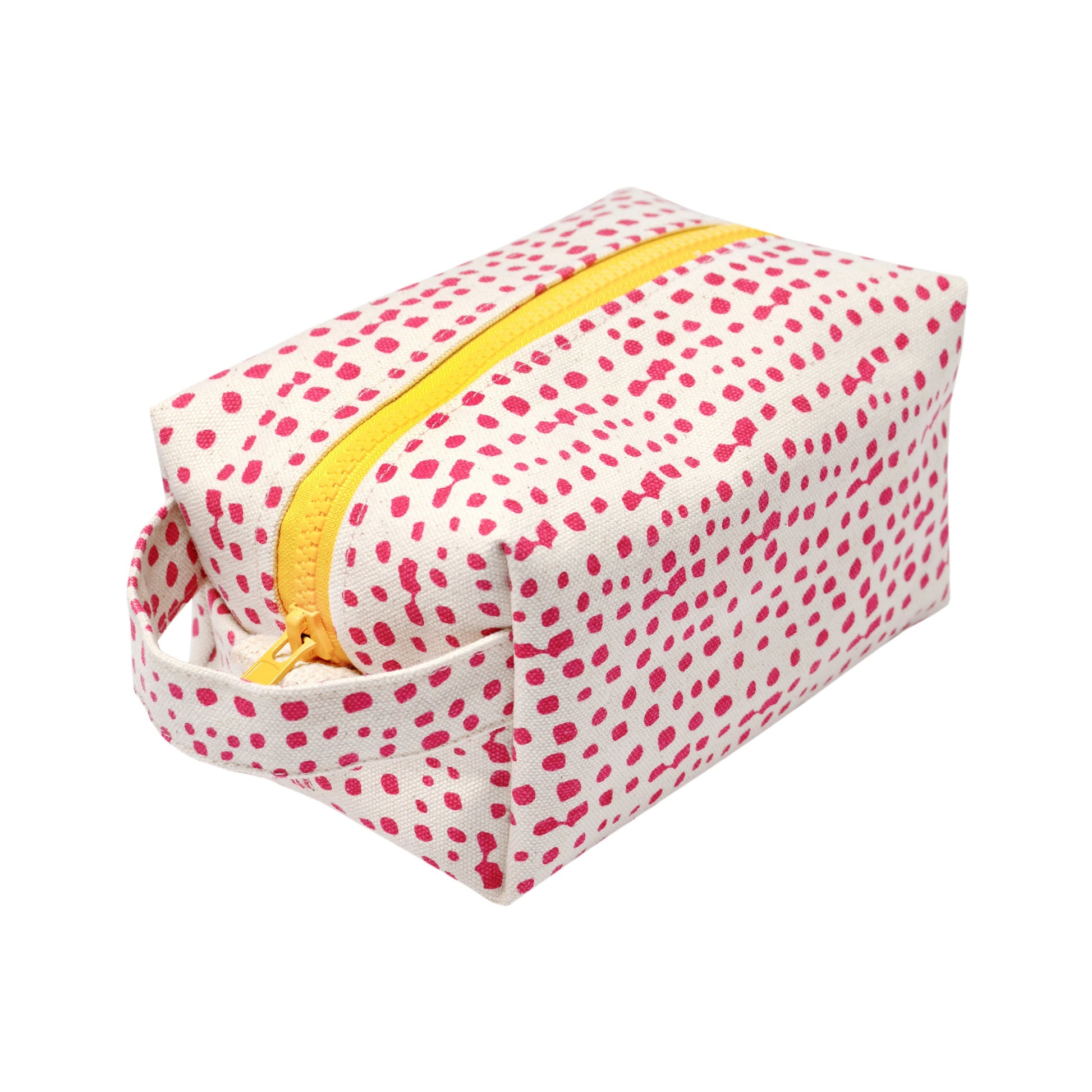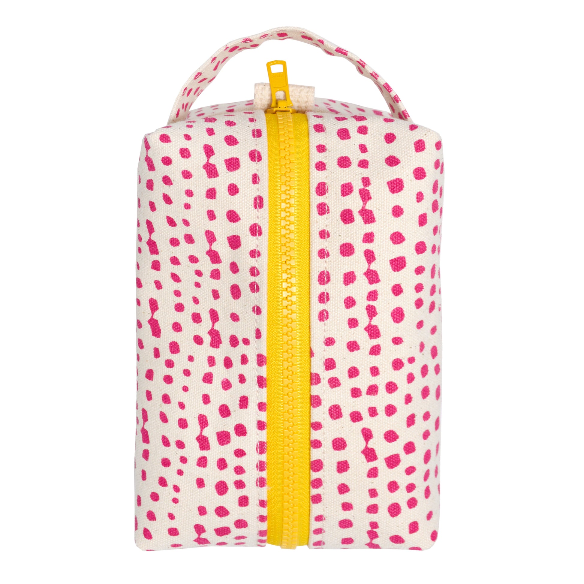 This cotton canvas Dopp kit is here to add a pop of personality to your daily routine. Whether you're packing it for a trip or tossing it in your tote, it keeps your essentials organized and easy to grab. The screenprinted, durable 15 oz cotton canvas shell has a bright zip top that brings the kind of contrast that’s just plain fun. Fully lined with a side handle for grab-and-go ease—it’s cute, bold, and built to last.