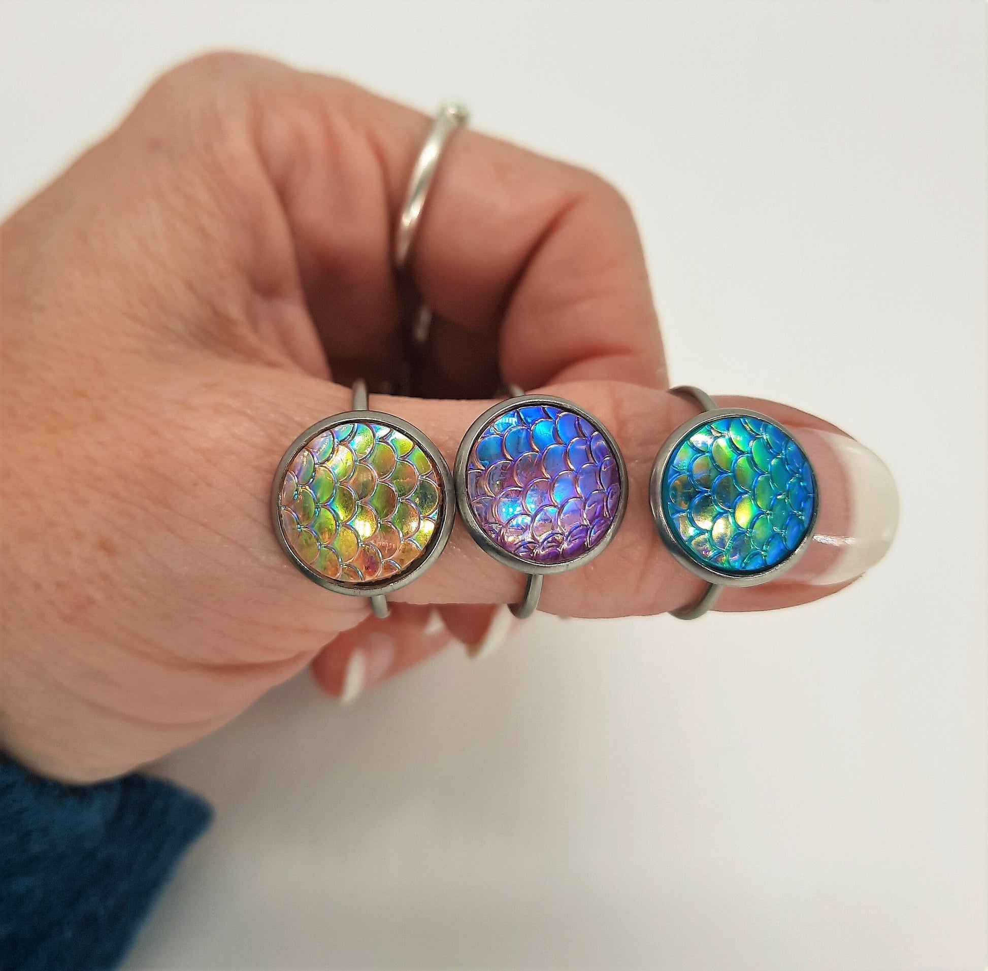 Iridescent 12mm Mermaid Scale Finger Cuff Ring